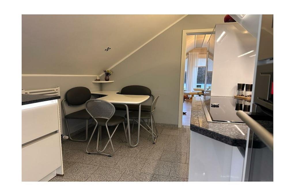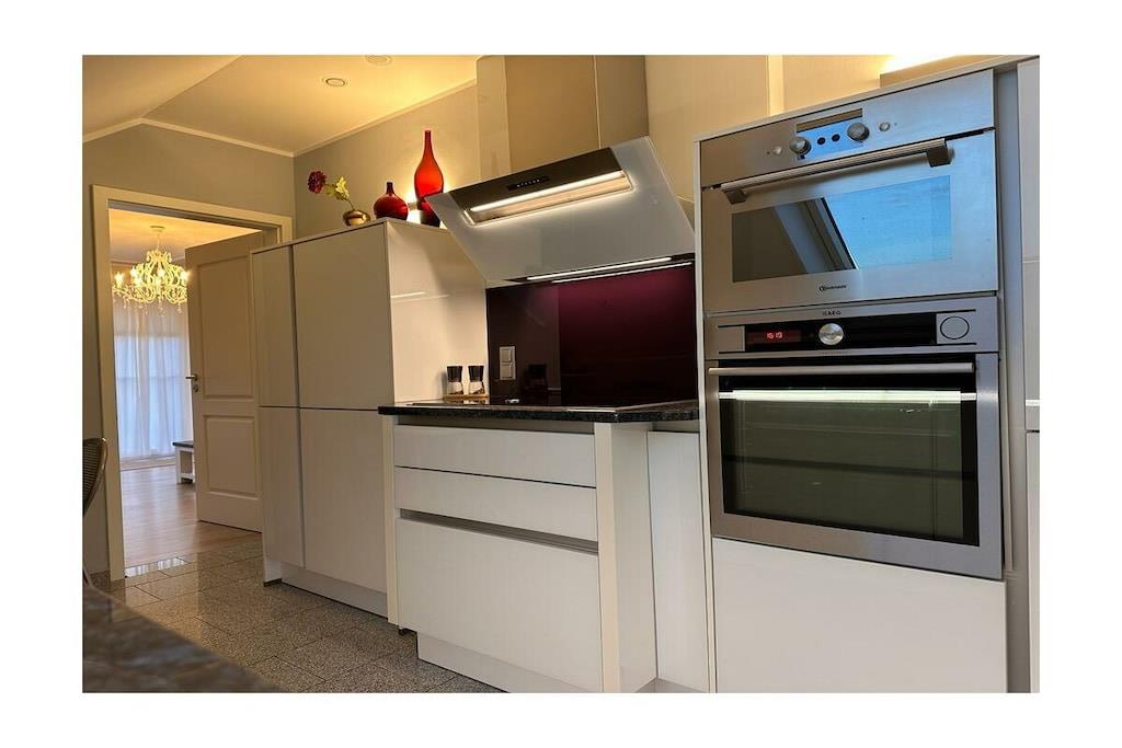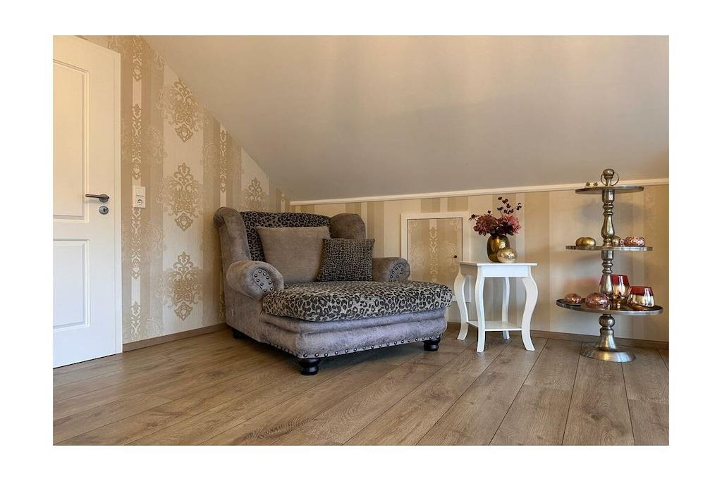 Vores ferielejlighed i den tilstødende Kellerwald-skoven i Vöhl ved Edersee, beliggende på første sal, har to soveværelser med tilhørende påklædningsrum, en stue med en Stressless lædersofa og lænestol med fodskammel, et køkken af høj kvalitet med moderne apparater og et badeværelse med bruser, toilet, bidet og hjørnebadekar med spabadfunktion. Spisestuen har et bord og seks stole samt ekstra møbler. Køkkenet indeholder også en hjørnebænk og et bord til fire personer. Fra stuen er der adgang til en balkon med udsigt mod Peterskopf-bjerget ved Edersee. Der er også et bryggers.