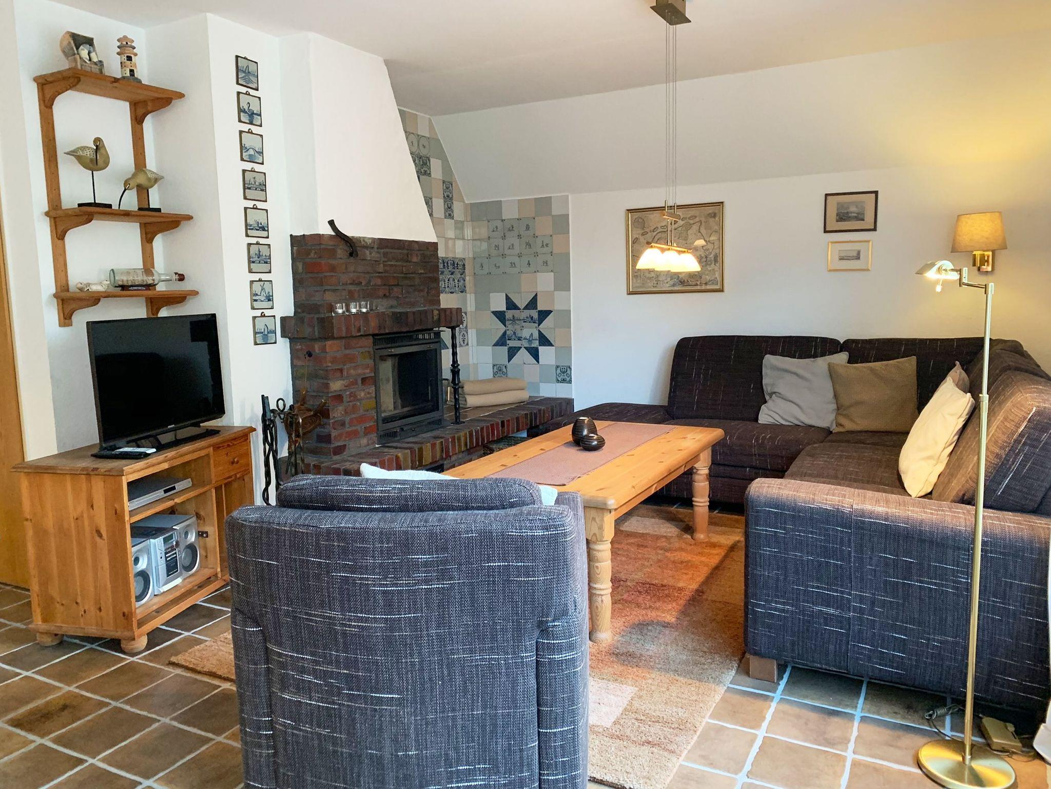 • Kamin im Wohnzimmer, Kaminecke mit original Delfter Fliesen verziert