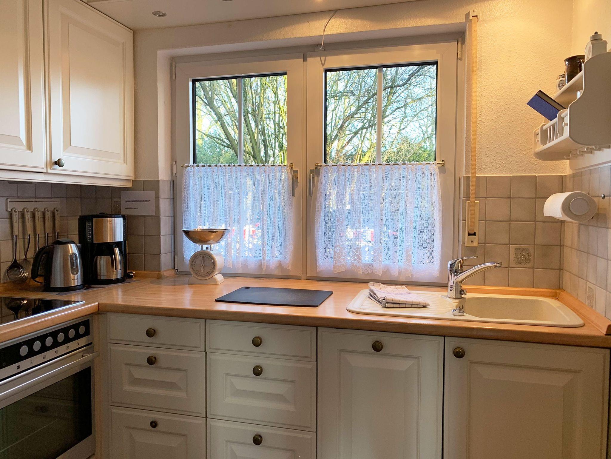 • eine voll ausgestattete Landhausküche mit Geschirrspüler, Kühlschrank, Herd, Toaster und Kaffeemaschine
