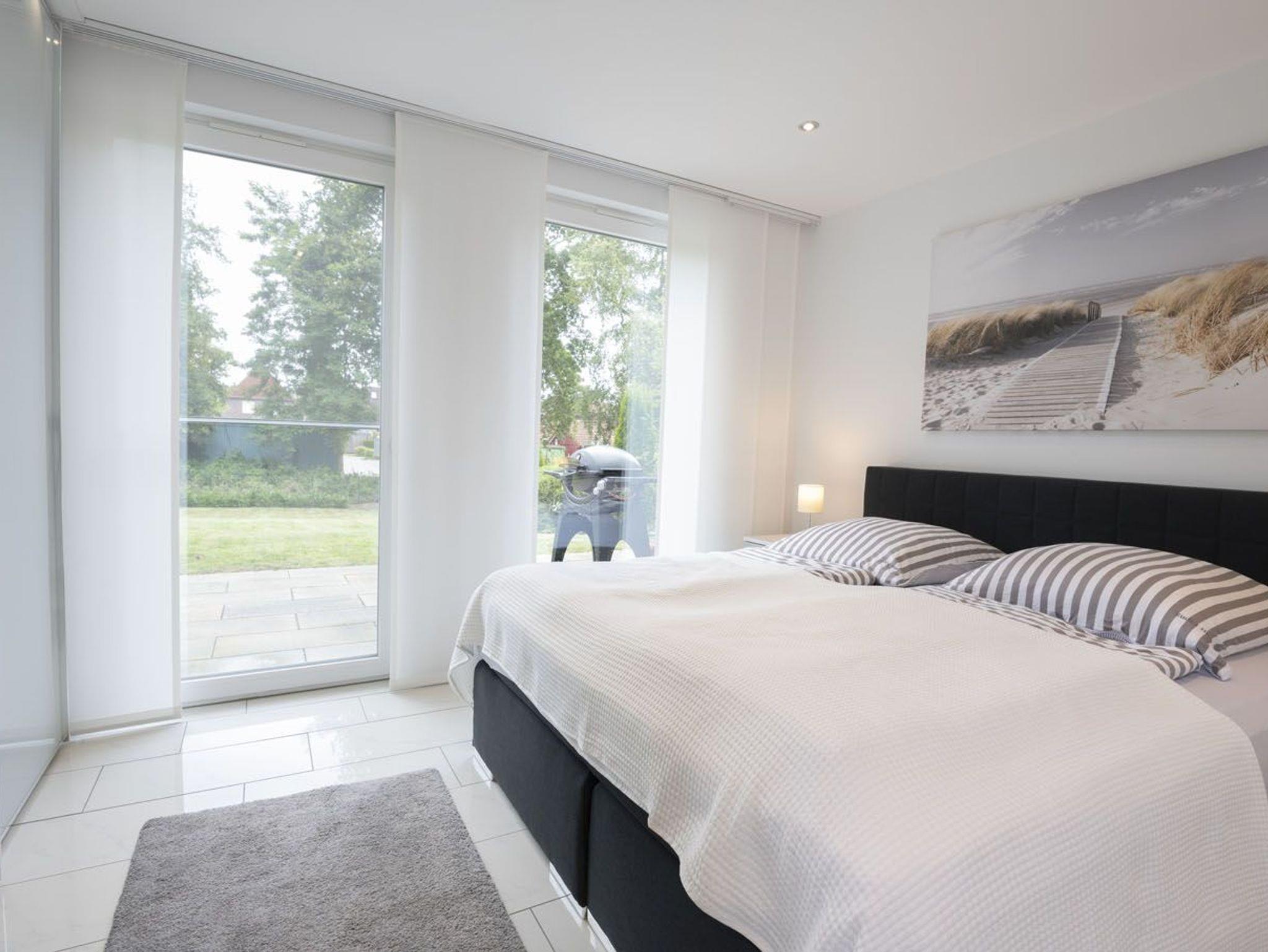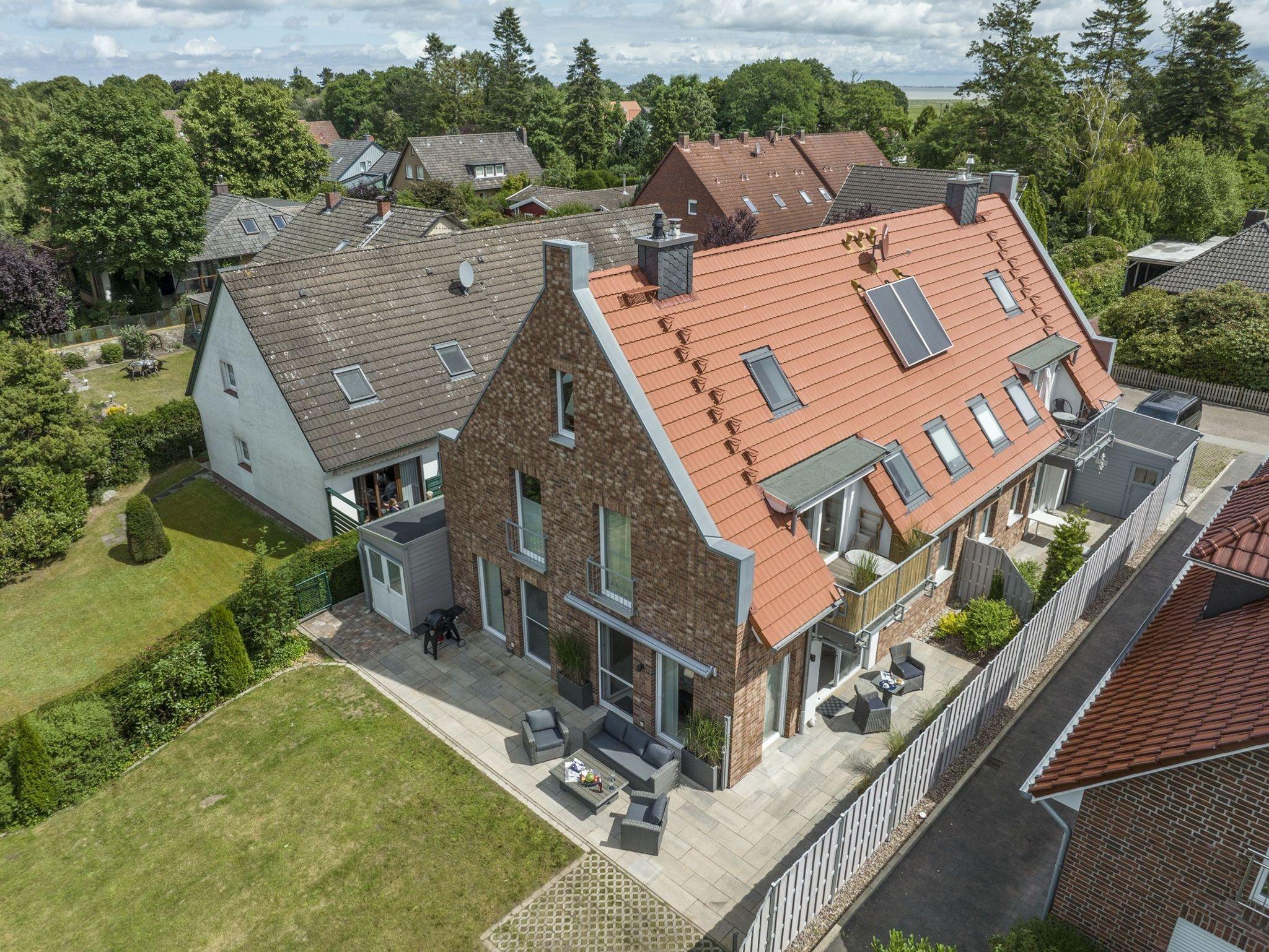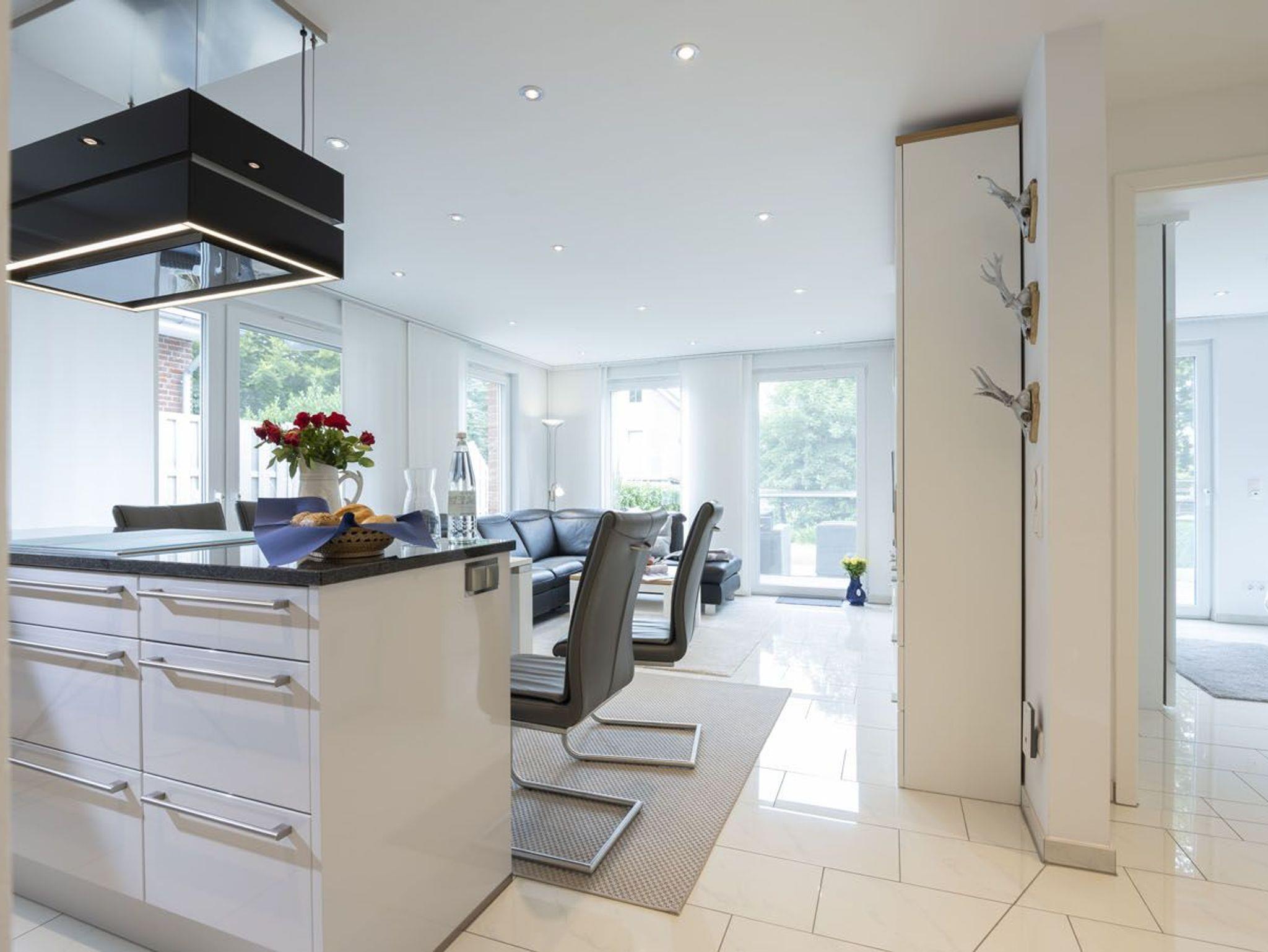 In dieser schicken Neubauwohnung mit Stellplatz vor dem Haus in der Störtebekerstr. 8 werden Sie sich sofort wohlfühlen. Vom großzügigen Dielenbereich mit Garderobe und Gäste-WC gelangen Sie ins moderne Wohnzimmer mit Gas-Kamin und integrierter Küchenzeile mit Essbereich. Die Küche ist hochwertig und komplett ausgestattet. Unsere zwei Schlafräume haben Doppelbetten und große Kleiderschränke. Ein modernes, helles Fenster-Bad mit Badewanne und Dusche sorgt für entspannte Momente. Ab Wohnzimmer gelangen Sie auf die möblierte großzügige Terrasse mit anschließendem weitläufigen Rasengrundstück.