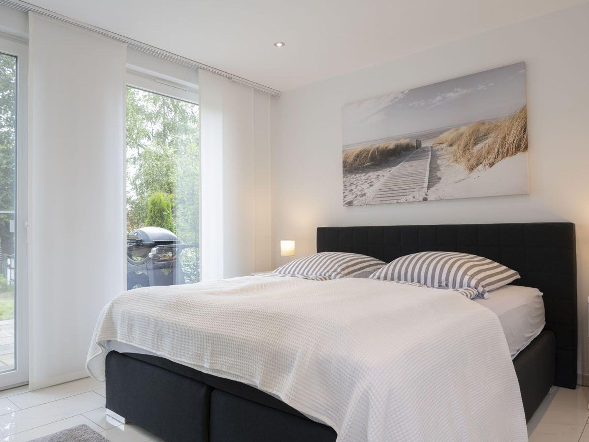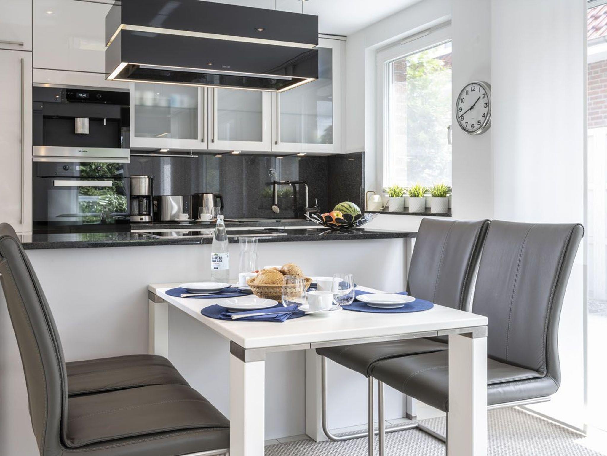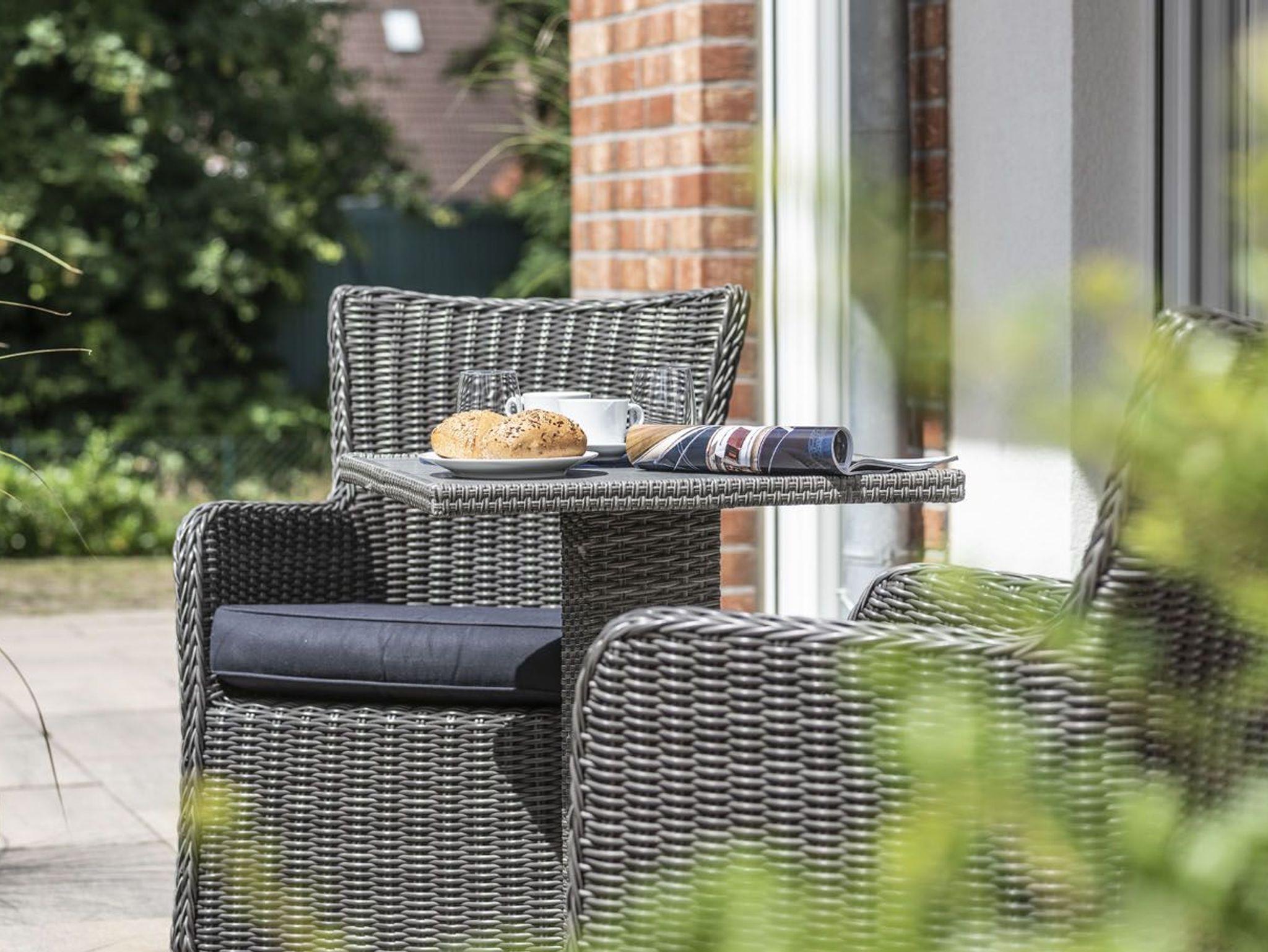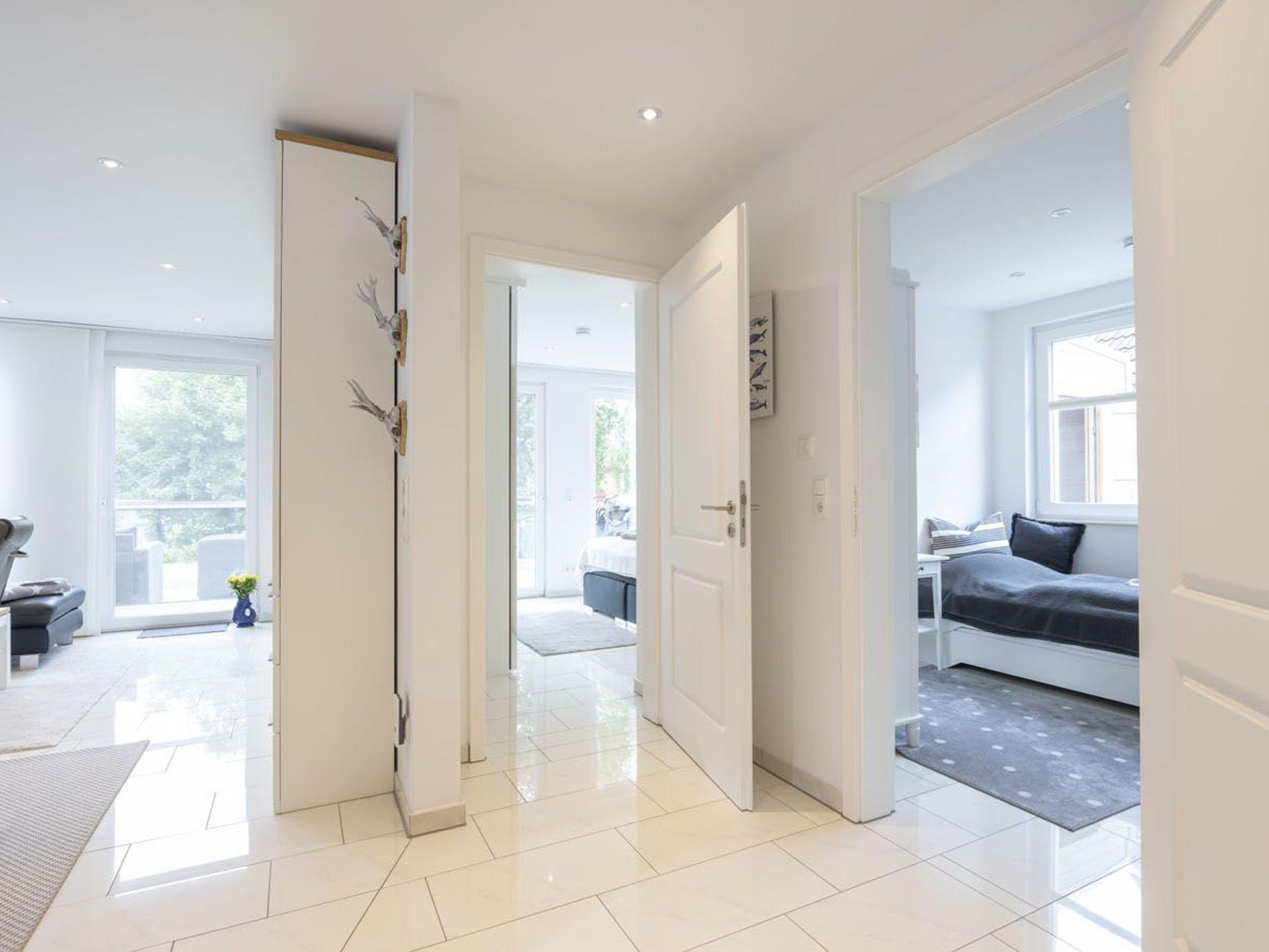In dieser schicken Neubauwohnung mit Stellplatz vor dem Haus in der Störtebekerstr. 8 werden Sie sich sofort wohlfühlen. Vom großzügigen Dielenbereich mit Garderobe und Gäste-WC gelangen Sie ins moderne Wohnzimmer mit Gas-Kamin und integrierter Küchenzeile mit Essbereich. Die Küche ist hochwertig und komplett ausgestattet. Unsere zwei Schlafräume haben Doppelbetten und große Kleiderschränke. Ein modernes, helles Fenster-Bad mit Badewanne und Dusche sorgt für entspannte Momente. Ab Wohnzimmer gelangen Sie auf die möblierte großzügige Terrasse mit anschließendem weitläufigen Rasengrundstück.