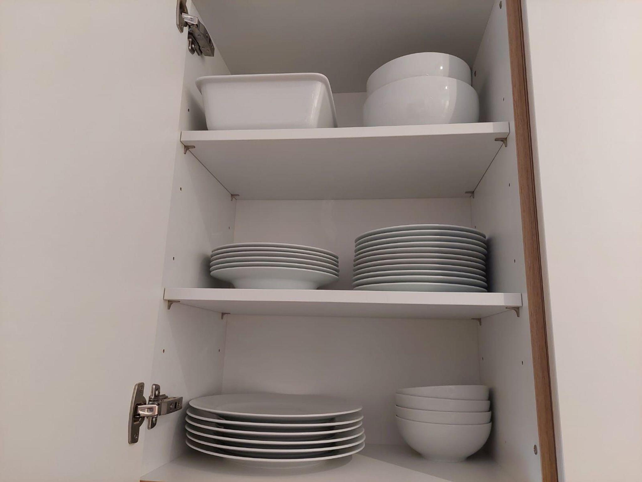Der Einbauschrank sowie die großen Nachtschränke bieten reichlich Platz zur Unterbringung der mitgebrachten Kleidung.