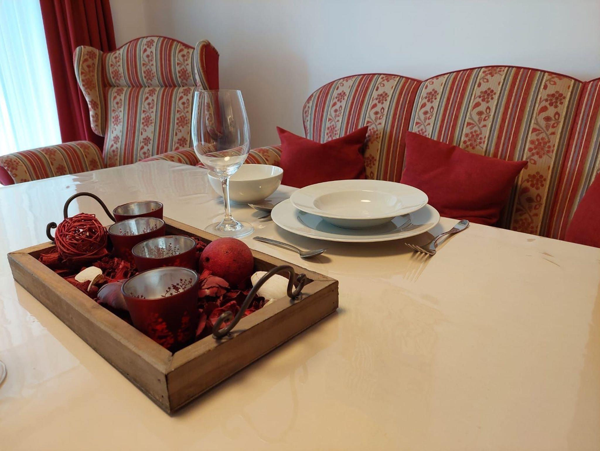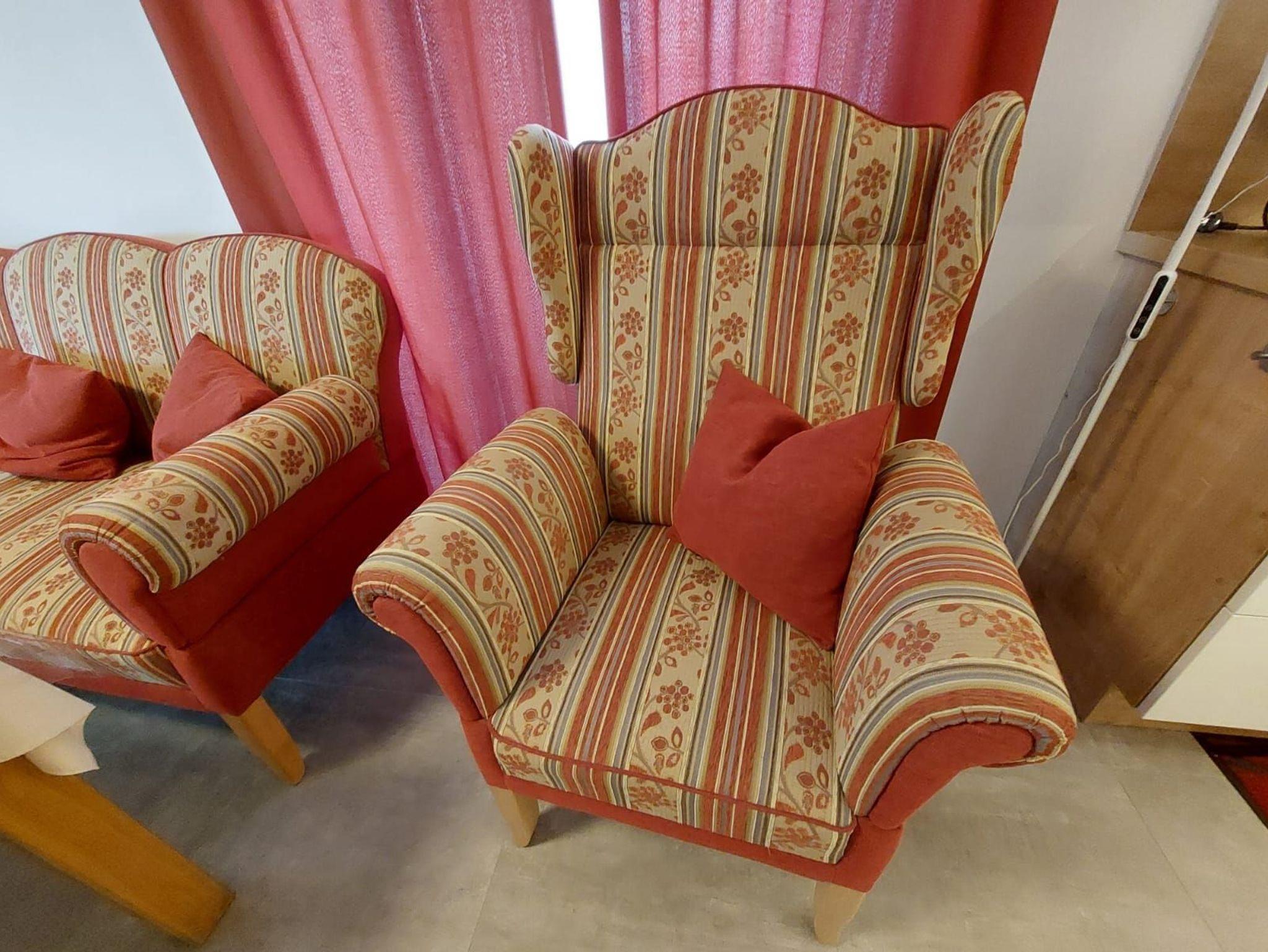 Um den Tisch gruppieren sich das gemütliche, große Friesensofa und 2 große Friesensessel, die zum Verweilen einladen.