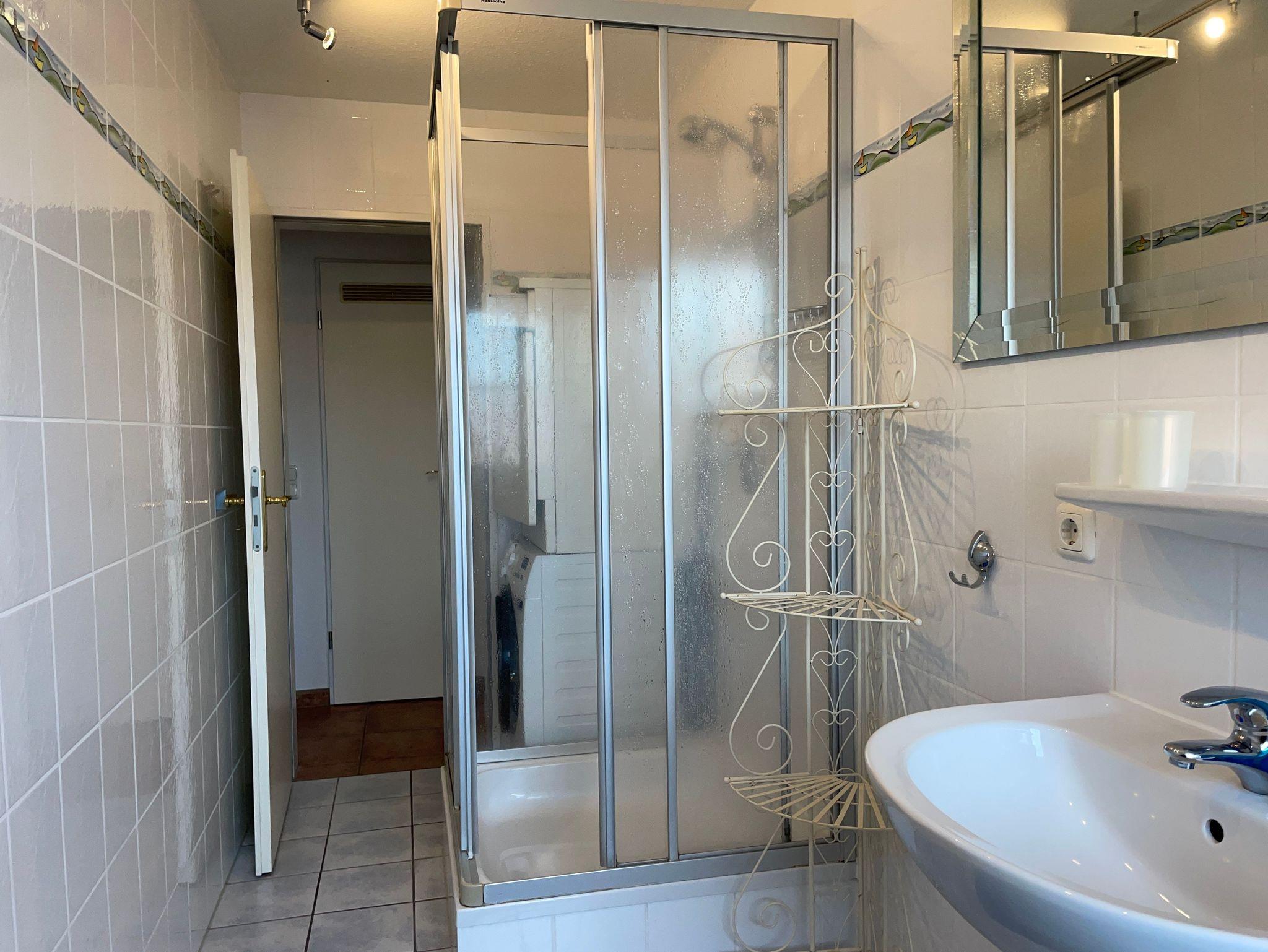 Die Küche ist modern und funktional gestaltet. Sie bietet ausreichend Arbeitsfläche und ist mit modernen Küchengeräten ausgestattet. Im Badezimmer finden Sie neben einer Dusche auch ein Waschbecken und eine Toilette.