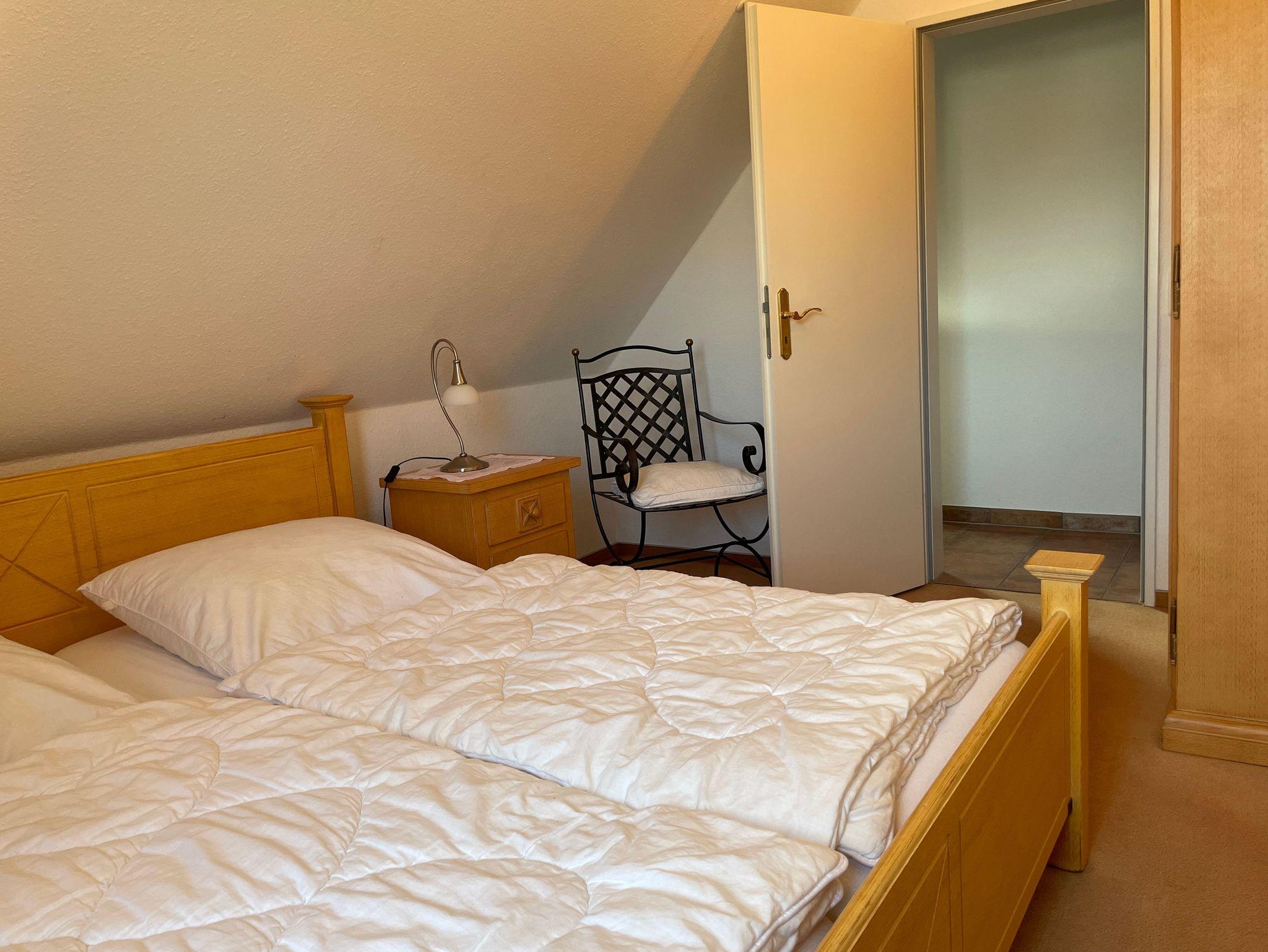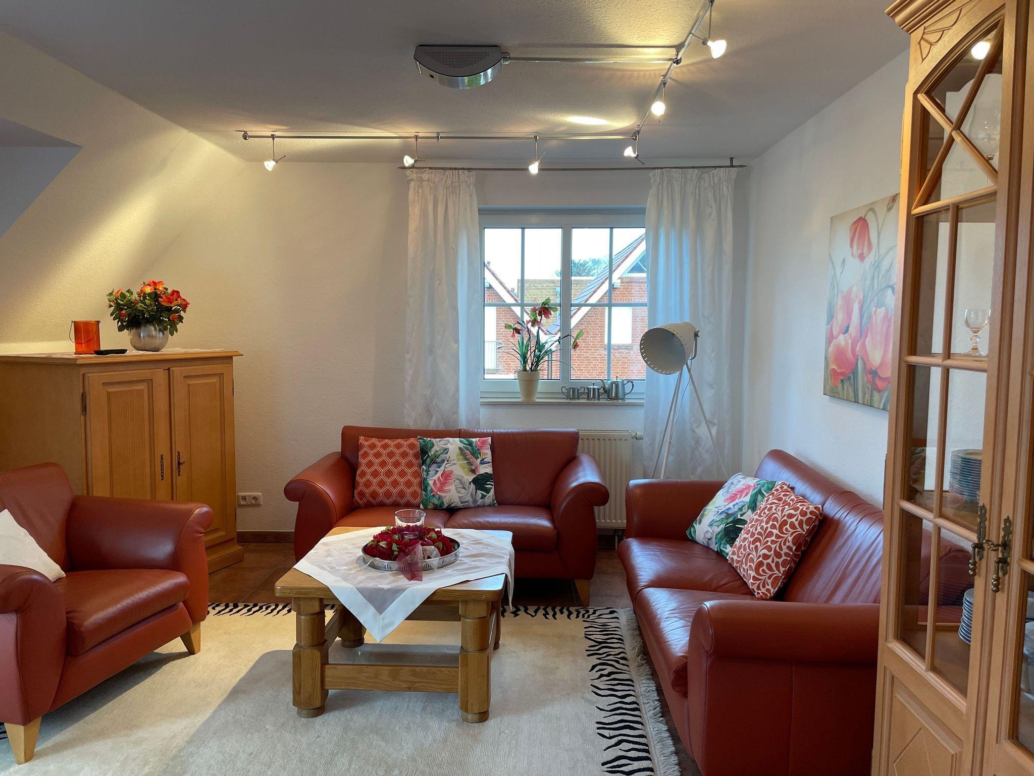 Die Ferienwohnung Luisa besticht durch ihre stilvolle Einrichtung und hochwertige Ausstattung. Das Wohnzimmer lädt mit seiner gemütlichen Couch und dem großen Fenster zum Entspannen ein. Die beiden Schlafzimmer sind mit bequemen Betten und ausreichend Stauraum ausgestattet.