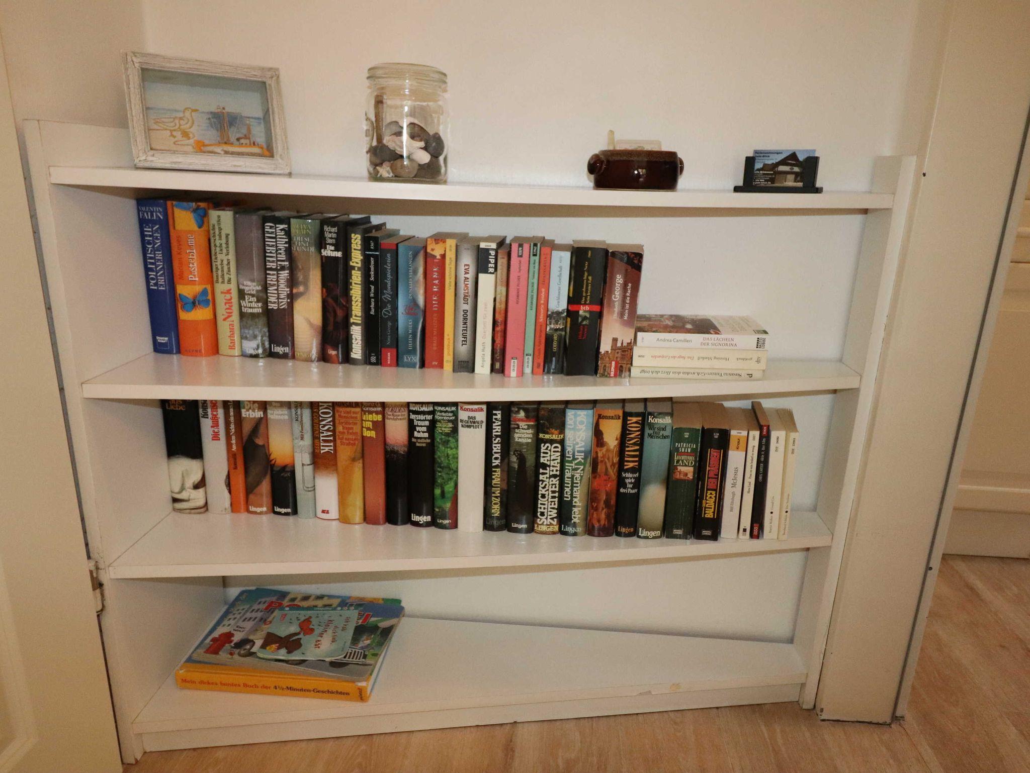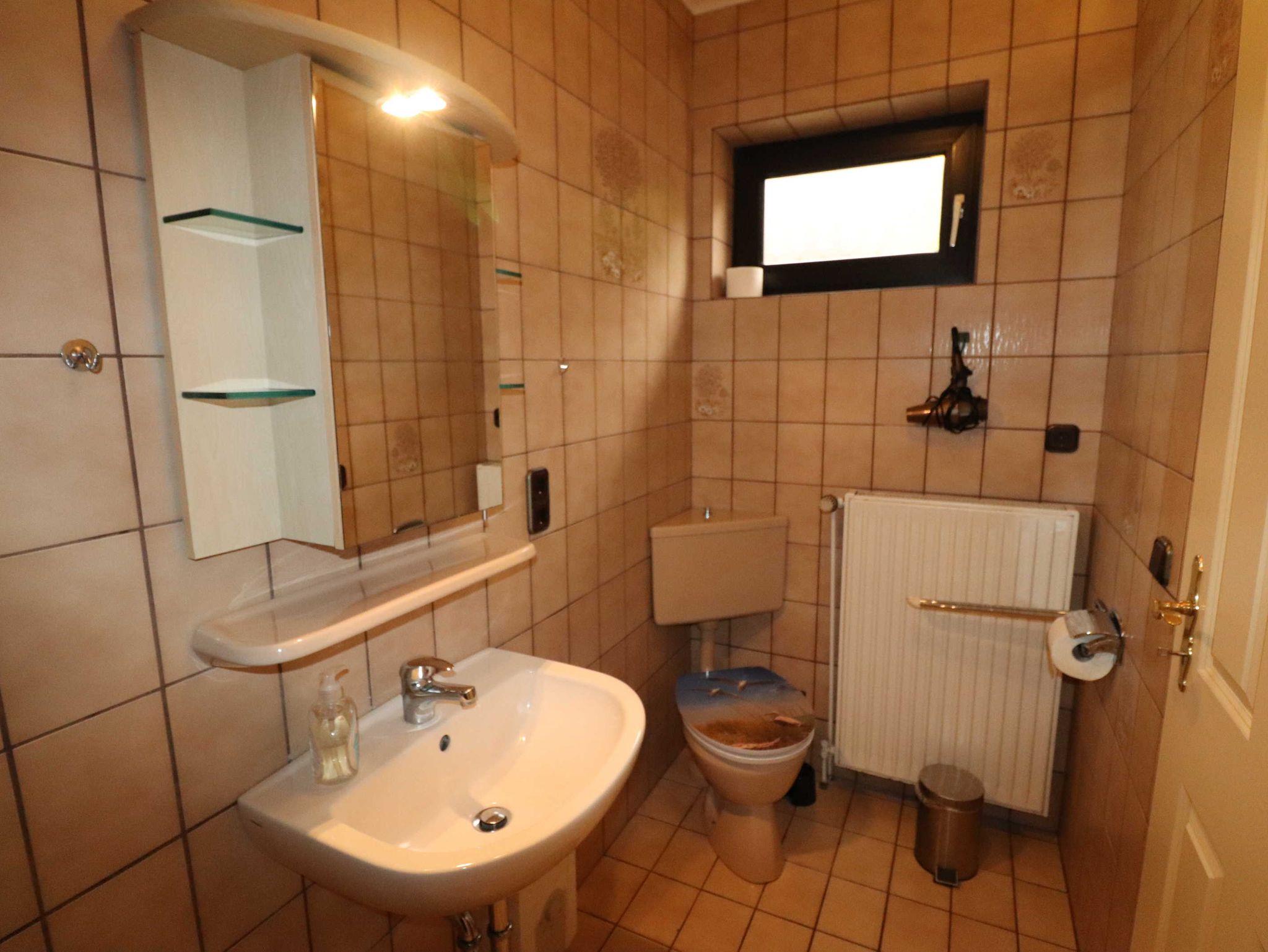 Die über einen eigenen Eingang erreichbare Einliegerwohnung im Erdgeschoss links verfügt über eine gemütliche, eingewachsene Südterasse, ausgestattet mit entsprechender Möblierung inklusive eines Strandkorbes. In der ca. 50m² großen Wohnung gibt es neben dem Wohn-/Esszimmer eine separate Küche sowie ein Schlafzimmer mit Doppelbett (1,80 m breit, 2 m lang), sowie ein Duschbadezimmer. Zudem verfügt diese Wohnung über eine eigene Waschmaschine, die Sie gegen ein kleines Entgeld nutzen können. Die Wohnung verfügt über eine moderne technische Ausstattung: neben einem Radio mit CD-Laufwerk steht Ihnen ein moderner Flachbildfernseher mit Satellitenempfang zur Verfügung. Die voll ausgestattete Küche bietet neben einer Mikrowelle, einem Kühlschrank und einer Kaffeemaschine auch einen Geschirrspüler, so dass Sie in Ihrem Urlaub auf keinen Komfort verzichten müssen. Die Wohnung ist barrierefrei, wenn auch nicht behindertengerecht ausgestattet -bei Fragen sprechen Sie uns gerne an! Für weitere Gäste lässt sich das Sofa im Wohnzimmer zu einem vollwertigen Doppelbett ausklappen, so dass insgesamt bis zu vier Personen in unserer Parterrewohnung Platz finden.