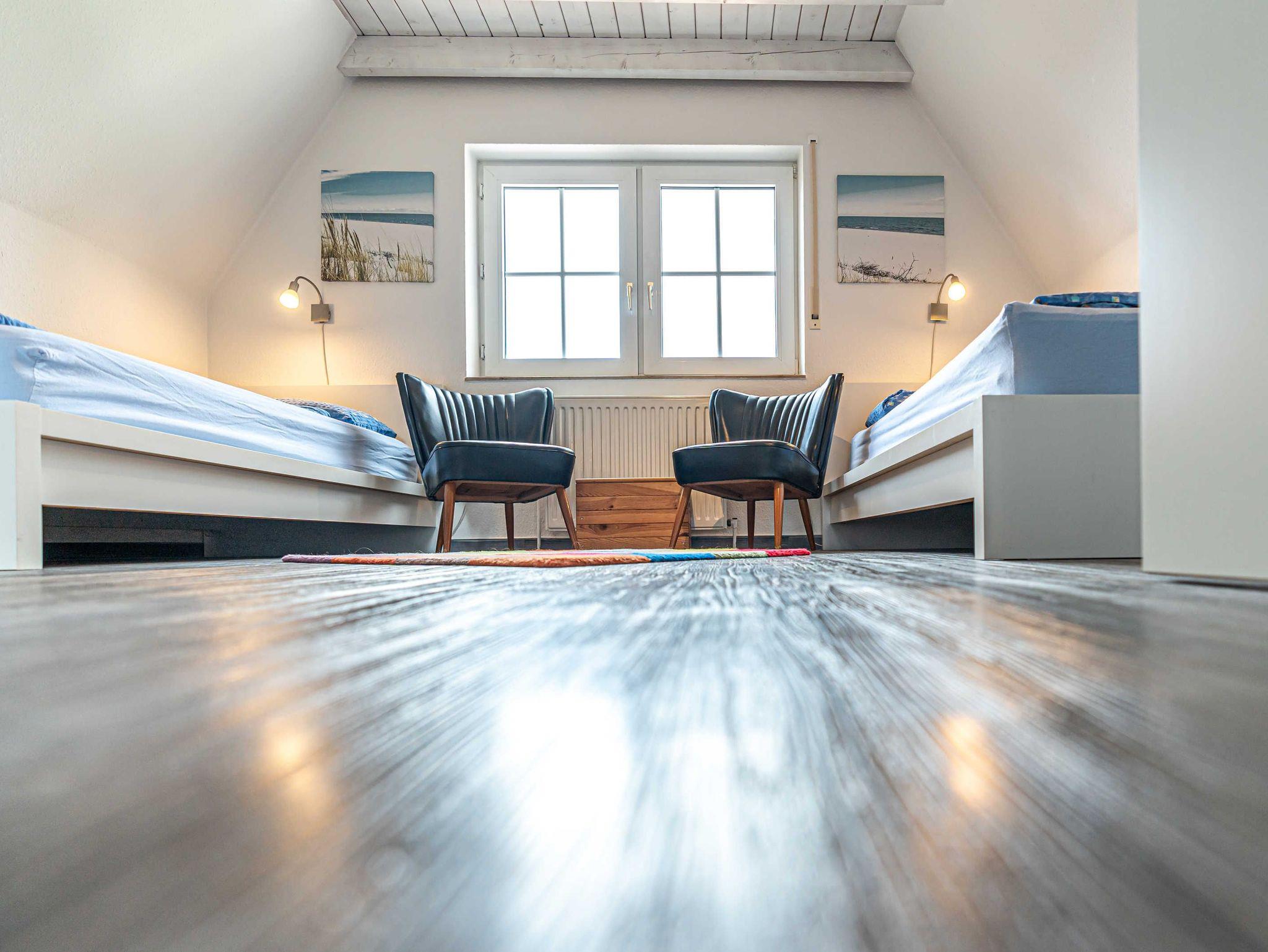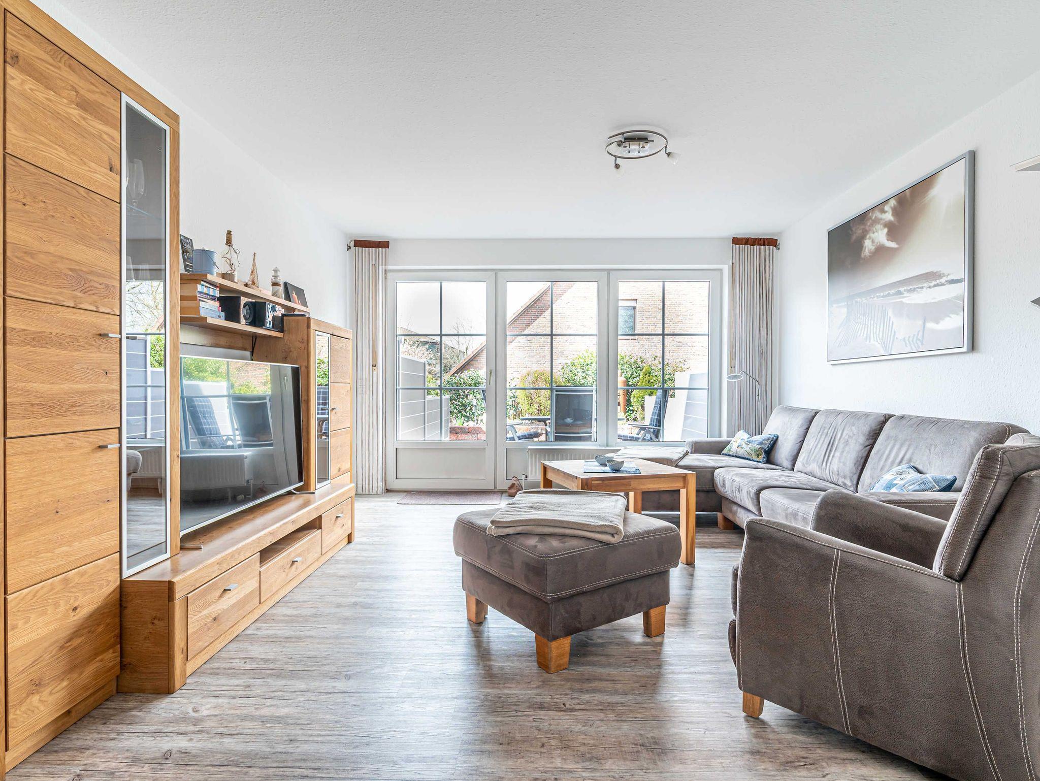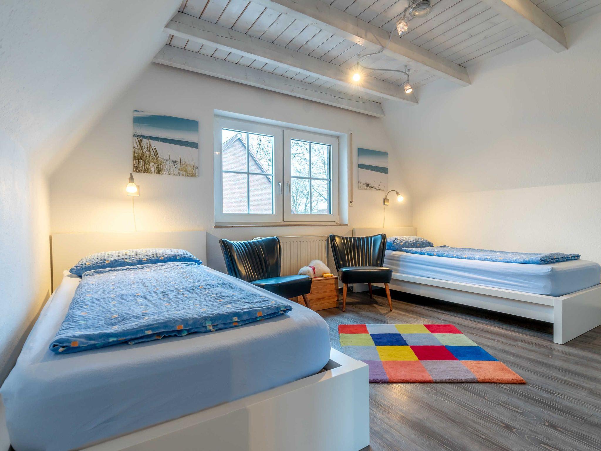 Hier fühlen Sie sich gleich wohl! Es erwartet Sie unser Ferienhaus Raue zu einem entspannten Nordsee-Aufenthalt. Direkt vor dem Haus liegt Ihr Auto-Stellplatz. Durch den Eingangsbereich mit Garderobe und Gäste-WC geht es zum kombinierten Wohn- und Essbereich mit und zur separaten voll ausgestatteten Küche. Im ersten Obergeschoss gibt es die beiden Schlafräume mit je einem Doppelbett - dieses ausgestattet mit Viscoflex-Matratzen - und zwei Einzelbetten sowie ein Duschbad mit Tageslicht. Es erwartet Sie eine große, gepflegte Terrasse, auf der es sich herrlich entspannen lässt.