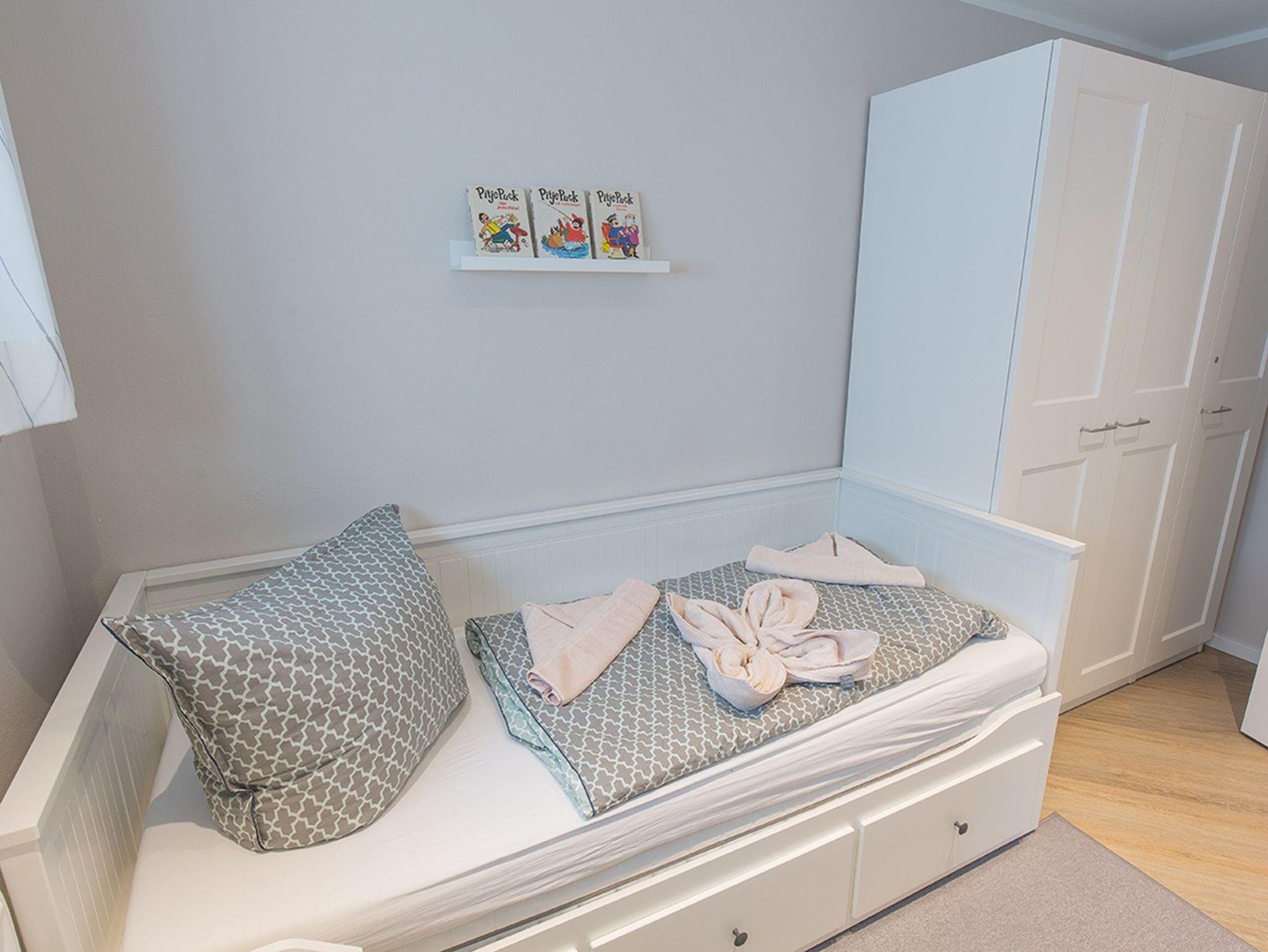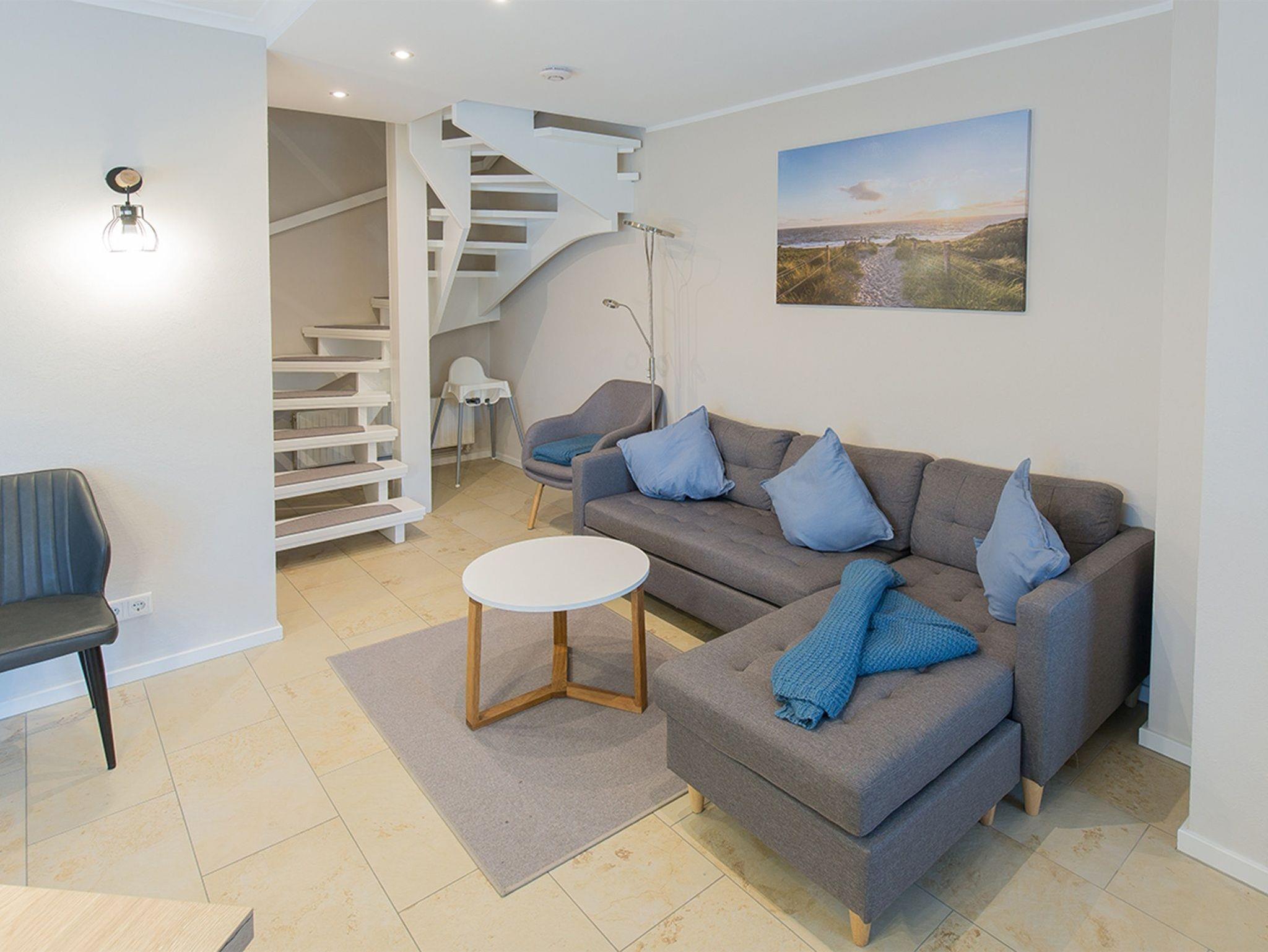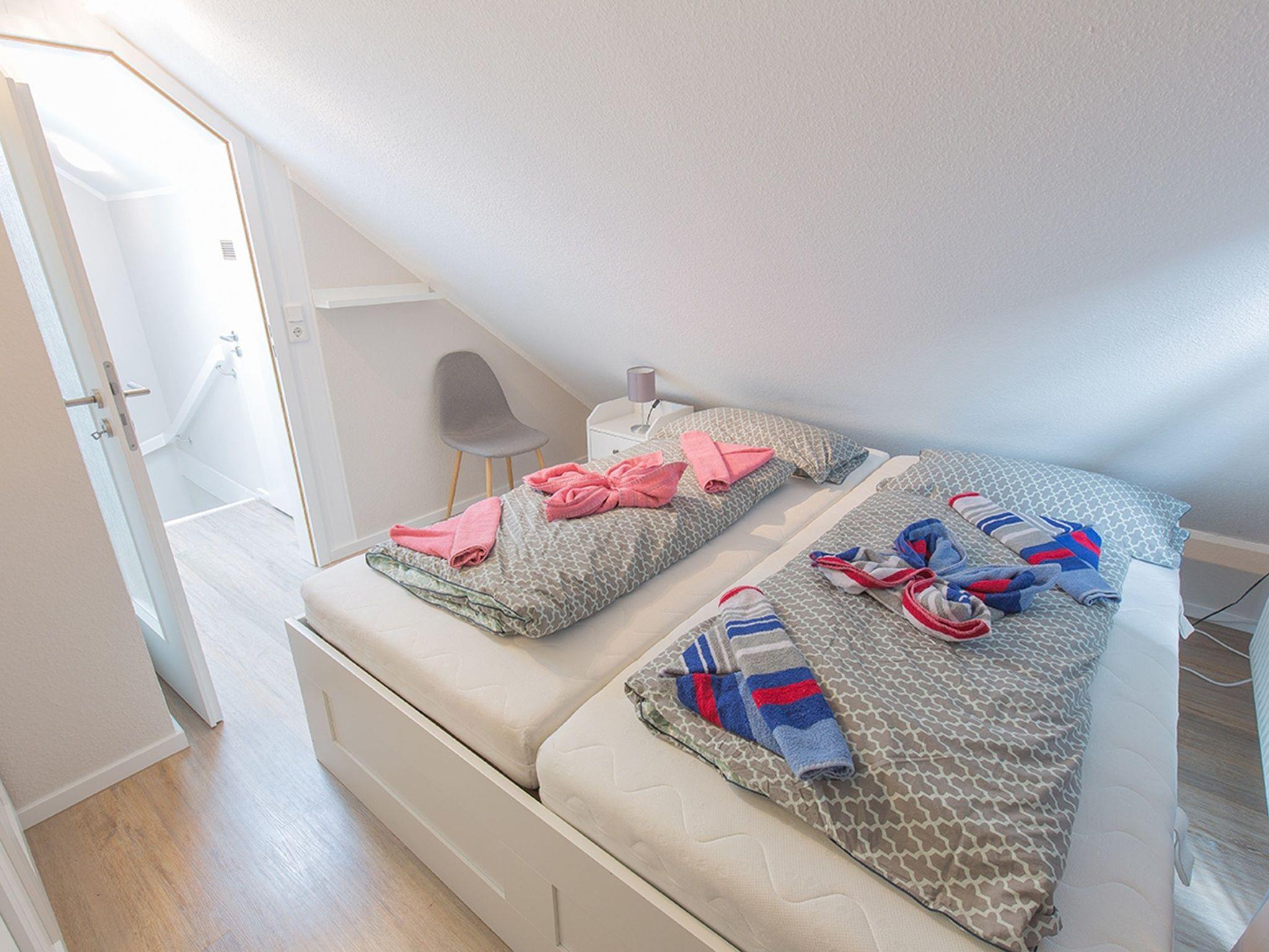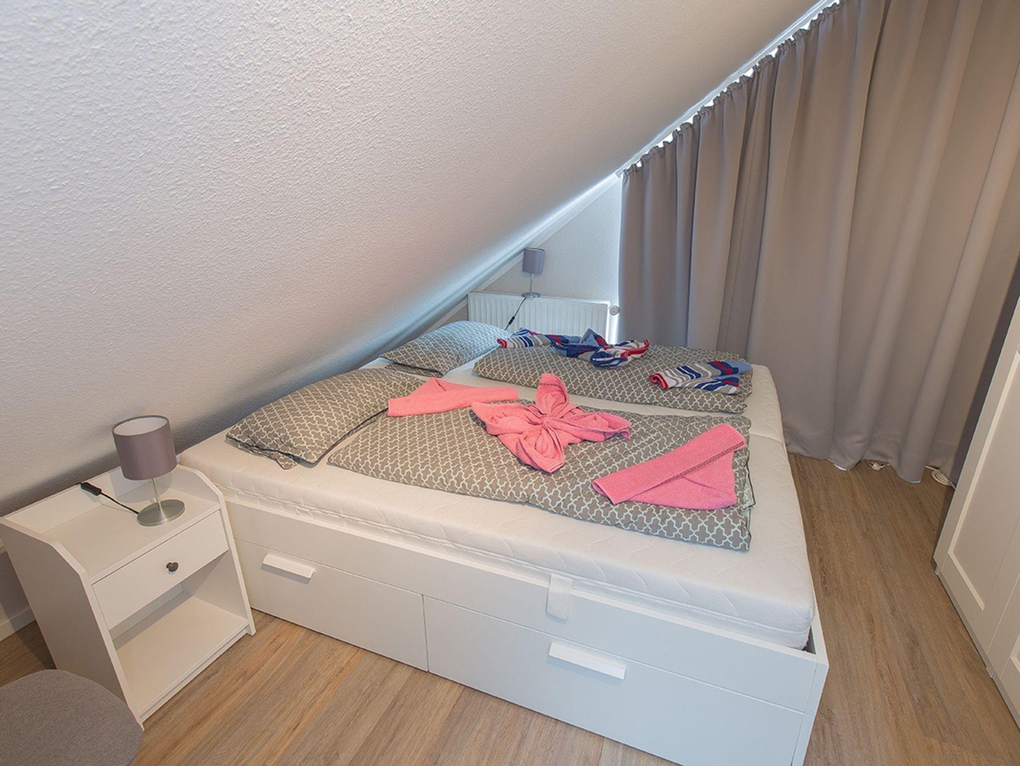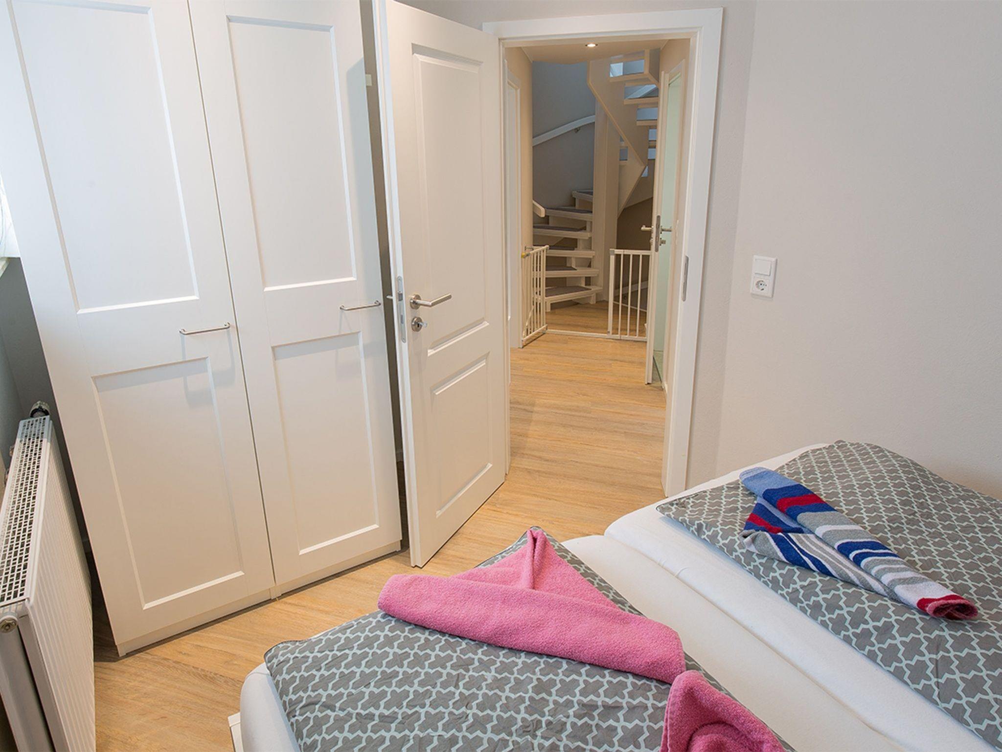 Das Ferienhaus Perlmuschel in der Danksteder Str. 23 B mit direktem Stellplatz vor dem Eingang ist ideal für bis zu acht Personen. Ab Diele mit Gäste-WC und dem ersten Duschbad gelangen Sie nach links in das Wohnzimmer mit Terrassenausgang. Hier im Wohn-/Essbereich empfängt Sie ein frisch renovierter heller freundlicher Wohn/Essbereich. In der Küchenzeile finden Sie alle Utensilien für ein entspanntes Kochen. Im ersten OG liegen drei Schlafräume, zwei davon mit ausziehbarem Tandembett, einer mit Doppelbett - und jeweils mit Kleiderschränken eingerichtet. Auf dieser Ebene sind auch die beiden Duschbäder. Hinauf im Dachgeschoss befindet sich ein weiteres Doppelbettschlafzimmer. Im separaten Hauswirtschaftsraum sind Waschmaschine und Trockner untergebracht. Entspannen Sie im schönen Garten und ihrer Sauna zur Alleinnutzung.