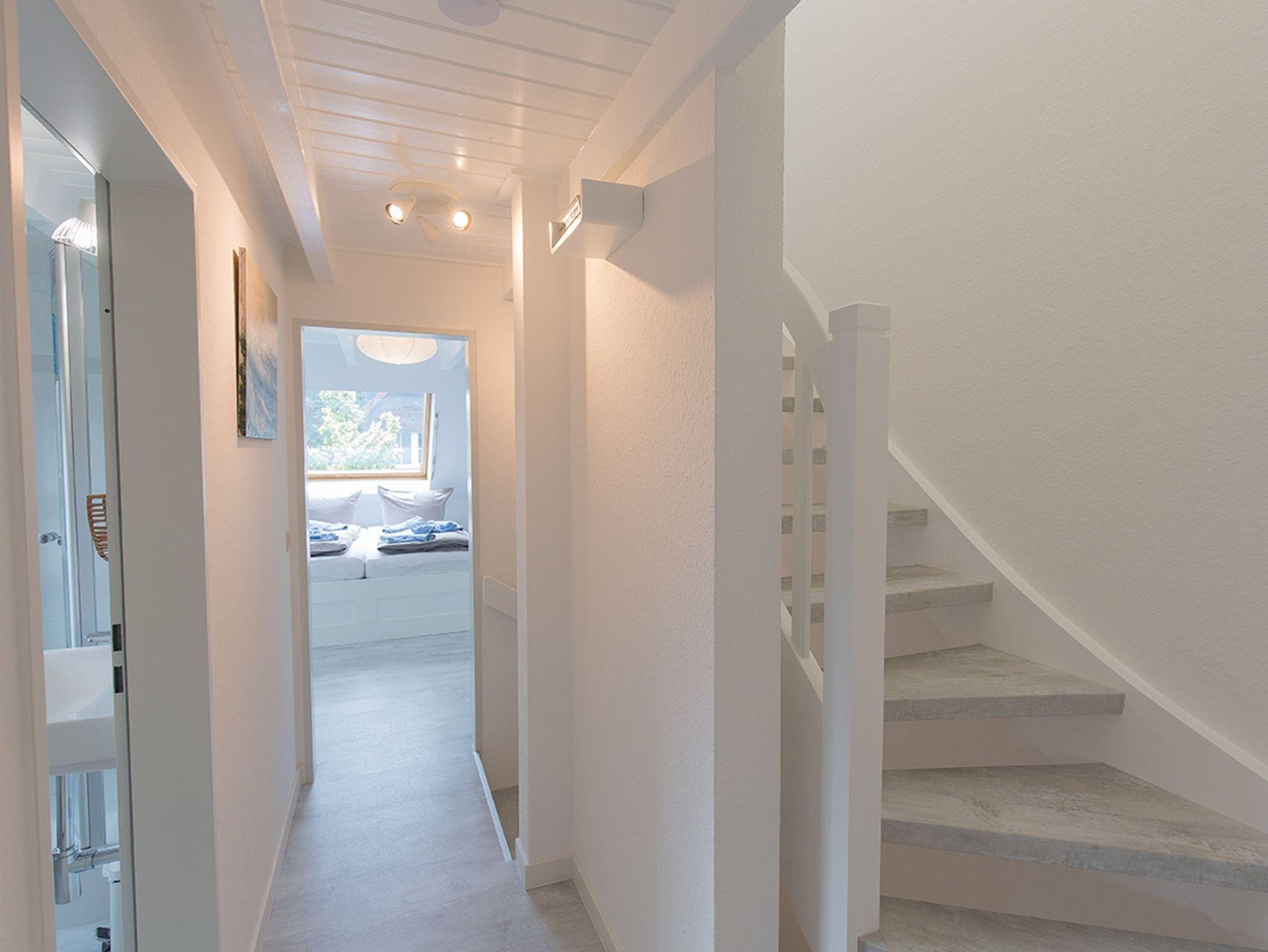 Von der Haustür aus gelangen Sie in einen kleinen Flur, wo Schuhe und Jacken schnell verstaut werden können. Hier befindet sich auch das Gäste-WC. Die gemütlich eingerichtete Küche bietet genügend Platz zum Klönen und Kochen und hat alles, um den Urlaub genießen zu können. Vom geräumigen Wohnzimmer haben Sie die Möglichkeit, auf der großen Terrasse zu entspannen. Die dortige Goldulme ist ein zusätzlicher Blickfang. Der angrenzende große Dachunterstand bietet zudem viel Platz für z.B. Fahrräder oder einfach für einen Aufenthalt im Schatten (oder um bei Schietwetter im Freien zu sitzen).