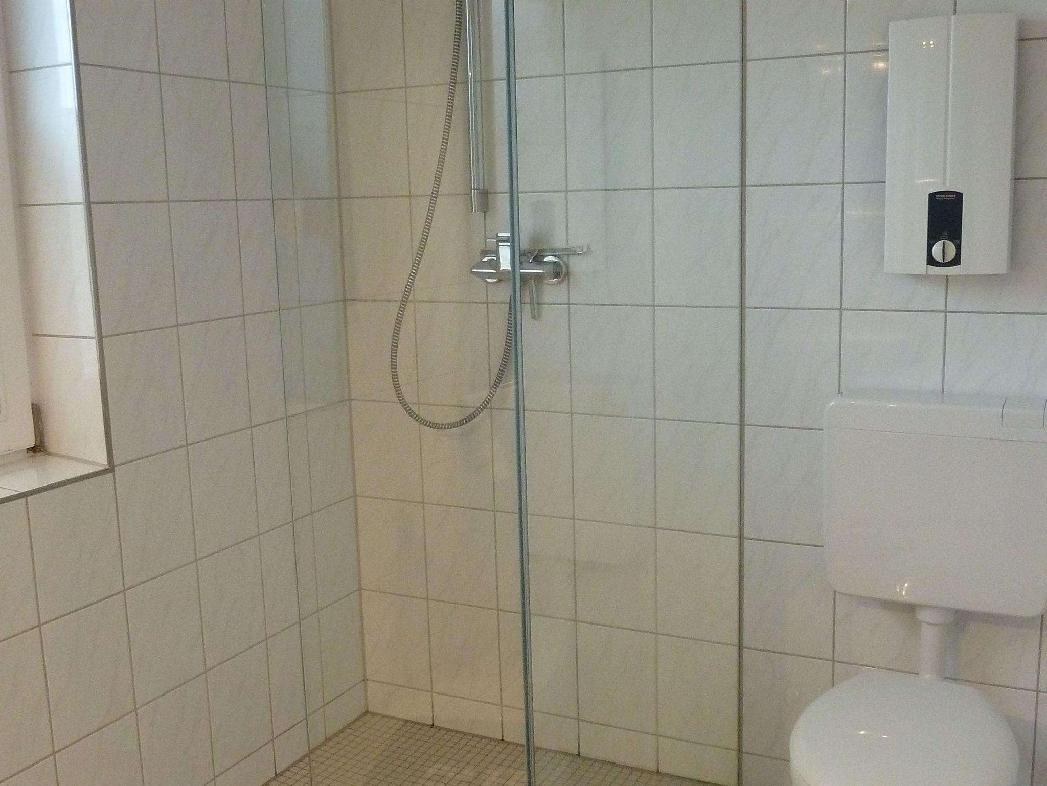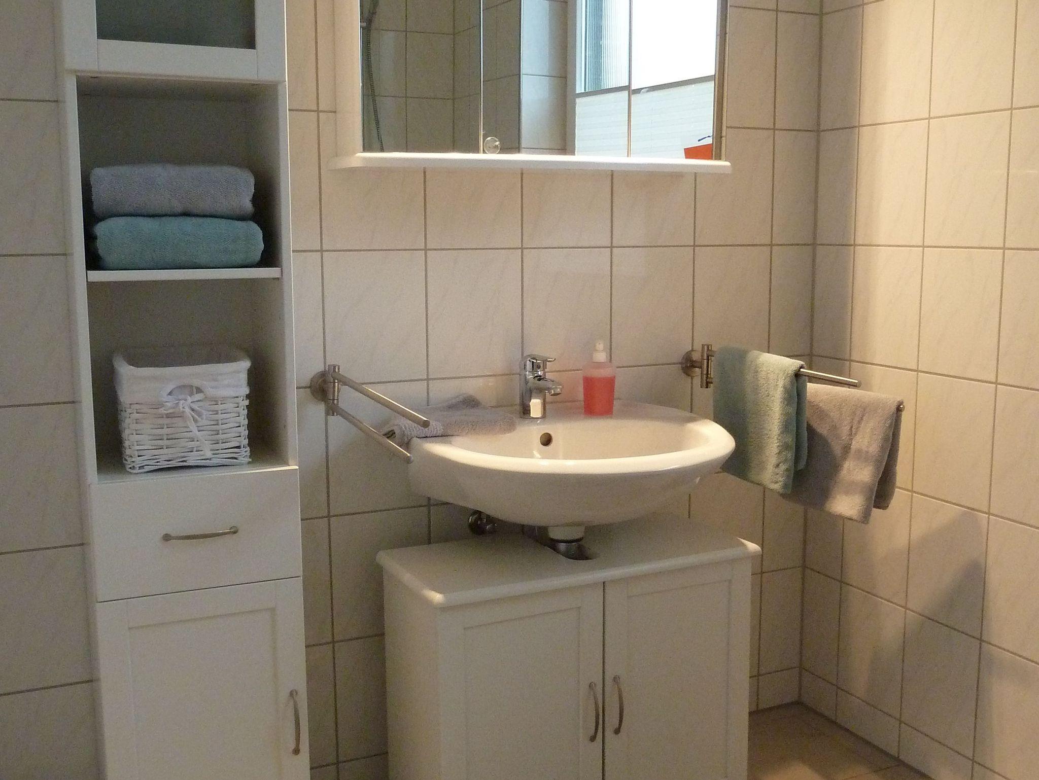 ein helles Tageslicht-Bad mit Dusche und viel Platz für Ihre Utensilien (Föhn vorhanden)