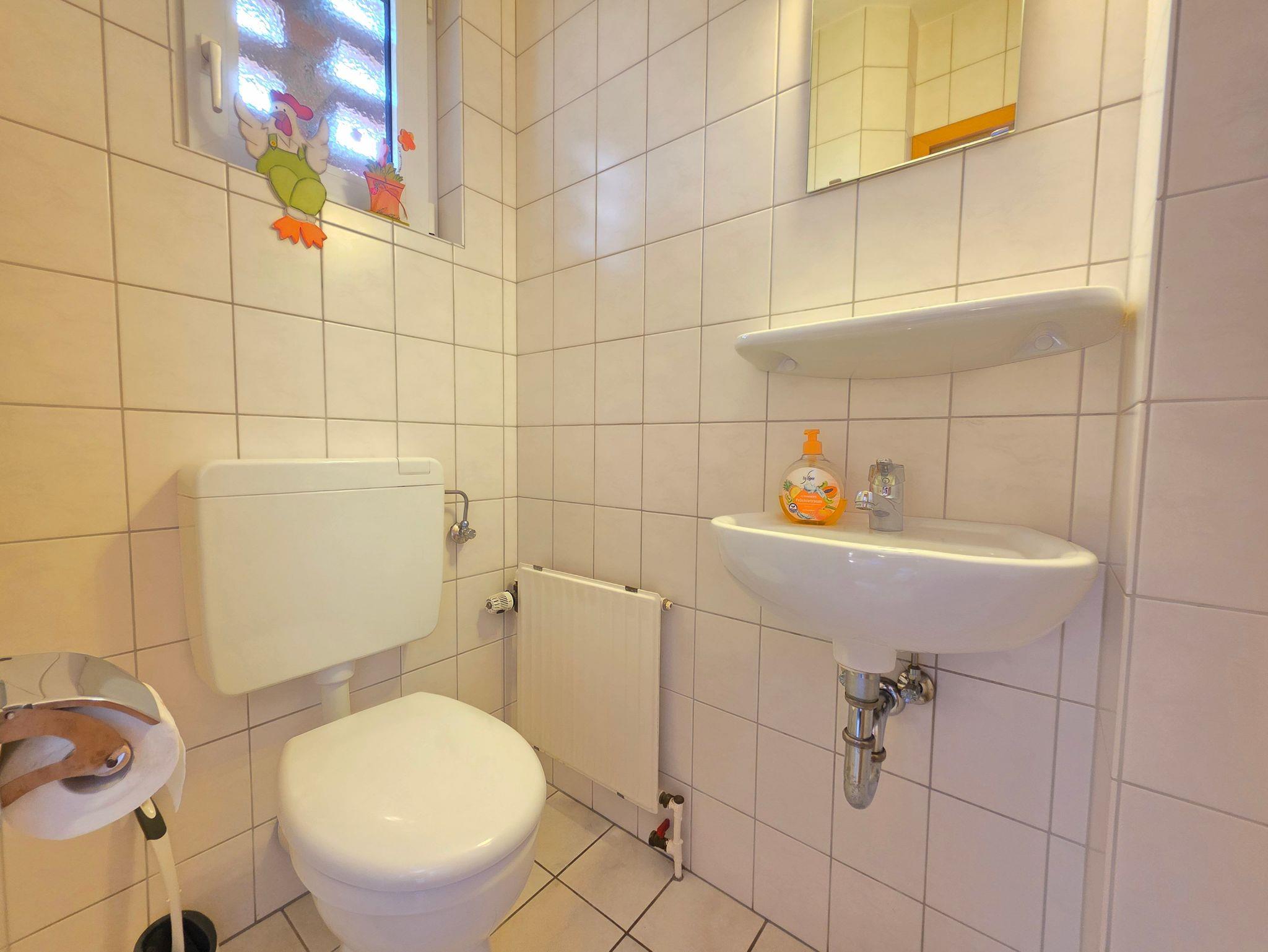 Wohnzimmer mit Essecke, separate Küche, Gäste-WC, Abstellraum