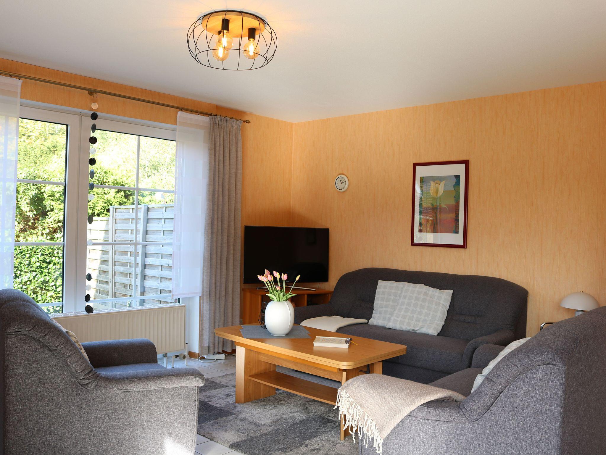 Eckgarnitur, Tisch, Schränke in skandinavischem Stil, Farb-TV mit Sat-Anlage, Radio, W-LAN, Diverses