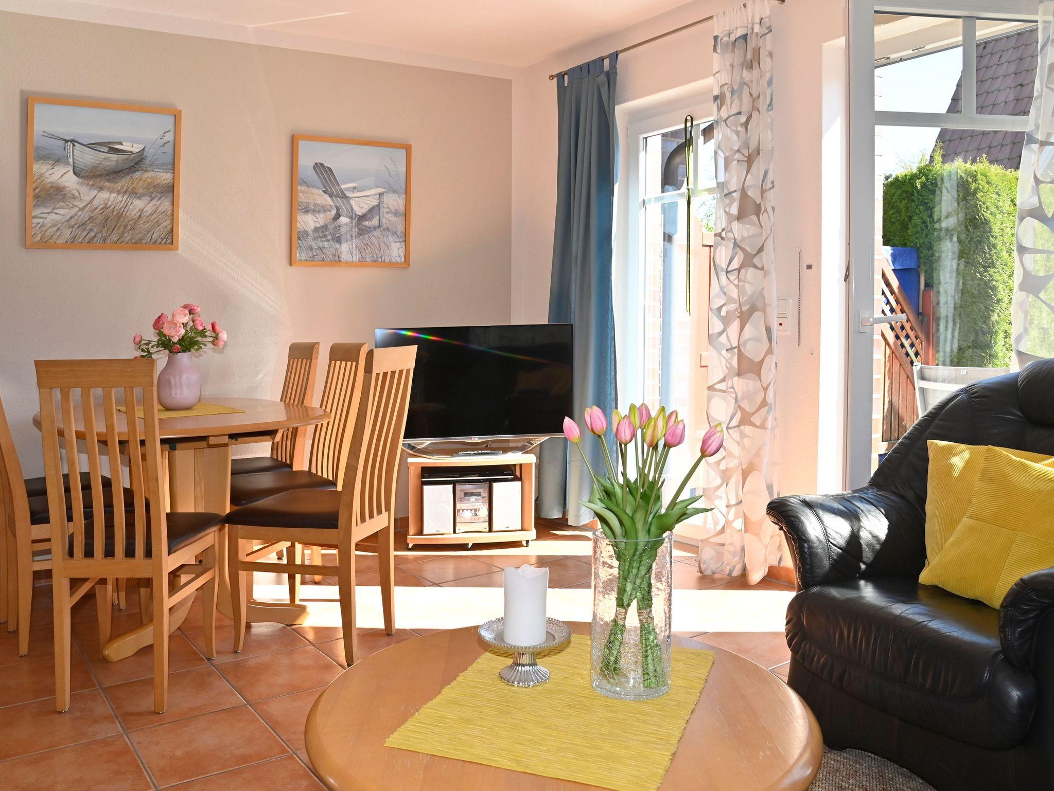 Dangast, Ferienhaus Arngast An der Rennweide 22a. Eine wunderschöne Doppelhaushälfte mit Wohlfühlcharakter. Im Ferienhaus Arngast wird Ihr Aufenthalt zur Entspannung pur. Es liegt zentral, strandnah und trotzdem ruhig. Das Ferienhaus ist ausgelegt für bis zu 6 Personen mit separater Küche (Spülmaschine) und Hauswirtschaftsraum (Waschmaschine, Trockner). Gemütliches Wohn-/Esszimmer mit großem Esstisch und Ledergarnitur. Insgesamt 3 Schlafzimmer (1 x Doppelbett; 1 x 2 Einzelbetten und im Dachstudio zwei Einzelbetten) sind vorhanden. Im Wohnzimmer, im Bad und in den Schlafräumen ist jeweils ein Fenster mit Insektenschutzgittern ausgerüstet. Die Süd-Terrasse mit Markise und Gartenmöbeln sowie die Rasenfläche bieten Platz genug zum Ausspannen. Für die Ausflüge mit Kindern steht im Gartenhaus ein Bollerwagen zur Verfügung. Dort können Sie auch Ihre Fahrräder sicher unterstellen. Das Haus ist allergikerfreundlich eingerichtet, daher sind Haustiere nicht erwünscht. Schneller Internetzugang (50 mbit) per WLAN.