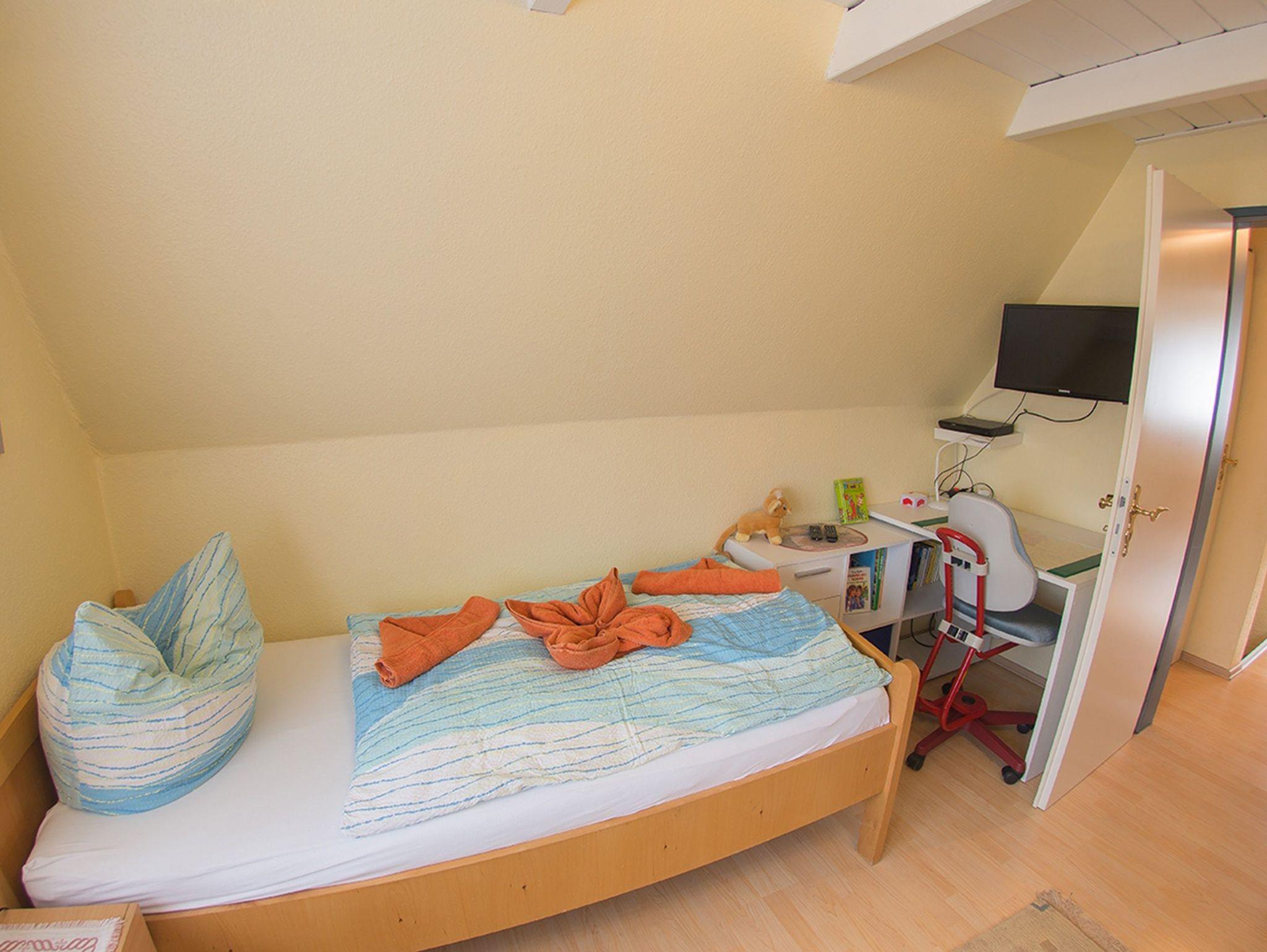 Unser Komfortferienhaus Am Alten Deich ist gemütlich ausgestattet. Durch den Eingangsbereich mit Garderobe und Gäste-WC gelangen Sie in das Wohn-/Esszimmer mit Sat-TV, Blue-Ray Player und der voll ausgestatteten Küchenzeile. Im Obergeschoß befinden sich zwei Schlafzimmer und das Duschbad. Das erste Schlafzimmer hat ein Doppelbett mit höhenverstellbaren Lattenrosten; das weitere Schlafzimmer zwei Einzelbetten mit ebenfalls verstellbaren Lattenrosten.