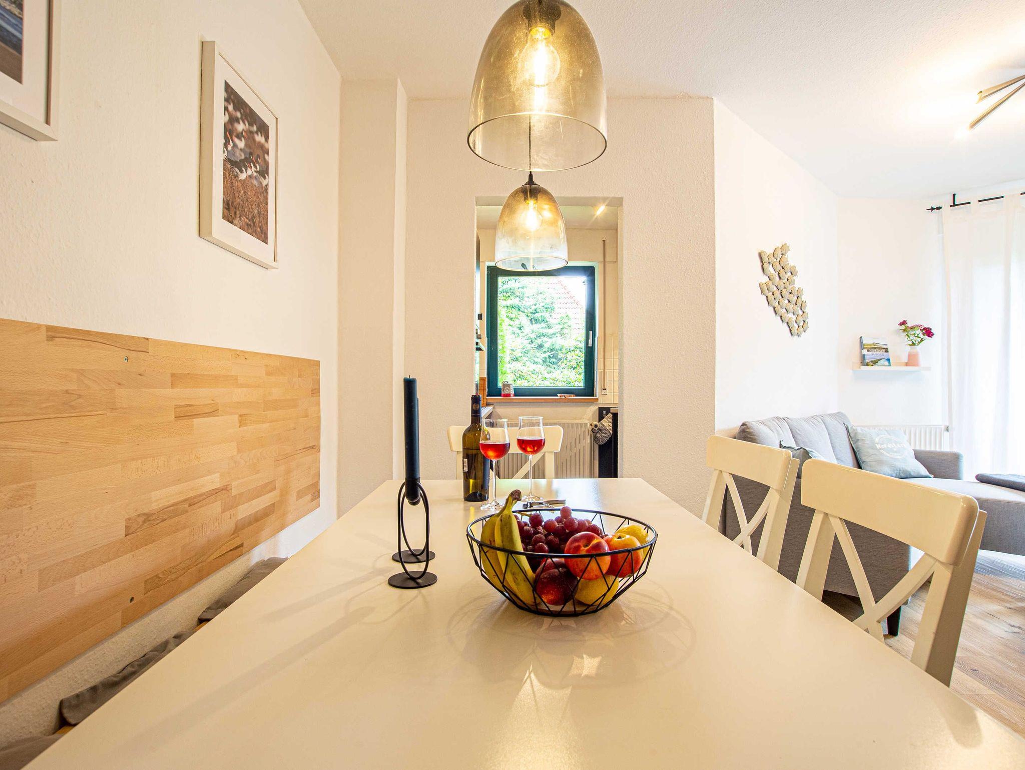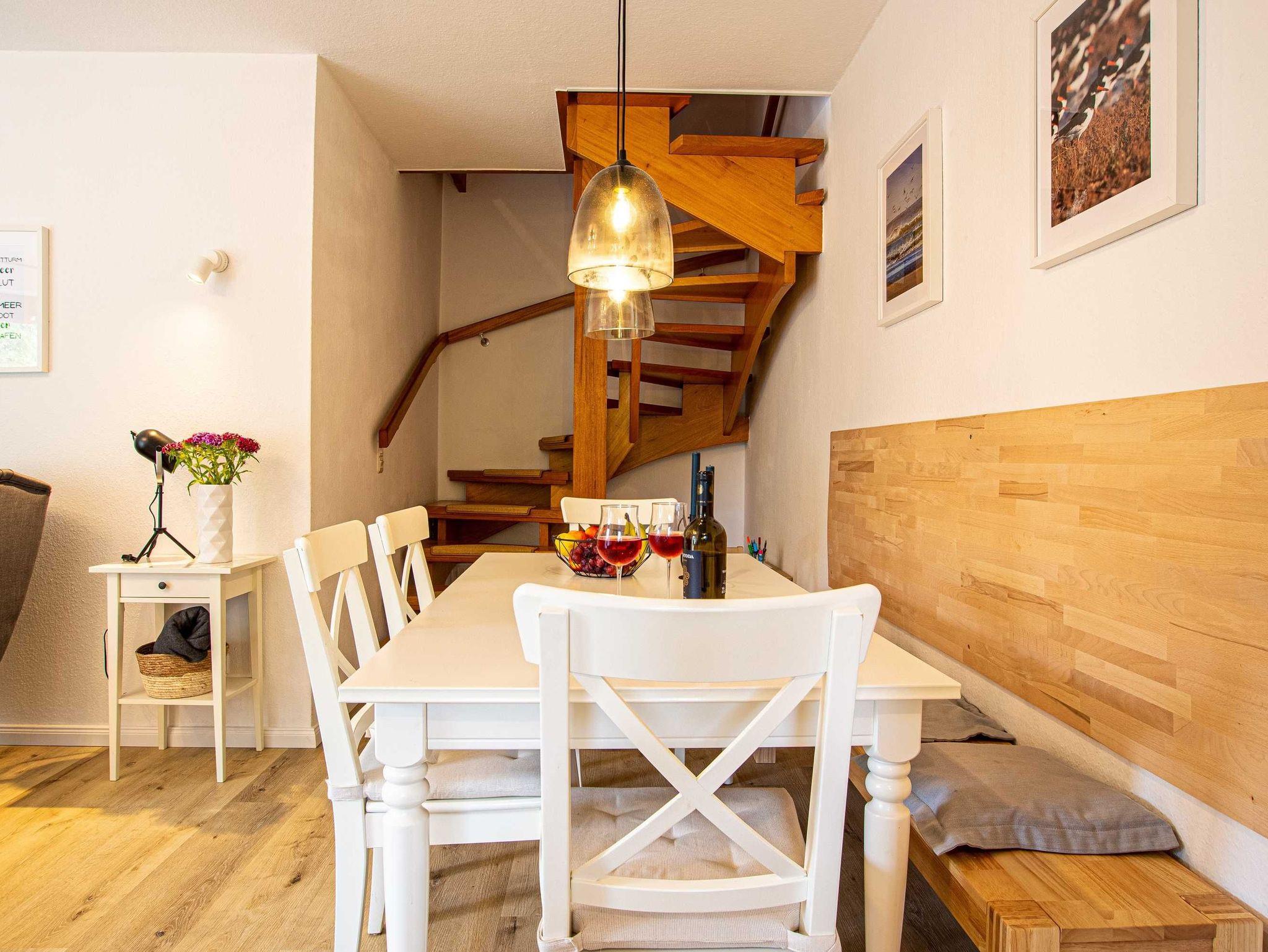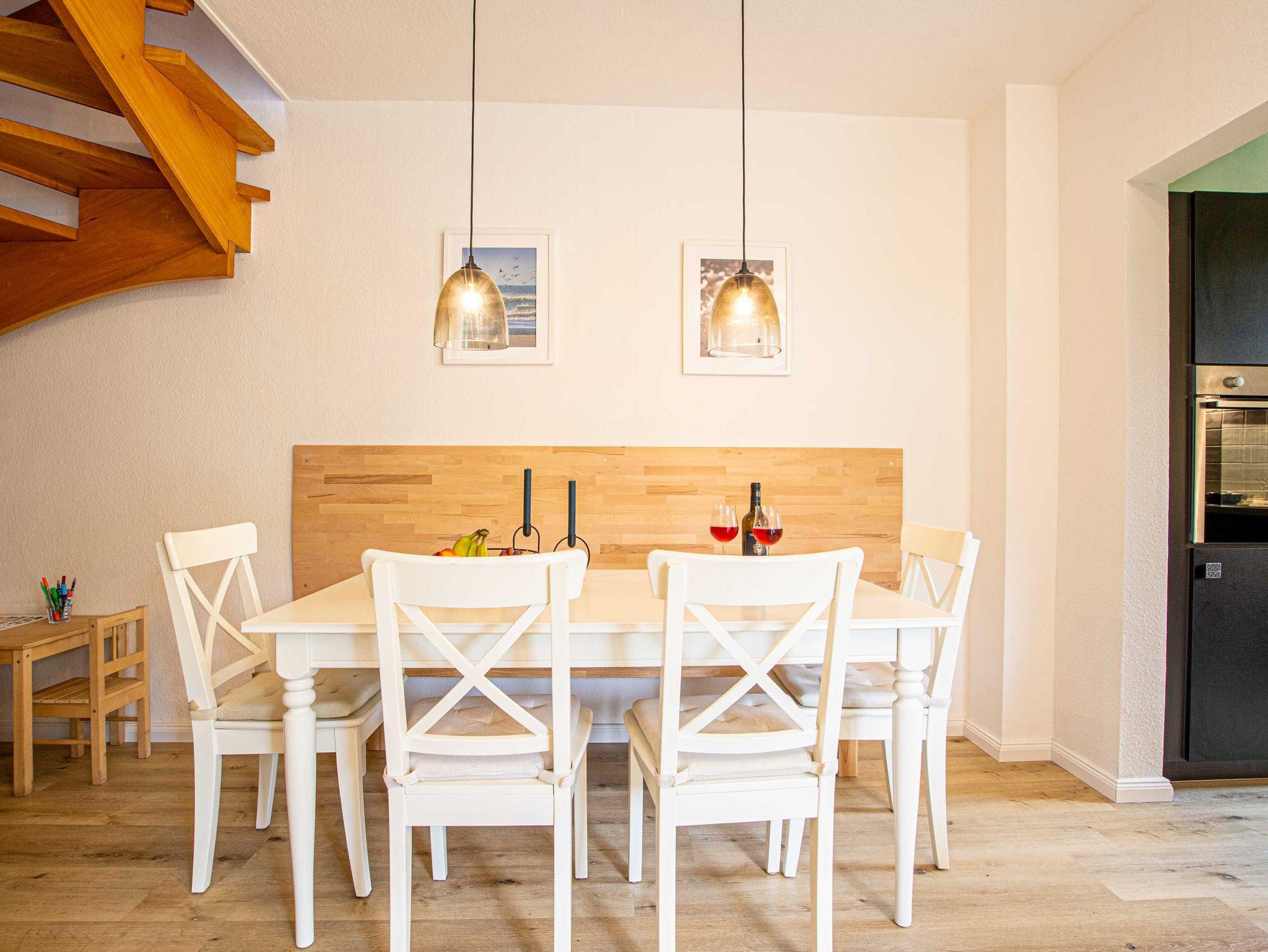 Unser Haus Nordstern in der Danksteder Str. 23D mit direktem Stellplatz vor dem Haus freut sich auf seine Gäste. Von der Diele gelangen Sie zum Gäste-WC und der Garderobe mit Waschmaschine. Im Wohnzimmer laden ein gemütliches Sofa sowie ein Sessel zum Verweilen ein. Der großzügige Essbereich und die vollausgestattete über Eck gebaute Küche bieten Platz und allen Komfort.