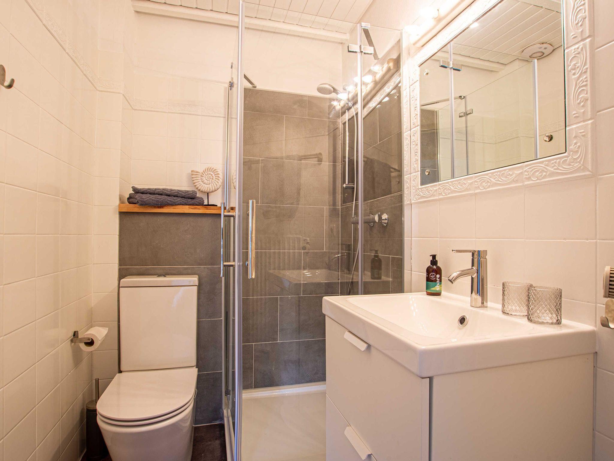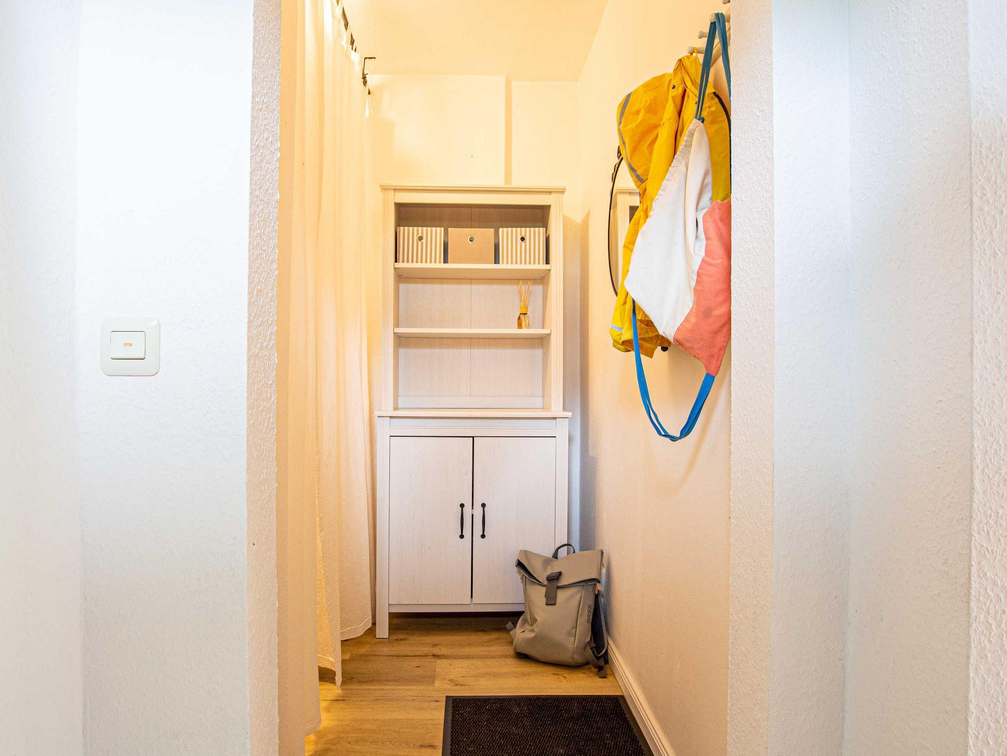 Im ersten Obrgeschoss befinden sich drei freundlich und hell eingerichtete Schlafzimmer. Ein Schlafzimmer mit Doppelbett, ein Zimmer mit Etagenbett sowie das dritte Zimmer mit einem Babybett sowie einem Einzelbett. Auf dieser Ebene ist auch das moderne helle Duschbad mit Waschplatz.