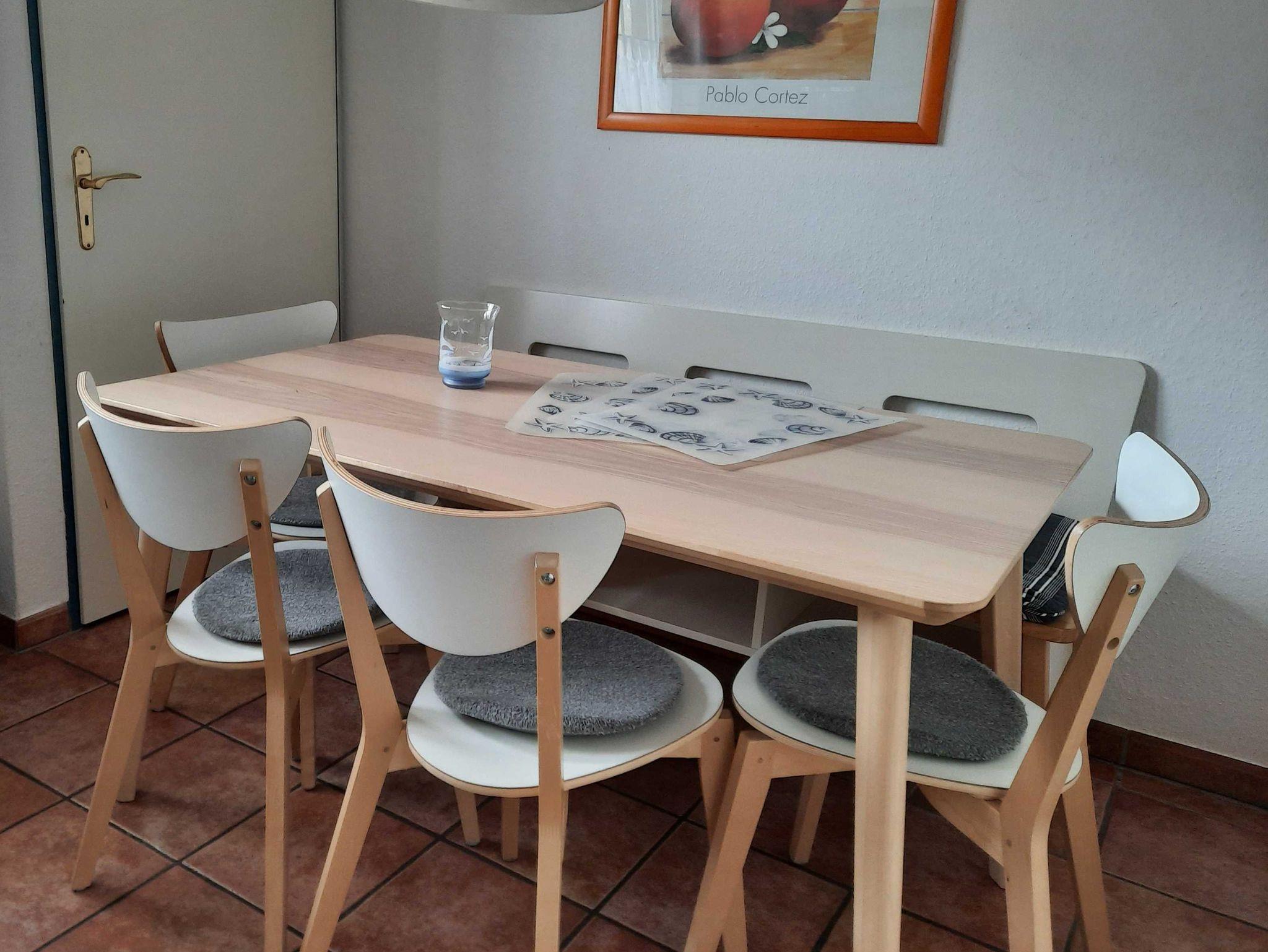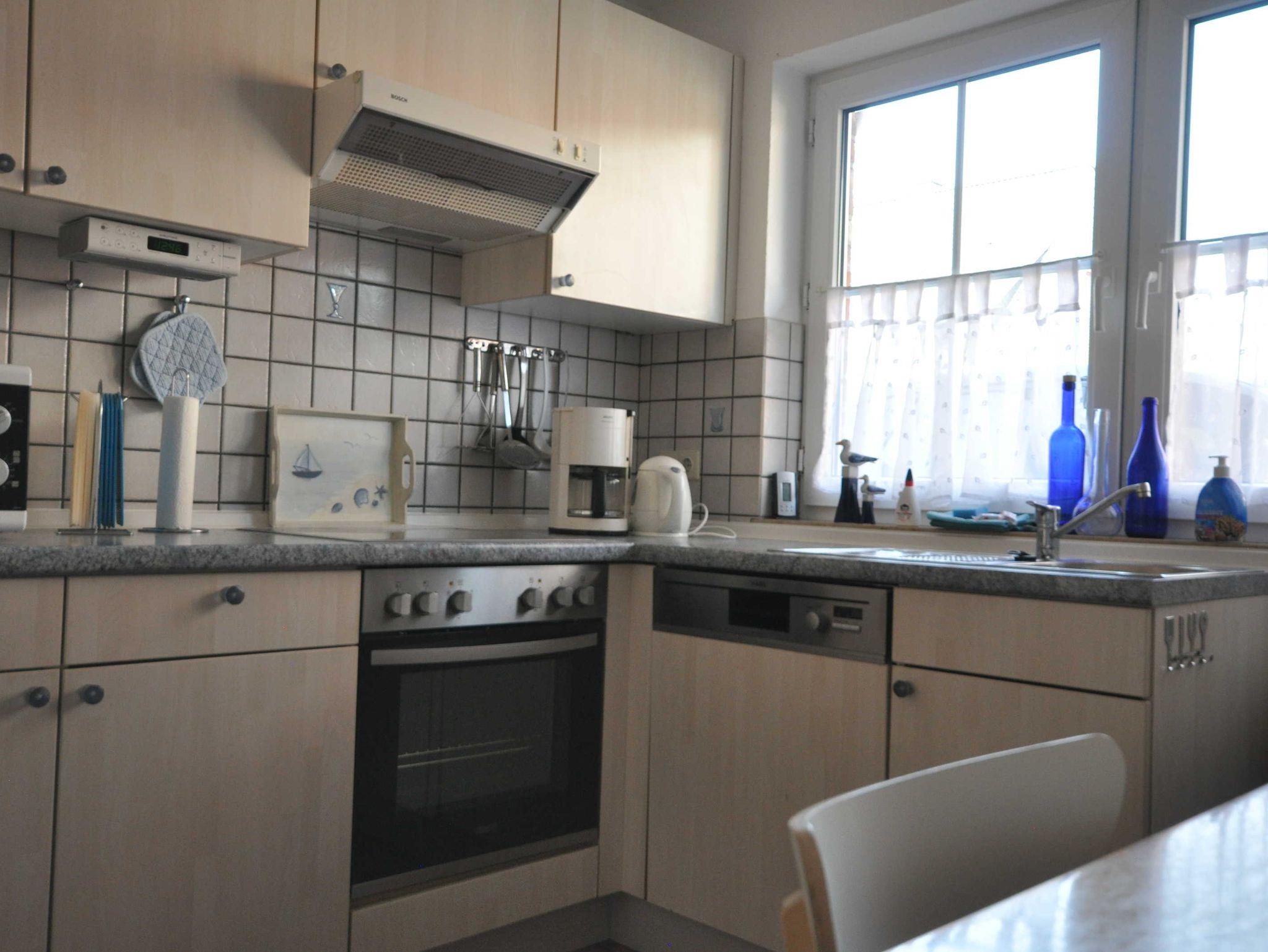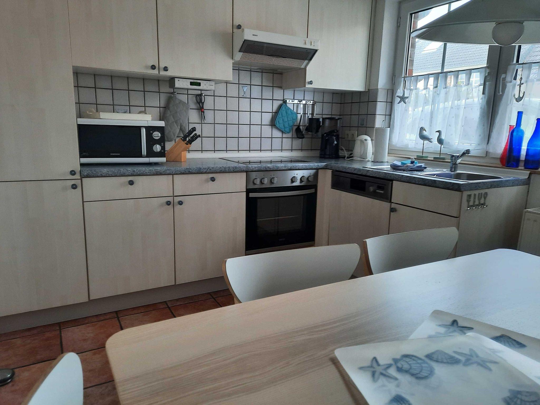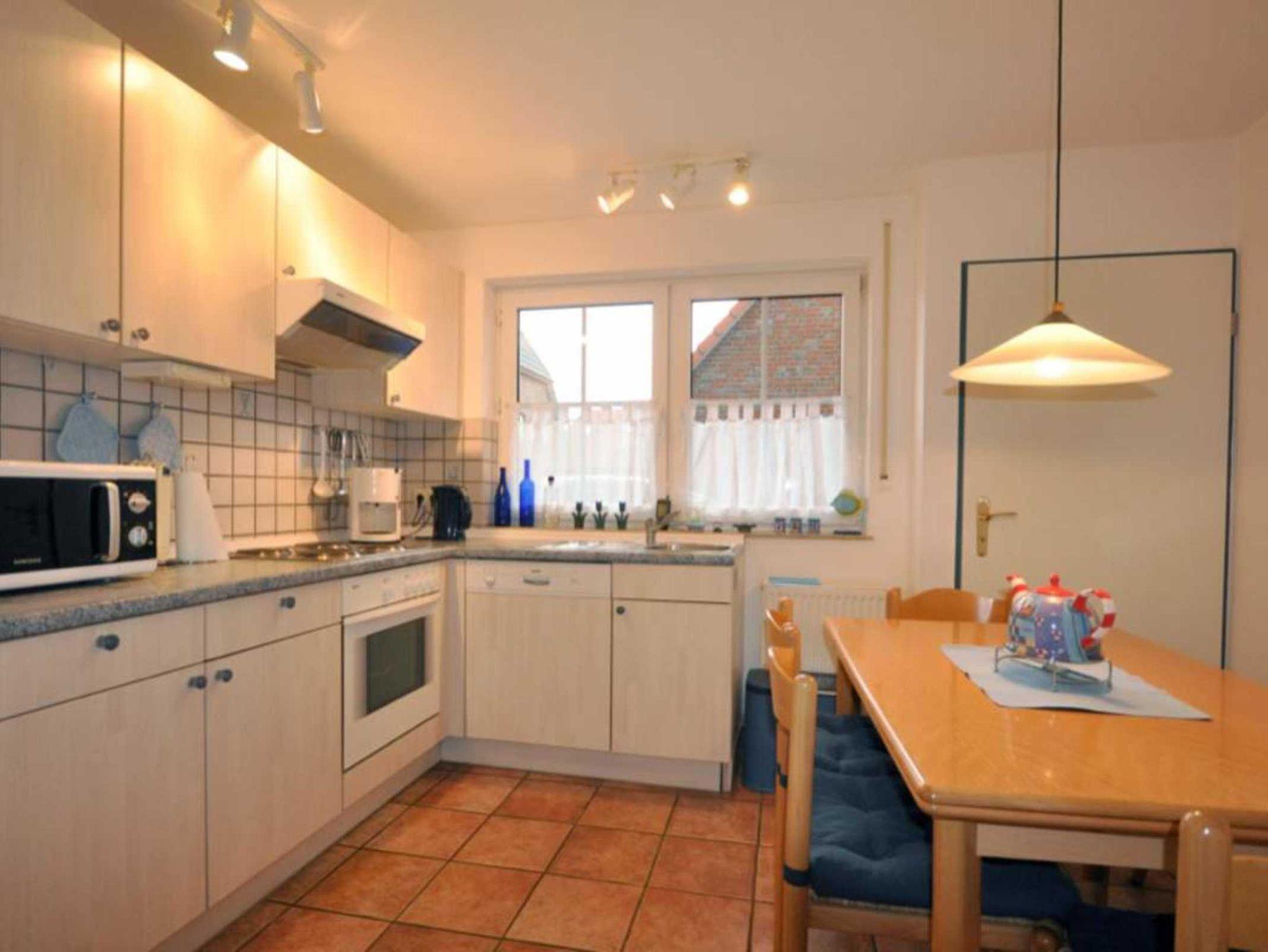 Haus Jade ist ein liebevoll eingerichtete Reihenendhaus über 3 Etagen. Im Erdgeschoss befindet sich die komplett eingerichtete, abgeschlossene Küche mit Essplatz, (Geschirrspüler, Backofen, Kühlschrank mit Gefrierfach usw.), ein Gäste-WC mit Fenster, ein kleiner Flur mit Garderobe und das große Wohnzimmer mit Zugang zur abgeschlossenen möblierten Südterrasse. Im ersten Stock wartet ein Schlafzimmer mit Doppelbett, ein Zimmer mit 2 Einzelbetten sowie dazwischen das Duschbad mit Waschmaschine und Haartrockner. Ein zusätzliches Zimmer mit zwei Einzelbetten, Sitzgelegenheit und kleinem Tisch für Gesellschaftsspiele usw. befindet sich im Dachgeschoss. Reisebettchen und Hochstuhl sind vorhanden. SAT-TV, WLAN, Telefon, Stereoanlage lassen keinen Komfort vermissen.