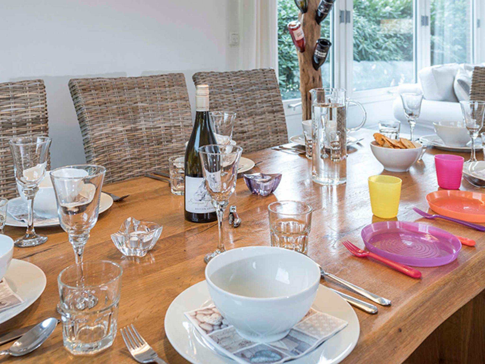 Im großen Wohnzimmer mit Kamin kann man sich treffen, Tee trinken mit Rhabarberkuchen vom Kurhaus oder zusammen essen am großen Tisch für 12 Personen. In der großen Küche mit Stehtisch lässt sich hervorragend zusammen kochen oder einfach schnacken. Auf der Terrasse, im Garten oder in der sog. Lounge geht am gemeinsamen Grillen fast kein Weg vorbei. Die Kinder können jederzeit raus in den großen, eingewachsenen Garten.