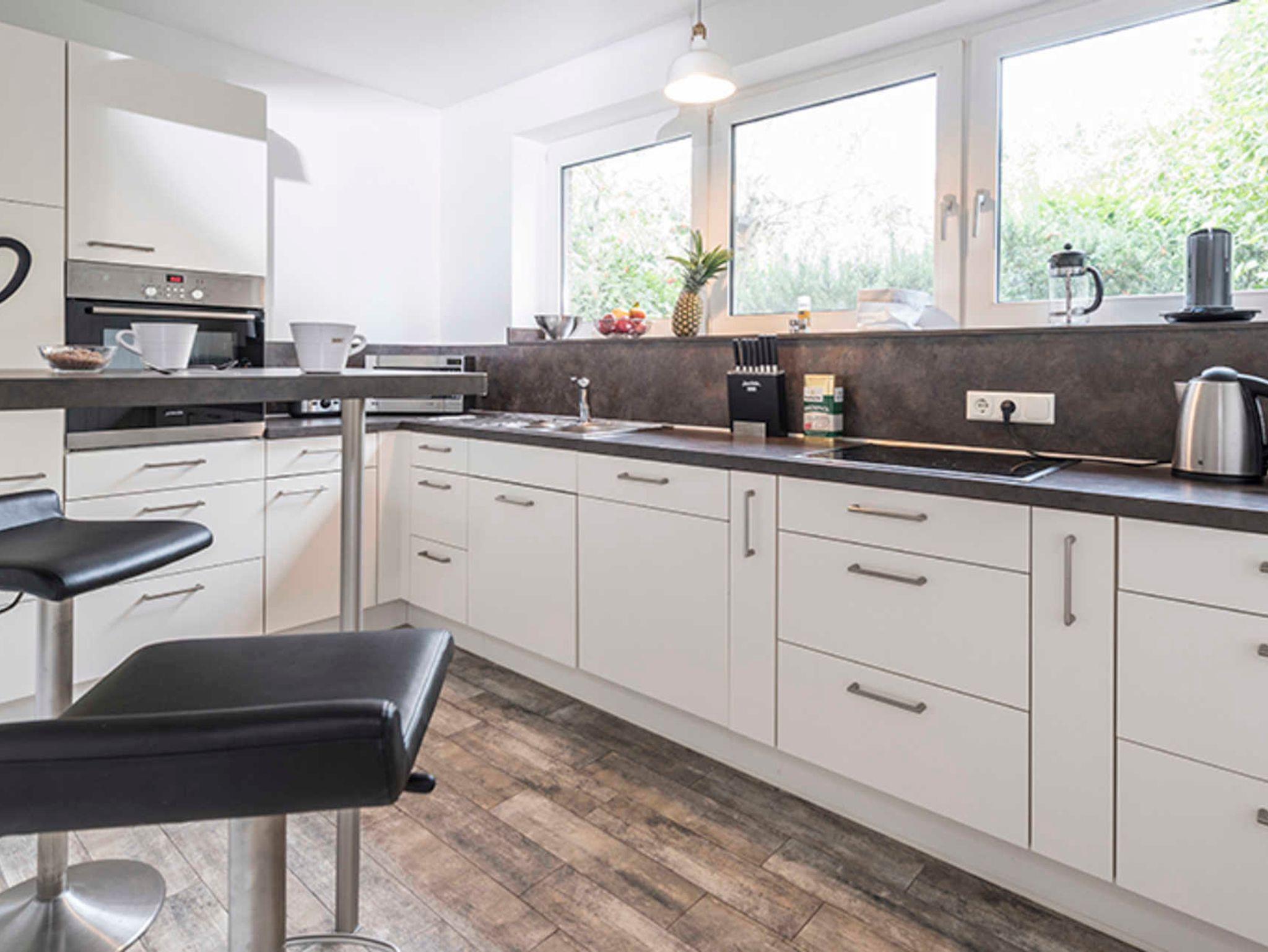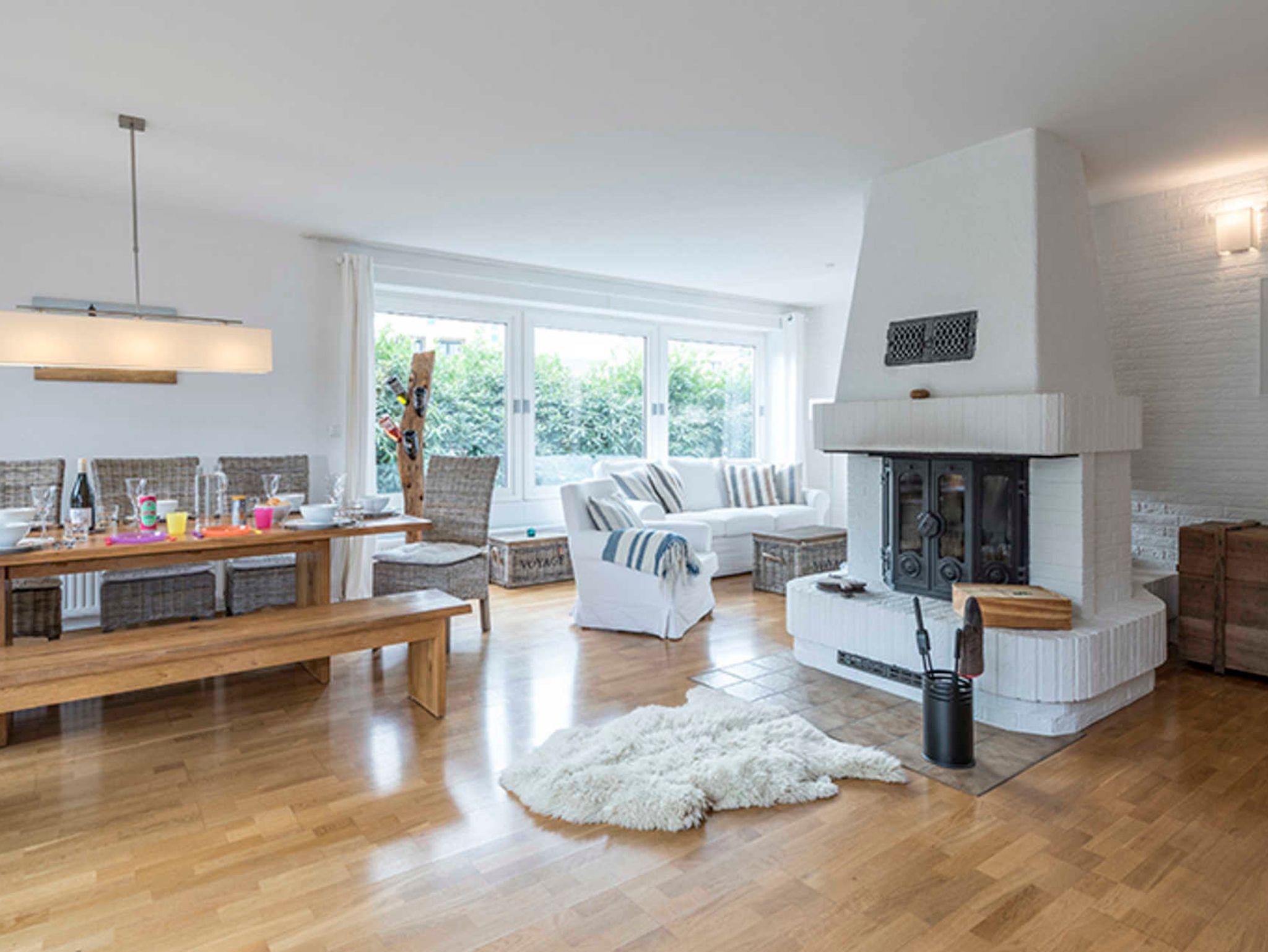 Im großzügigen Wohnzimmer mit Kamin kann man sich treffen, Tee trinken oder zusammen essen am großen Tisch für 12 Personen. In der geräumigen Küche mit Stehtisch lässt sich hervorragend zusammen kochen oder einfach schnacken. Auf der Terrasse, im Garten oder in der sog. „Lounge“ geht am gemeinsamen Grillen fast kein Weg vorbei. Die Kinder können jederzeit raus in den großen, eingewachsenen Garten.