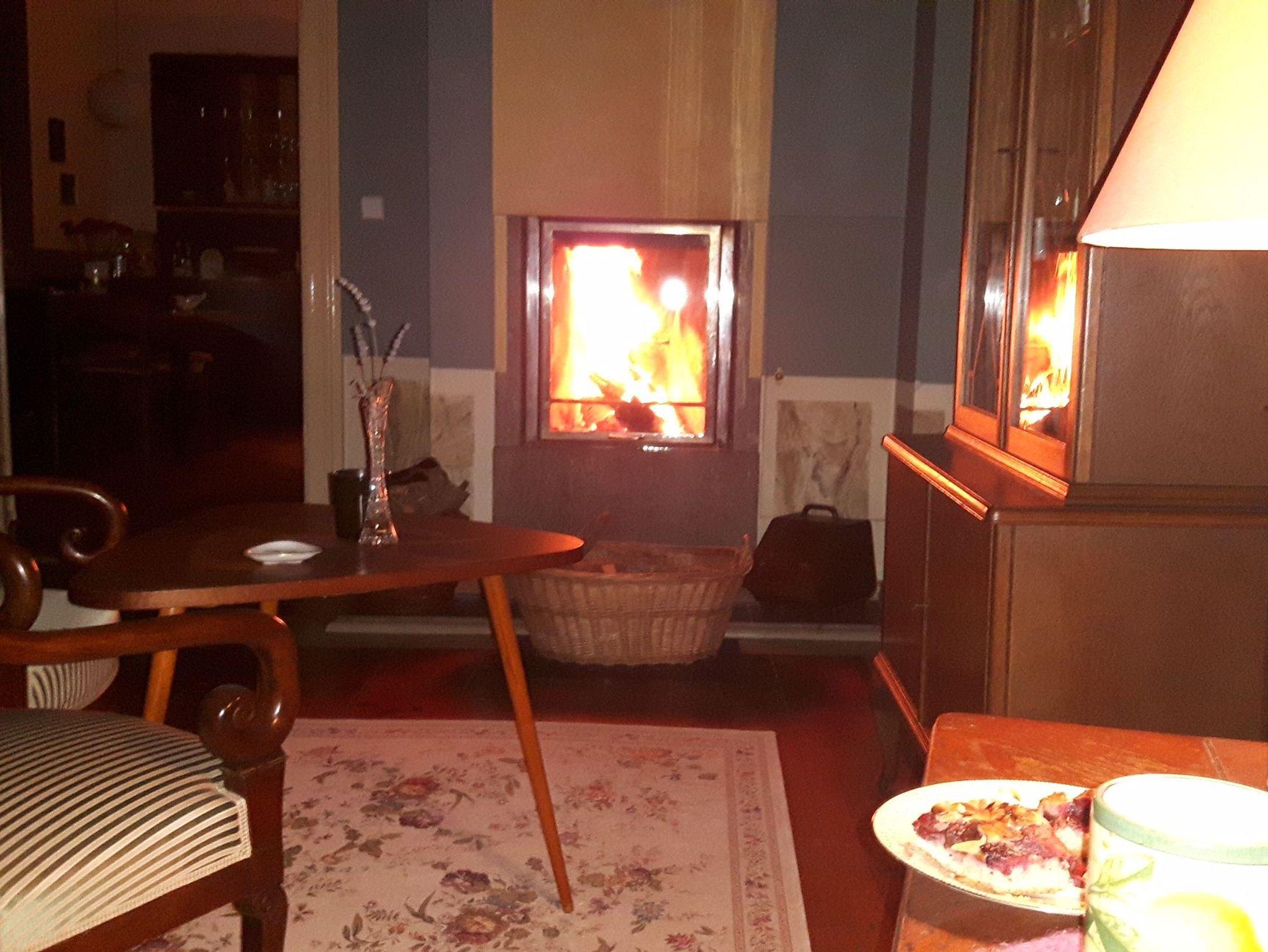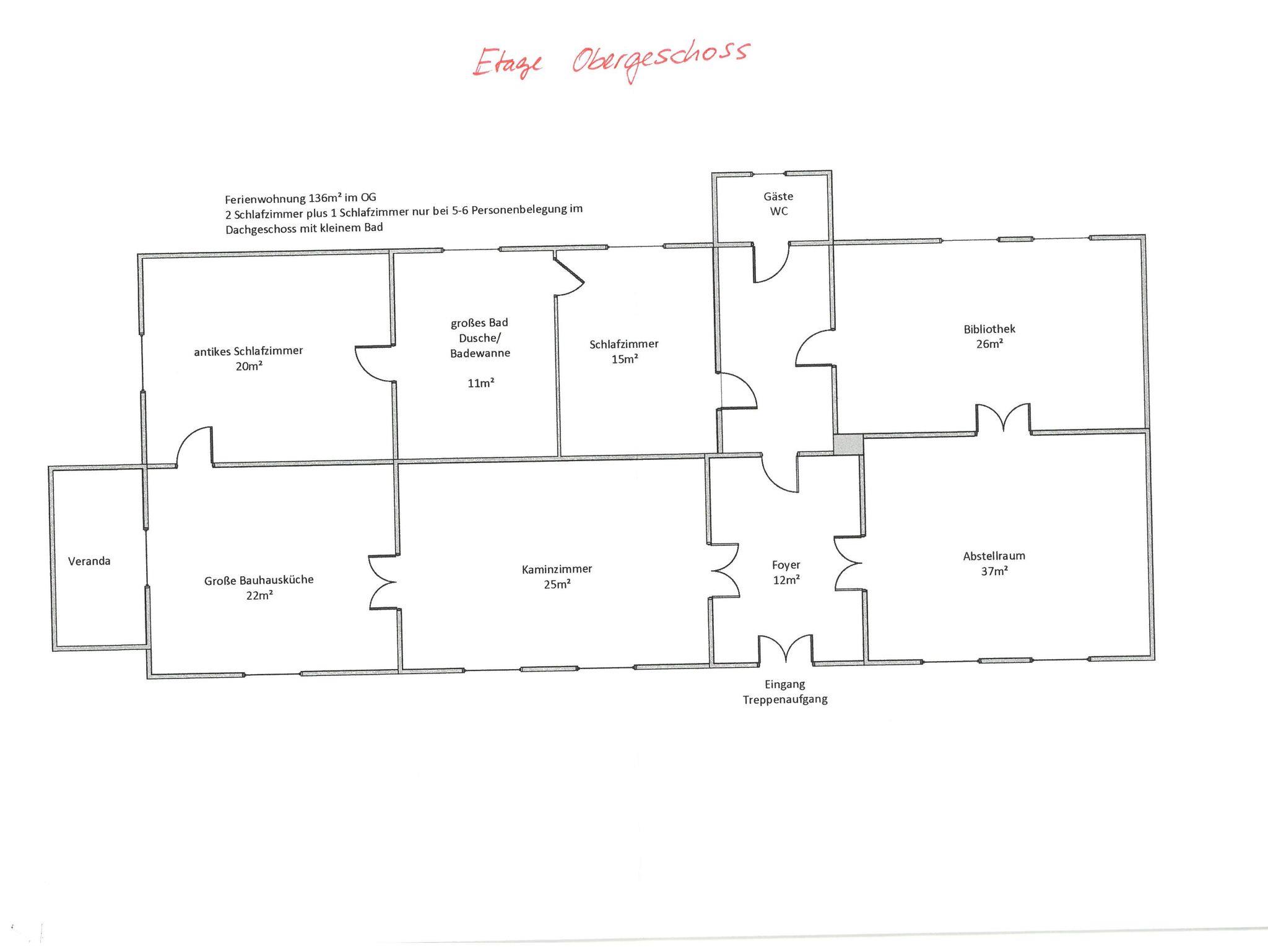Ferien-im-Herrenhaus Wüstenhain genießt man fürstlich in einer eleganten Ferienwohnung (136qm) mit einem großen Bad, Gäste-WC, großer Bauhaus-Küche, idyllischer Holzveranda, Kaminzimmer mit TV und die alte hauseigene Bibliothek darf gern dafür genutzt werden. (siehe Grundriss in der Galerie)