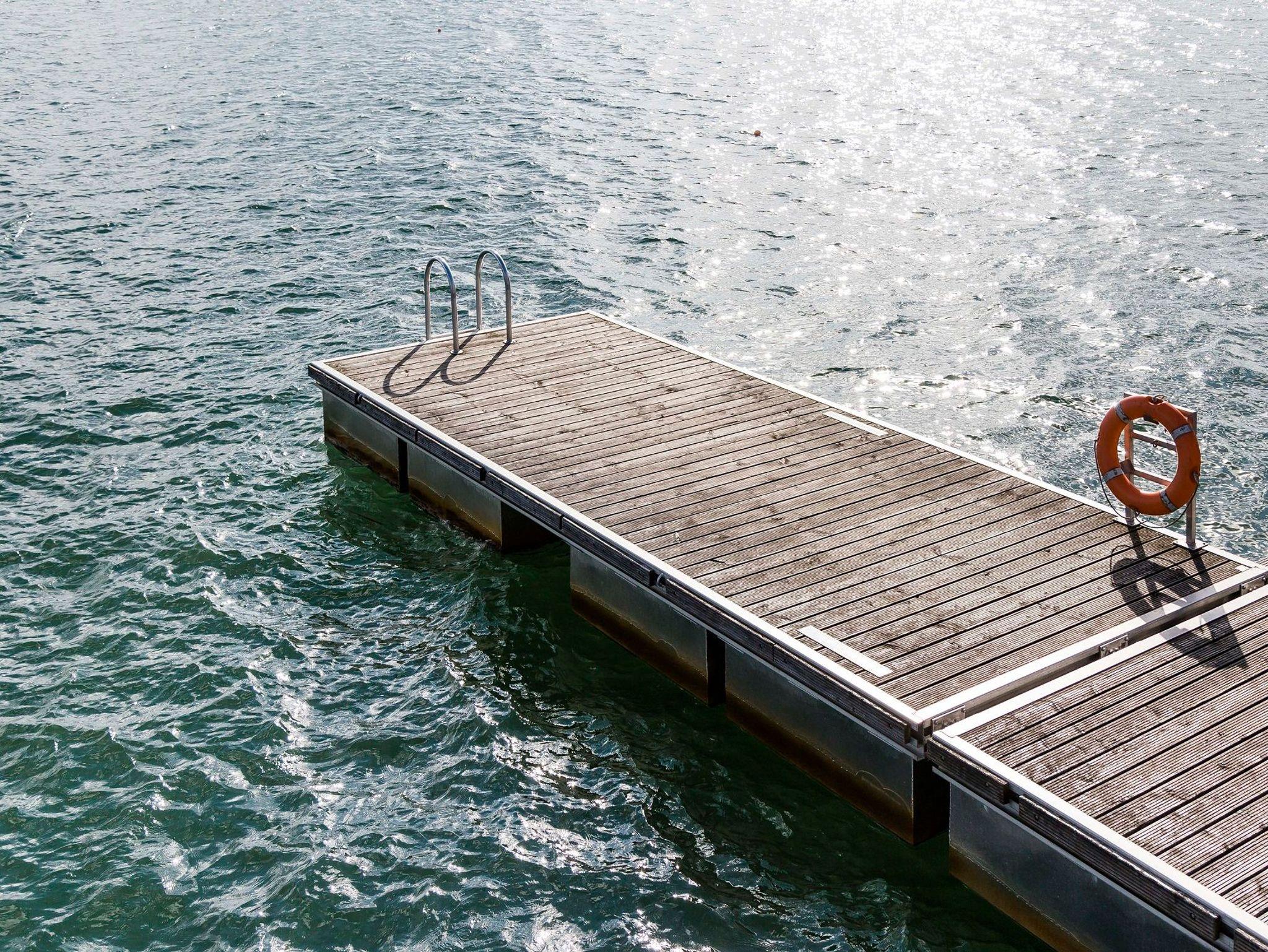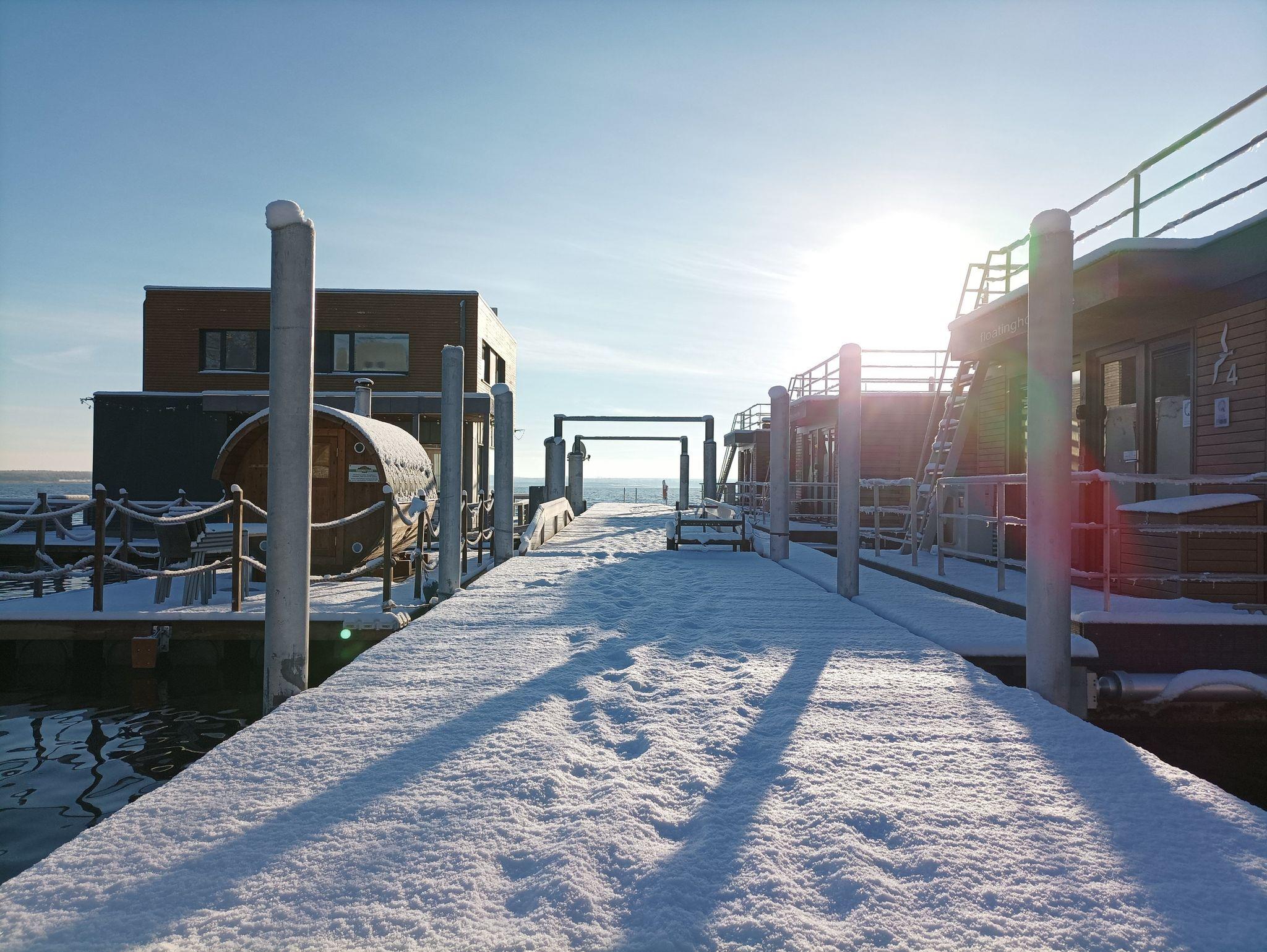 Ein externes Saunafloss an der Steganlage kann kostenpflichtig und nach Verfügbarkeit gebucht werden.