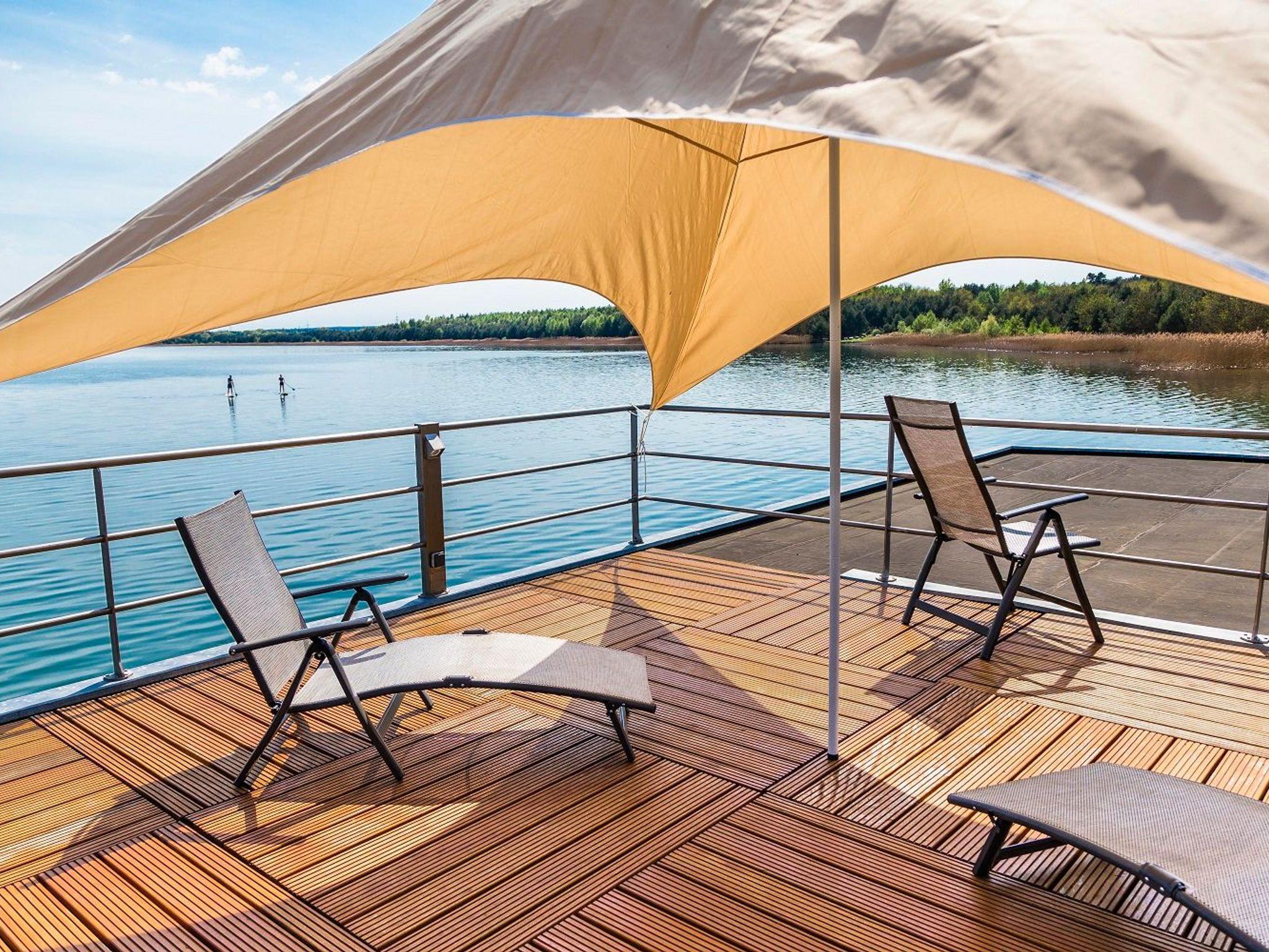 Die modernen Hausboote liegen ruhig und idyllisch am Gräbendorfer See bei Laasow. Jedes Ferienhaus verfügt über eine umlaufende Wasserterrasse und eine großzügige Panoramadachterrasse mit 360-Grad-Blick auf See und Natur. Für Privatsphäre sorgen blickdichte Plissees und Sonnensegel. Hier wird aus dem Alltag eine Auszeit mit besonderem Charakter.