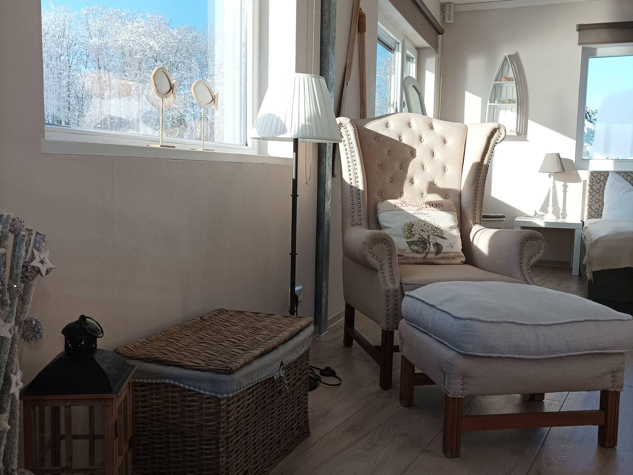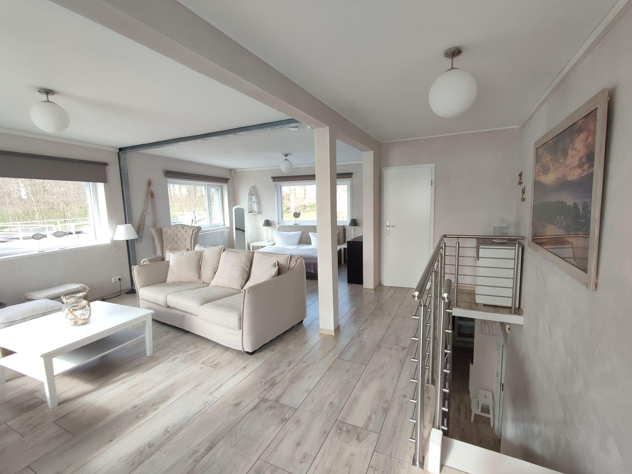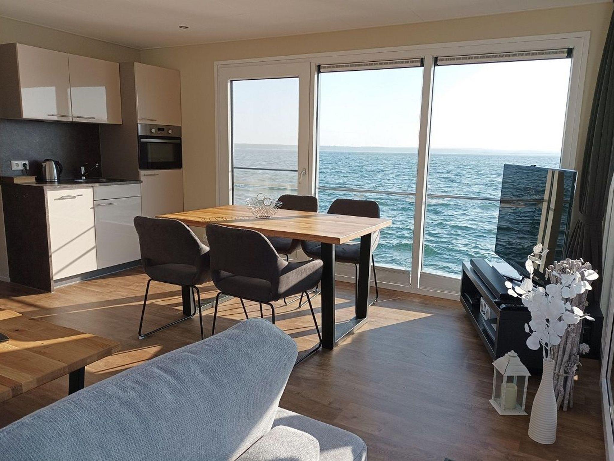 Die 116 m² Nutzfläche mit einer modernen Heizungs-/Klima-Technik sowie einem Pellet-Kamin ausgestattet ist an kalten und heißen Tagen immer angenehm. Viel schöner ist es jedoch, Sonne, Wasser und leichten Wind auf der Umlauffläche von ca. 45 m² zu genießen. Die Möwe1 verfügen über ein hochwertiges, gefliestes Badezimmer mit WC, Waschtisch und großer Badewanne, ein Doppelbett und einen Schlafsofa im Obergeschoss sowie ein separates Bad mit WC, Waschtisch und begehbarer Dusche und ein Doppelbett im Erdgeschoss. Die hochwertig eingerichtete Profi-Küche und die exklusive Multimedia-Ausstattung mit mehreren großen Ultra-HD Displays und Sound-System der Oberklasse lassen keine Wünsche offen. Ein High-Speed Internetzugang mit WLAN-Zugang steht selbstverständlich ohne Einschränkungen zur Verfügung.