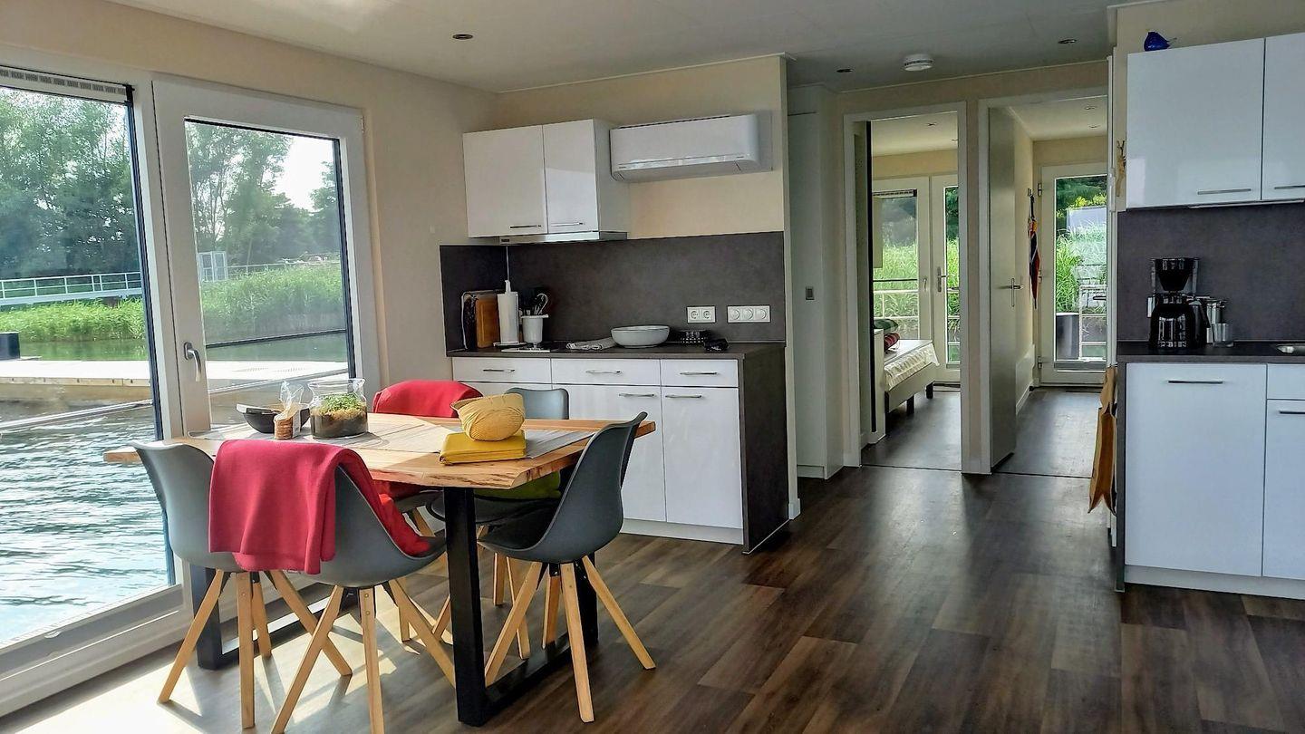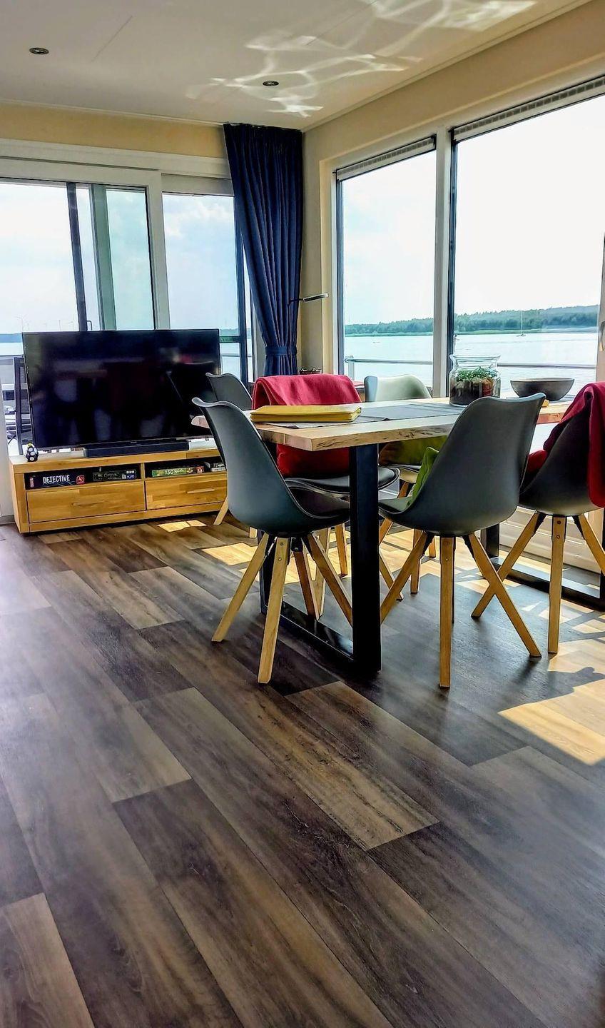 Auf 44 m² stehen Ihnen insgesamt 3 Zimmer zur Verfügung, darunter 2 Schlafzimmer und 1 Badezimmer, ausgelegt für bis zu 5 Schlafmöglichkeiten. Als Nichtraucherunterkunft heißt das Floatinghouse auch Kinder willkommen. Für angenehmes Raumklima sorgen Heizung und Klimaanlage; Fliegengitter sowie Sichtschutz für alle Fenster erhöhen den Komfort. Im Wohnbereich finden Sie eine Sofaecke, Esstisch sowie TV, Radio und WLAN – passend für entspannte Abende oder eine unkomplizierte Urlaubsorganisation.