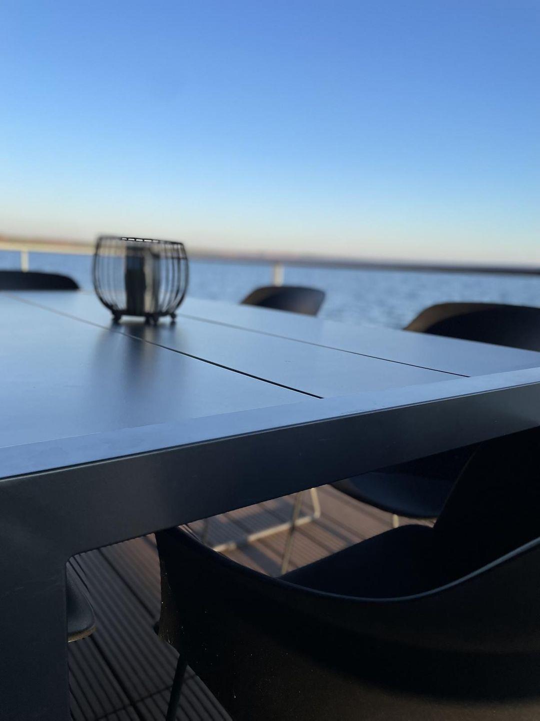 Draußen erwartet Sie eine überdachte Terrasse mit Gartenmöbeln, Sonnenliegen und Sonnenschutz – ideal für Mahlzeiten oder ruhige Momente mit Blick aufs Wasser. Ein Elektrogrill steht für unkompliziertes Grillen bereit. Als Nichtraucher-Unterkunft sind Kinder willkommen.