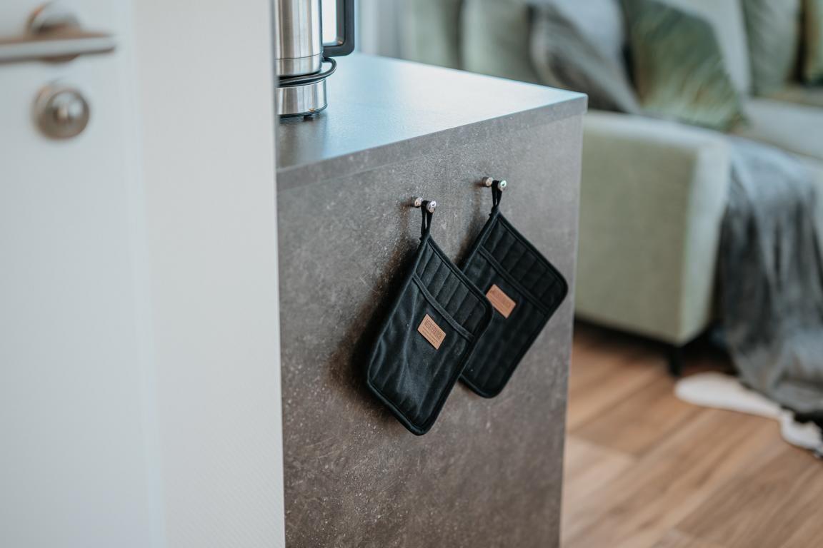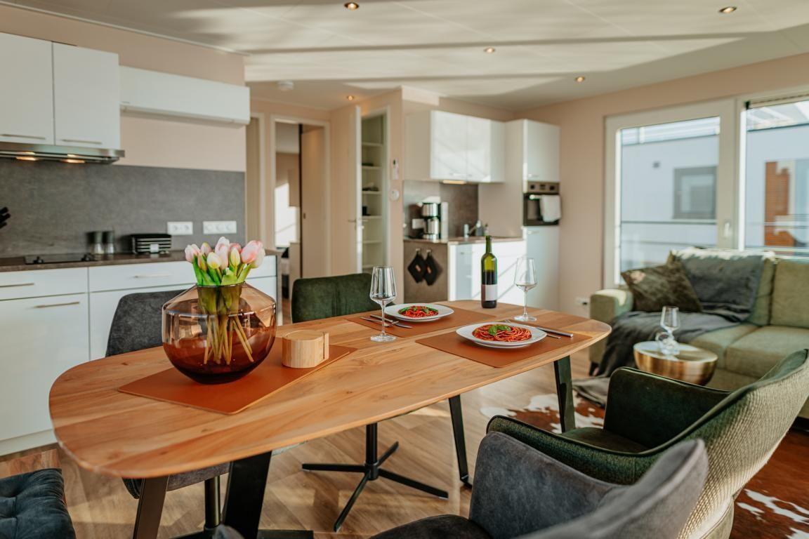 Der Wohnbereich ist mit Sofa, Esstisch und TV ausgestattet, ergänzt durch Radio sowie WLAN. Die offene Küche ist zum Wohnzimmer hin gestaltet und bietet Ihnen eine umfassende Ausstattung für die Selbstversorgung: Ceran-Herd, Kühlschrank mit Gefrierfach, Spülmaschine, Kaffeemaschine, Wasserkocher, Toaster sowie Küchenutensilien, Geschirr und Besteck. Eine Erstausstattung ist vorhanden; Bettwäsche, Handtücher und Geschirrhandtücher stehen ebenfalls zur Verfügung.