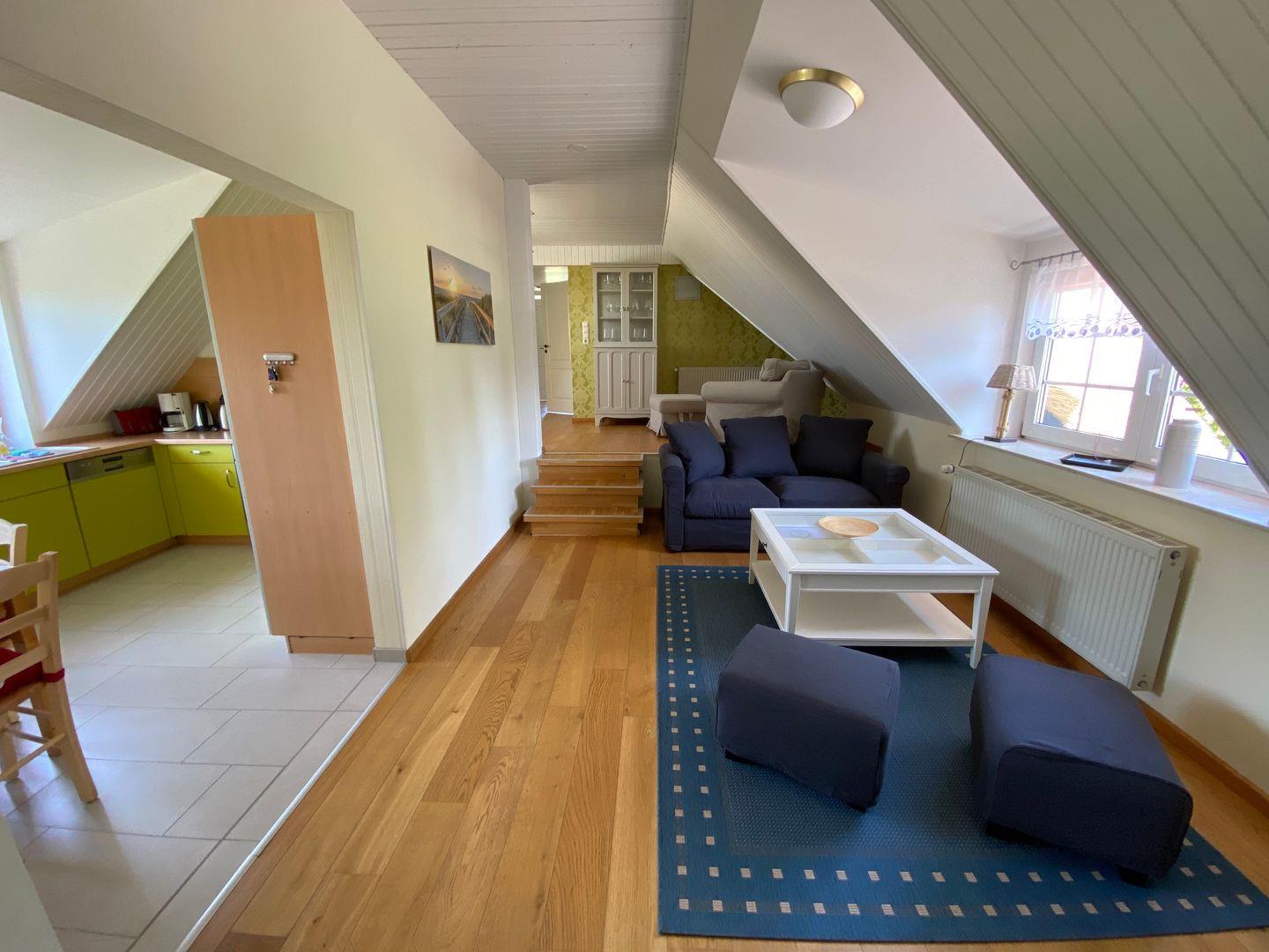 Die Ferienwohnung "Goor" befindet sich im ersten Obergeschoß des Reethauses. Sie bietet auf ca. 92 qm Wohnfläche maximal 5 Personen Platz. Die Wohnung besteht aus zwei Schlafzimmern mit je einem Doppelbett und einem Wohnzimmer mit einer Schlafcouch, wo eine weitere Person übernachten kann. Im Wohnzimmer gibt es einen Flachbild-TV und DVD-Player. Die separate Küche bietet neben einem Ceranherd, Backofen, Geschirrspüler, Mikrowelle natürlich auch Kaffeemaschine, Toaster und Wasserkocher. Im Bad gibt es eine Dusche und einen Haartrockner. Eine Waschmaschine steht zur gemeinschaftlichen Nutzung zur Verfügung. Ein Kinderbett sowie ein Hochstuhl sind vorhanden. Haustiere sind willkommen! Bitte beachten Sie, dass für Haustiere zusätzliche Gebühren erhoben werden.