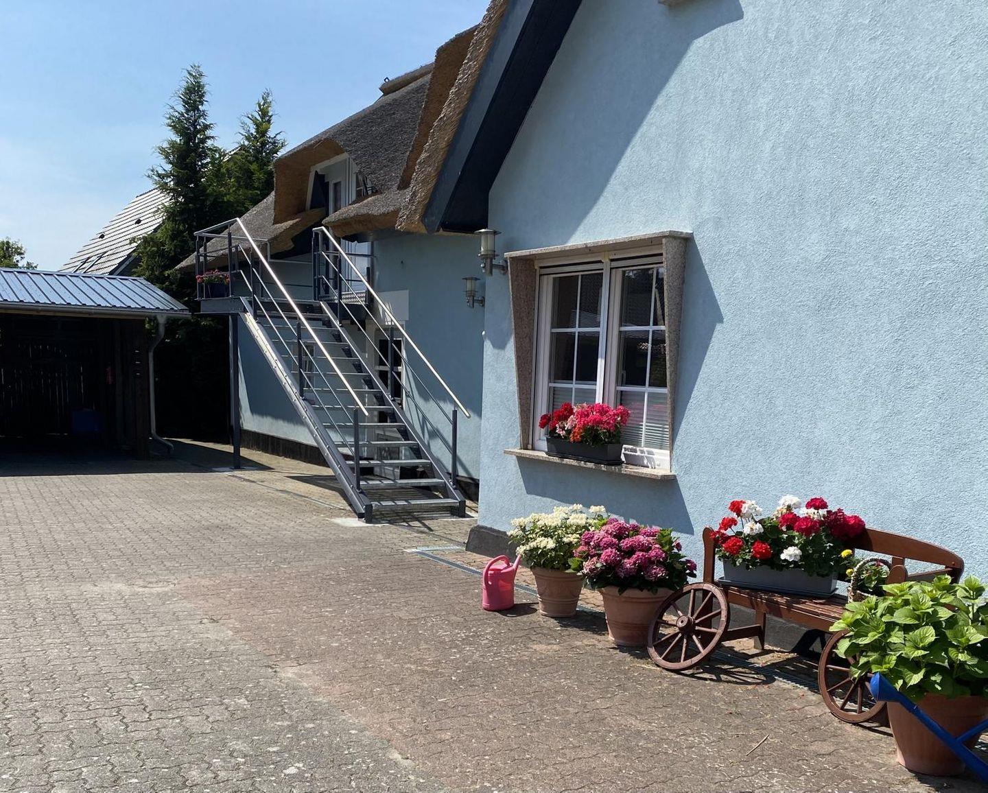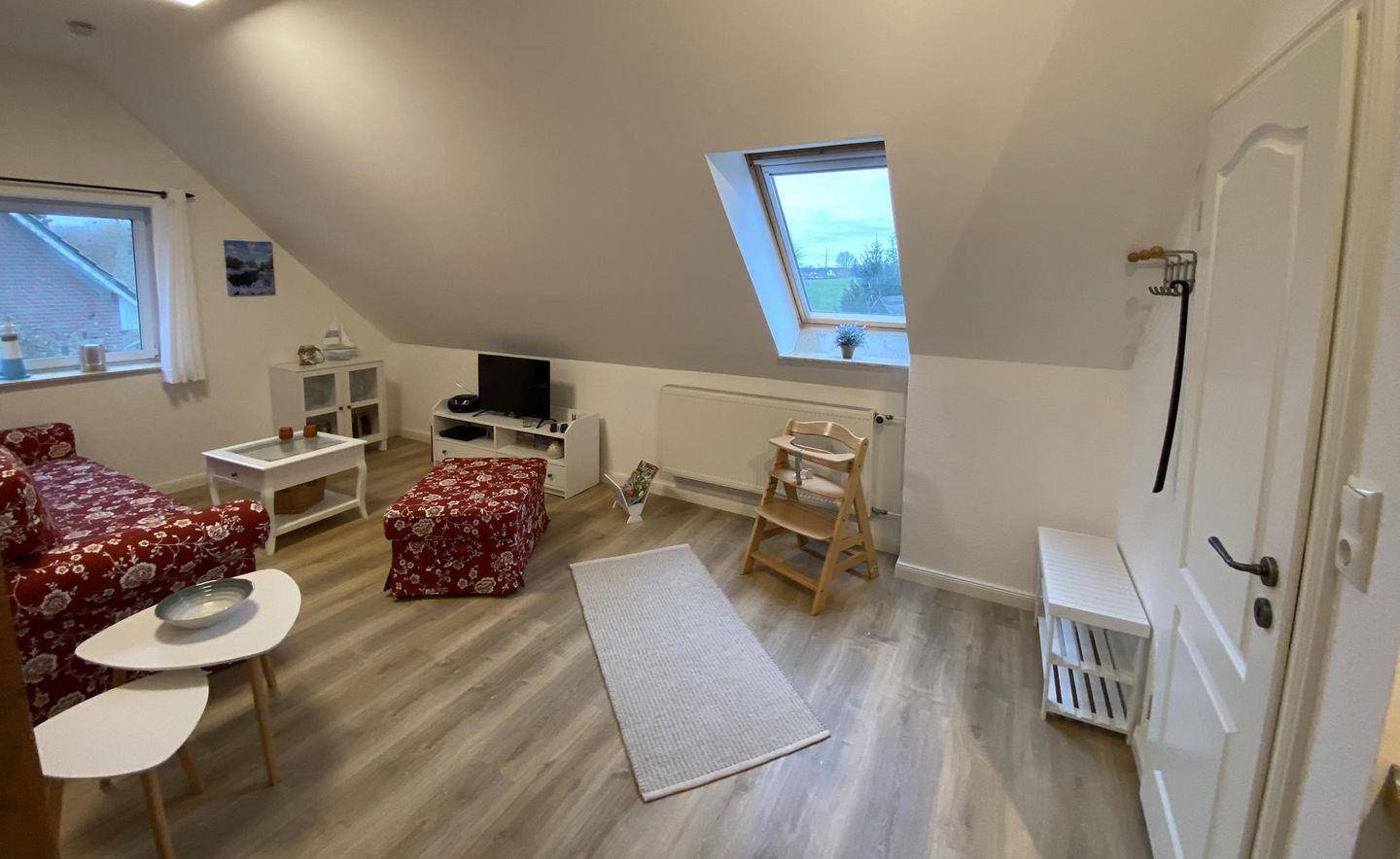 Die Ferienwohnung "Muglitz" befindet sich im ersten Obergeschoß des Reethauses. Sie bietet auf 50qm Wohnfläche maximal 3 Personen Platz.