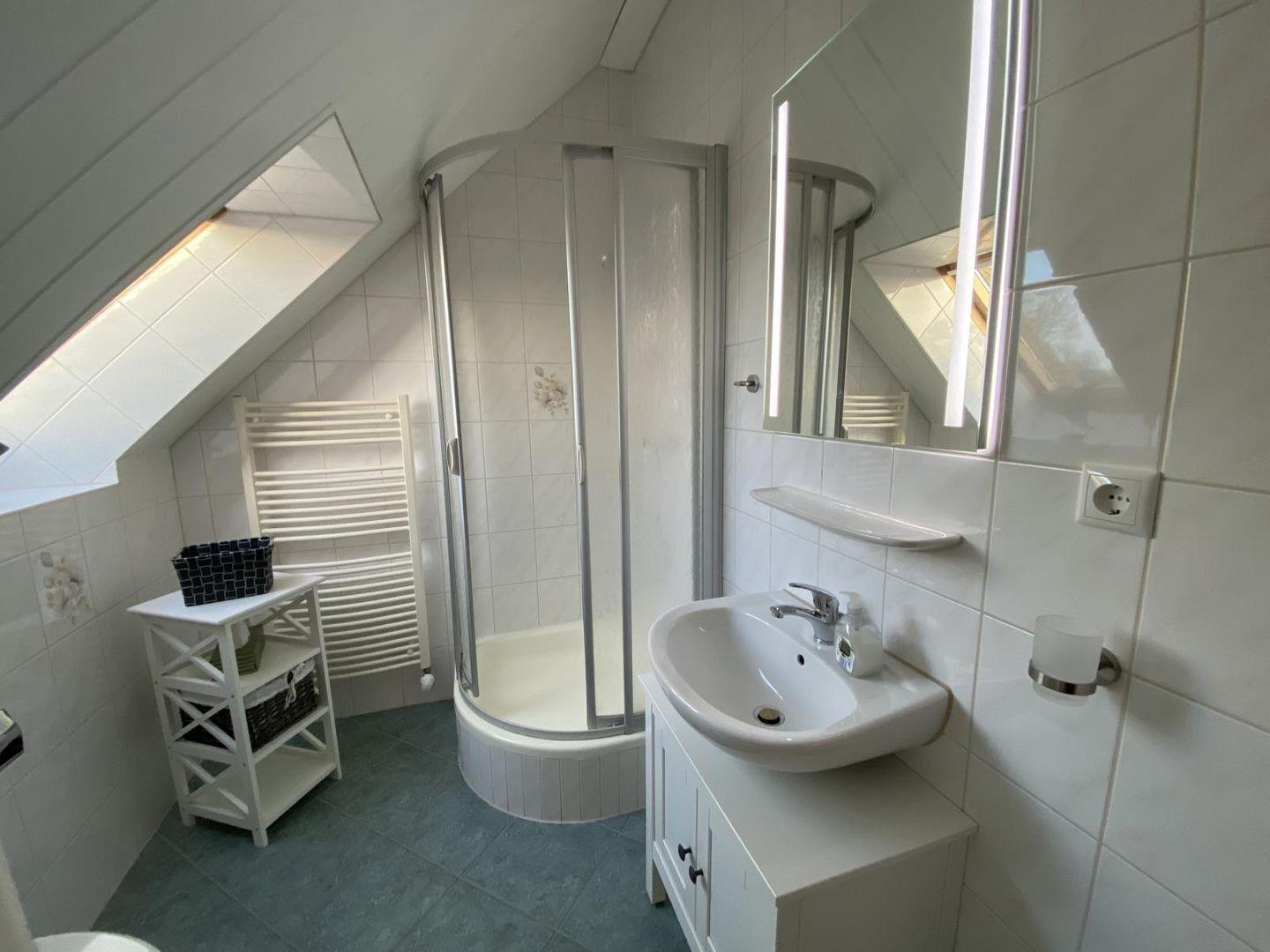 Im Bad gibt es eine Dusche und einen Haartrockner.