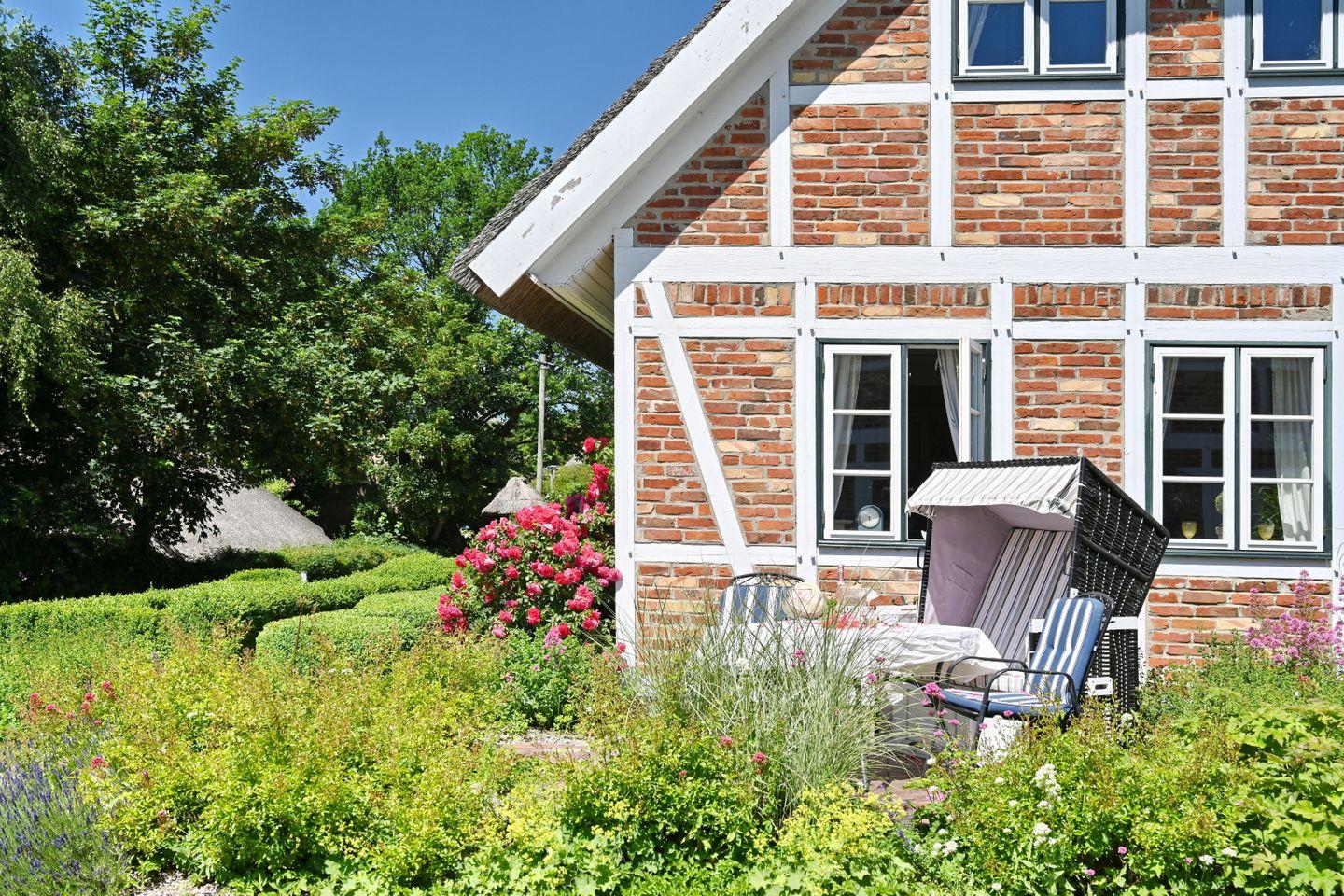 Auf einem romantischen Gartengrundstück mit Fernsicht auf die schöne Landschaft stehen zwei dieser wunderschönen, reetgedeckten Backsteinhäuser mit 3 bzw. 4 Wohnungen pro Haus.