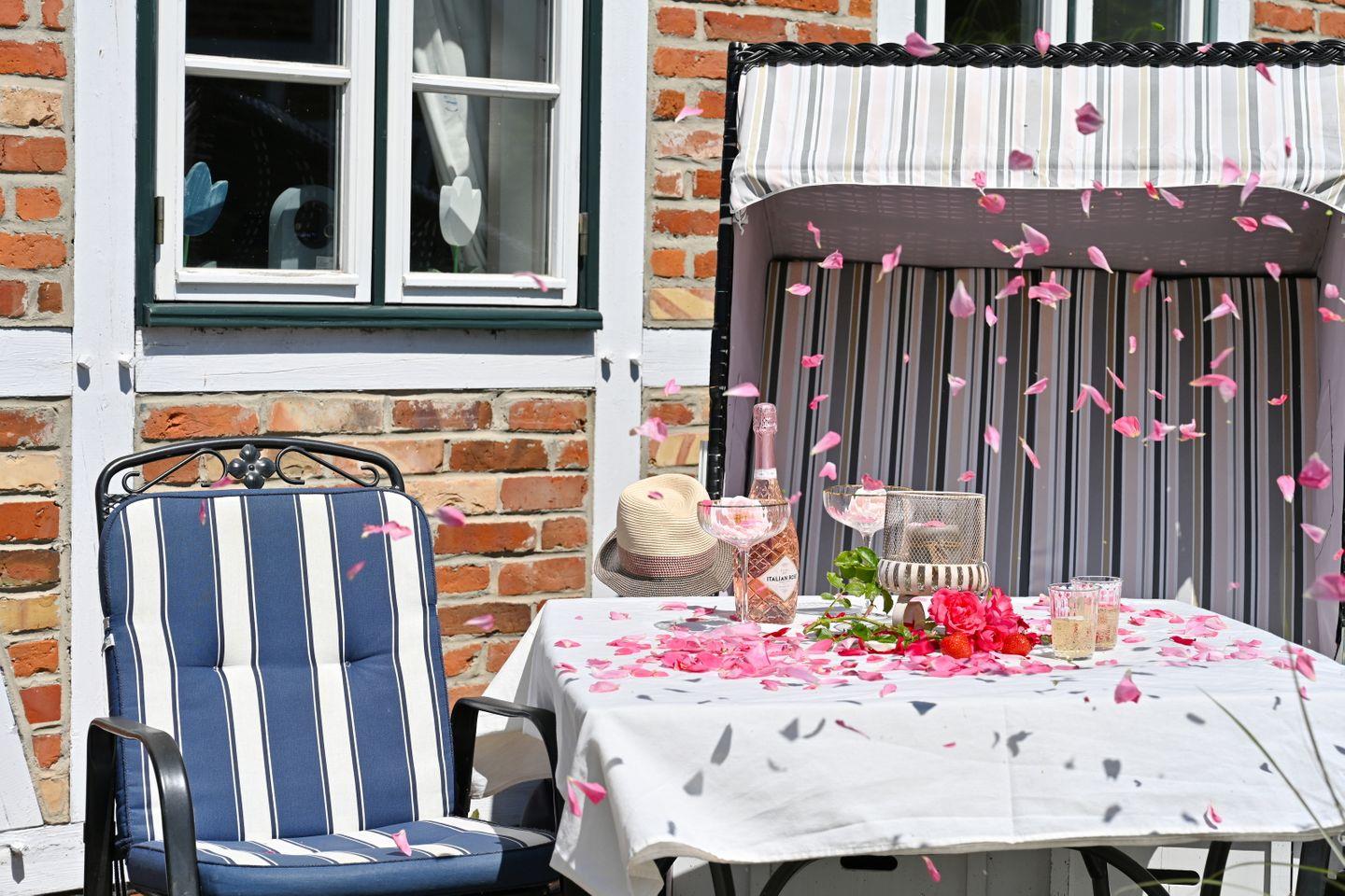 Zu jeder der Wohnungen gehört eine separate Terrasse in der wunderschönen großen Gartenanlage incl. Strandkorb und Gartenmöbeln. WLAN ist vorhanden.
