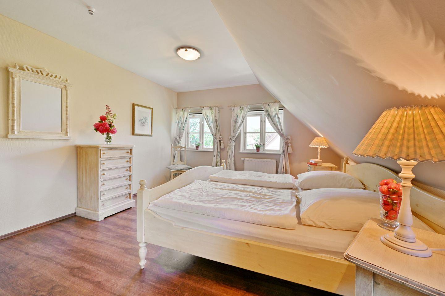Auf einem romantischen Gartengrundstück mit Fernsicht auf die schöne Landschaft stehen zwei dieser wunderschönen, reetgedeckten Backsteinhäuser mit 3 bzw. 4 Wohnungen pro Haus.
