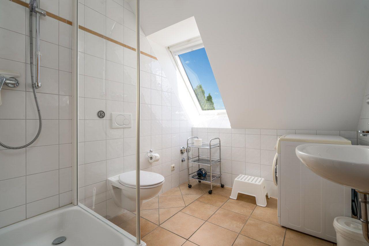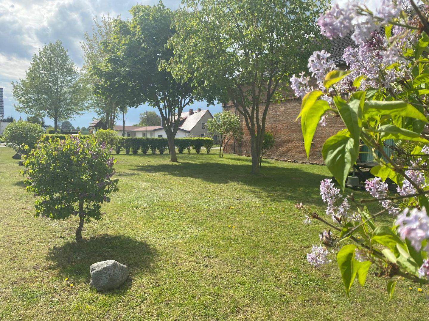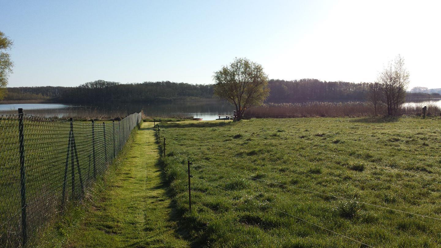 Über einen separaten Hauseingang und einen kleinen Flur gelangen Sie in die erste Etage und zur Ferienwohnung. Diese Treppe läßt sich mit einem Schutzgitter absichern. Das große Schlafzimmer ist mit einem Doppelbett und einem großen Kleiderschrank ausgestattet. Gleich gegenüber befindet sich ein kleines Schlafzimmer mit einem Bett 140x200 - dann ist der Raum auch ausgefüllt. Im Bad mit Dusche und WC gibt es eine Waschmaschine. Der offene Wohn- Essbereich ist mit einer modernen Küche komplett eingerichtet. Das Sofa ist zu einem Dauerschläfer umzuklappen. Für unsere kleinen Gäste: Sandkasten und Rutsche im Außenbereich. Eine gesonderte möblierte Sitzecke im Garten steht unseren Gästen ebenfalls zur Verfügung. Das Grundstück ist ein Wassergrundstück und kann von allen Gästen genutzt werden. Der Seezugang und die Terrasse am Wasser können ebenfalls genutzt werden.