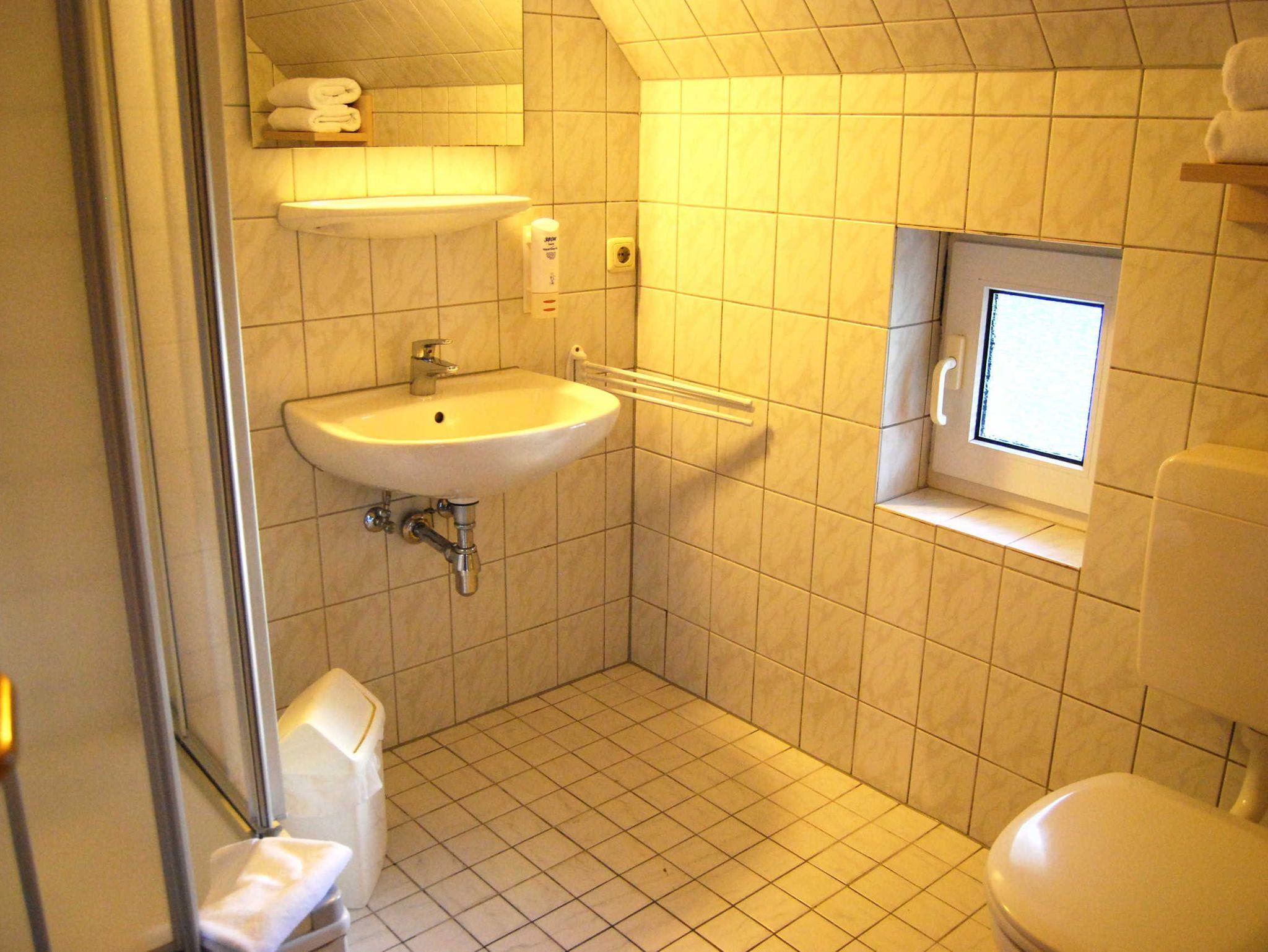 Pro Doppelhaushälfte können zwar max. 4 Personen untergebracht werden. Allerdings ist der Schlafraum im Spitzboden offen und die Schlafcouch nur 140 cm breit.