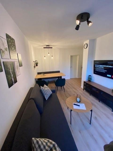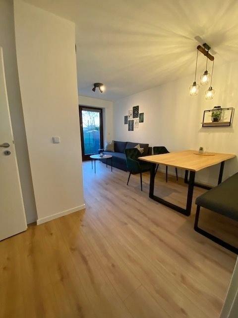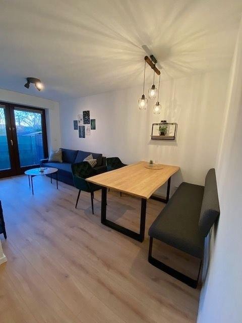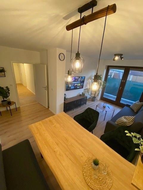 Moderne Erdgeschosswohnung mit Terrasse .Die Wohnung verfügt über drei Schlafräume. Ausgestattet sind diese mit einem Queensize Bett ( 1,40 m ), einem Kingsize Bett ( 2 m ) und zwei voneinander getrennten 1 m Betten. In allen Schlafzimmern befindet sich ein SmartTV.Das Badezimmer hat eine große Dusche, ein WC, Waschbecken und eine Waschmaschine. Ein Gästebad ist ebenfalls vorhanden.Die Küche ist komplett ausgestattet und verfügt über eine Sitzmöglichkeit.Im Wohn- und Essbereich können Sie die Couch zu einer vollwertigen Schlafstätte umwandeln. Der Esstisch bietet sechs Personen Platz und läd zum Verweilen ein. Hier befindet sich auch der Zugang zur Terrasse.Alle Fenster sind mit Rolläden ausgestattet.