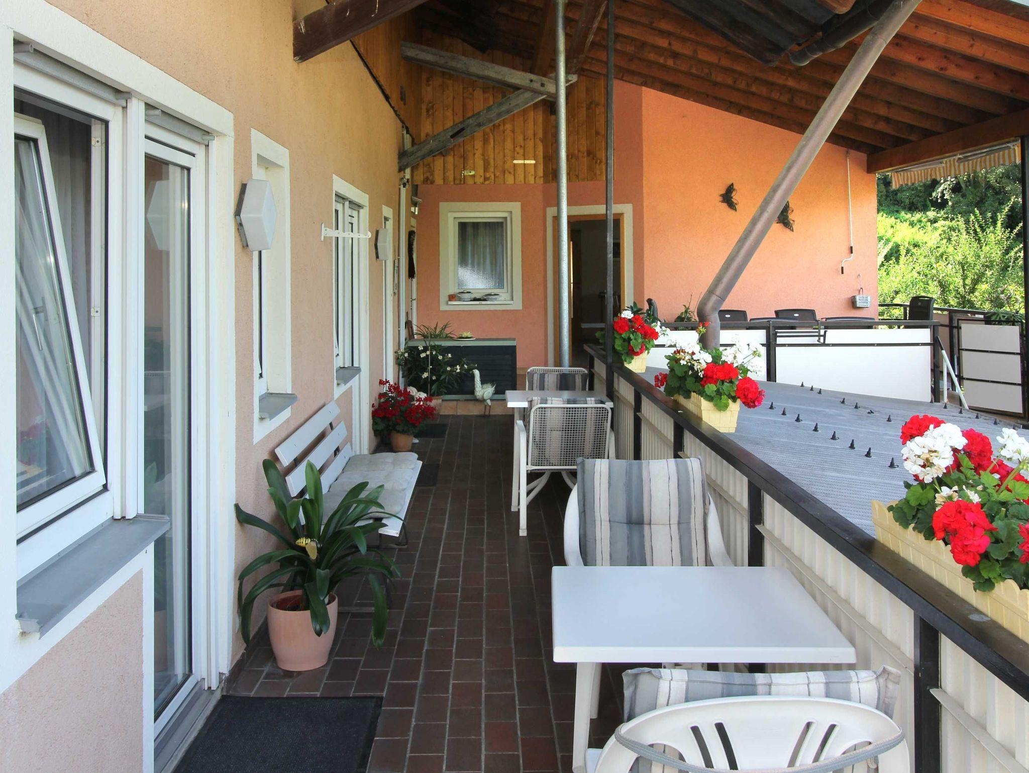 Doppelzimmer mit Dusche und WC ,TV und Balkon,Große Sonnenterrasse. Herrlicher Ausblick in die Weinberge und Obstanlagen. Aufenthaltsraum mit Gemeinschaftsküche vorhanden. Gästezimmer mit Dusche/WC und Balkon.