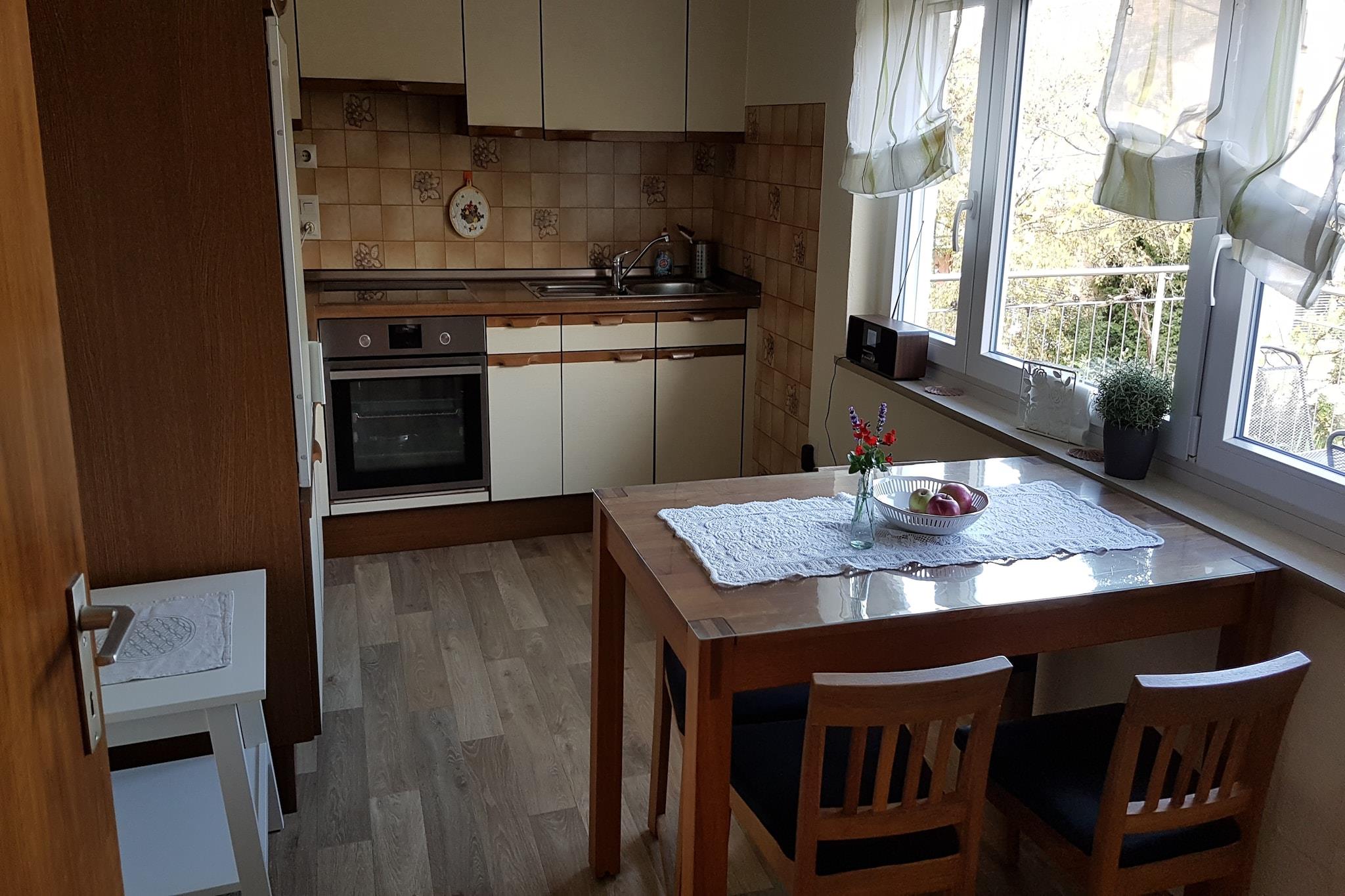 Beliggende i et fredeligt, solbelyst sted i udkanten af Bischoffingen, er denne charmerende 2-værelses lejlighed ideel til en lille familie eller gruppe på fire. Beliggende på første sal og har en privat balkon og terrasse - perfekt til at slappe af efter en dag med udforskning af Kaiserstuhl-bakkerne. Området er omgivet af vinmarker og blomstrende haver og byder på muligheder for vandreture, cykling og svømning. Restauranter ligger kun 500 m væk, mens byens centrum og købmandsforretninger ligger inden for 2 km. En nærliggende sø og flod (3 km) giver naturskønne steder til gåture i solnedgangen. Lejligheden indeholder indendørs varme, fælles have, parkering og cykler. Familier vil sætte pris på barnesengen og højstolen, og kæledyr er velkomne mod et mindre gebyr. Togstationen ligger 2 km derfra, og den nærmeste lufthavn ligger 80 km derfra - hvilket gør denne vingårdsretræte både rolig og godt forbundet.