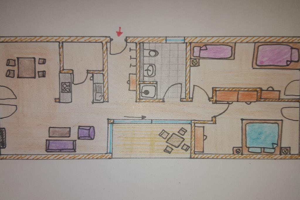 Paradiesische NEUE Familien-Ferienwohnung mit 2 Schlafzimmern (2Pers. + 3Pers.) 12qm Süd-Loggia und Fernsicht in alle 4 Himmelsrichtungen!!! Angezeigter Preis gilt für bis zu 2 Personen !!! Je 20,-- zusätzlich für 3., 4. und 5. Person pro Nacht! Naturnahes Wohnen im Grünen auch für die Familie mit bis zu 5 Personen! Absolute Ruhe am Ortsrand, mit Weitblick in die Reben! Wir haben diese Wohnung Anfang 2020 für Sie fertig gestellt. Über eine Außen-Treppenanlage kommen Sie direkt in diese sonnendurchflutete große Dachgeschoss-Wohnung. Im offenen, geschmackvoll eingerichteten Wohn-Essbereich finden Sie eine voll ausgestattete Küche, einen großen Tisch für 6 Personen und ein Sofa mit Sessel und Sitzsäcken. Auf der großen Süd-Loggia können Sie den Fernblick genießen, frühstücken/essen/trinken, der Blick auf das üppige Grün der umgebenden Reben lässt Sie vollkommen entspannen! In 2 separaten Schlafzimmern finden Sie ausreichend Platz auch für die große Familie!