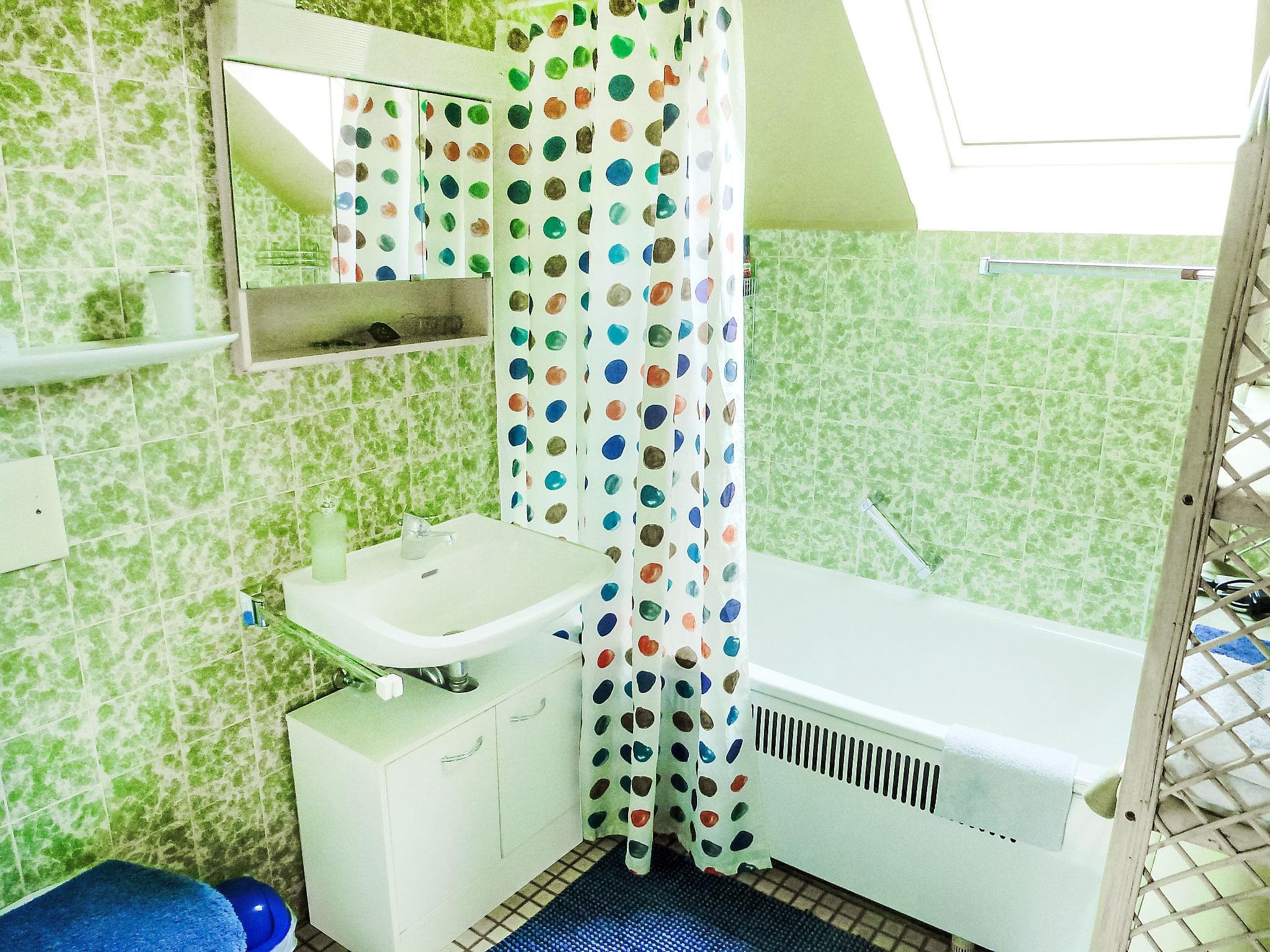 2-room apartment 50 m2, on the top floor. Partly with sloping ceilings: living/dining room with 1 double sofabed. Living/sleeping room with 1 double bed and satellite TV. Open kitchen (4 hot plates, oven, dishwasher, microwave, electric coffee machine). Bath/WC. Facilities: Internet (WiFi, free). Please note: non-smokers only. Maximum 2 pets/ dogs allowed.