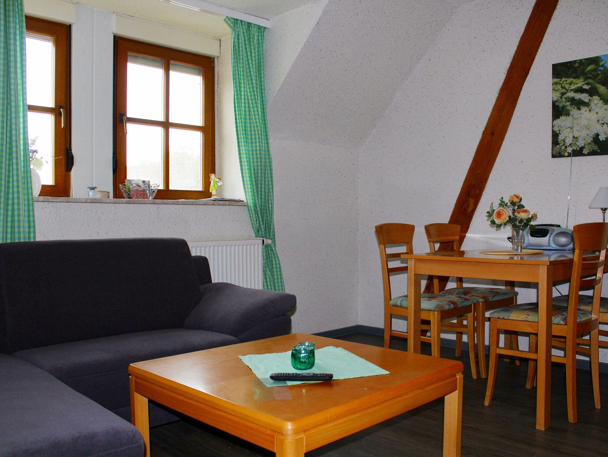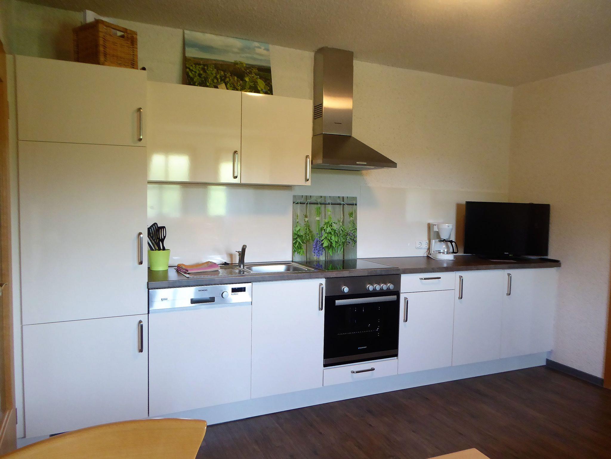 Komfortabel und gemütlich eingerichtete Ferienwohnung, komplett ausgestattete Küche, Bad, WC und Radio-/TV-Anschluss.