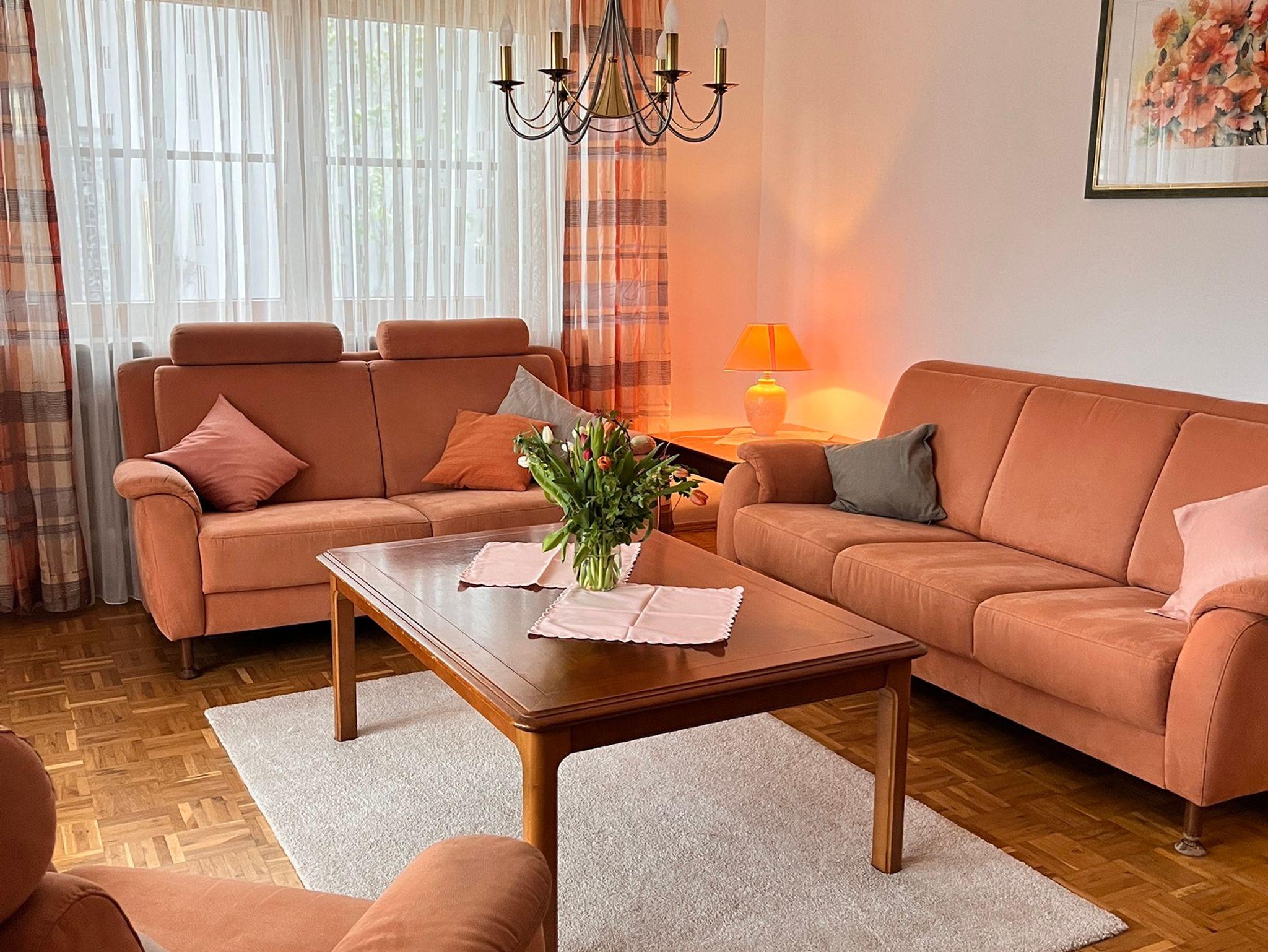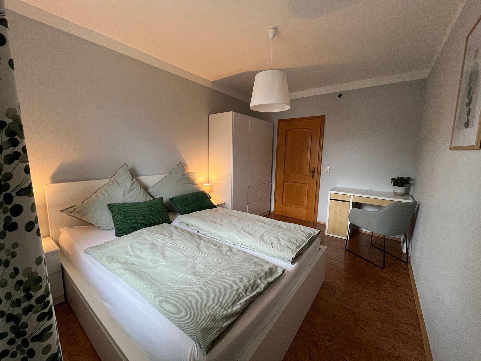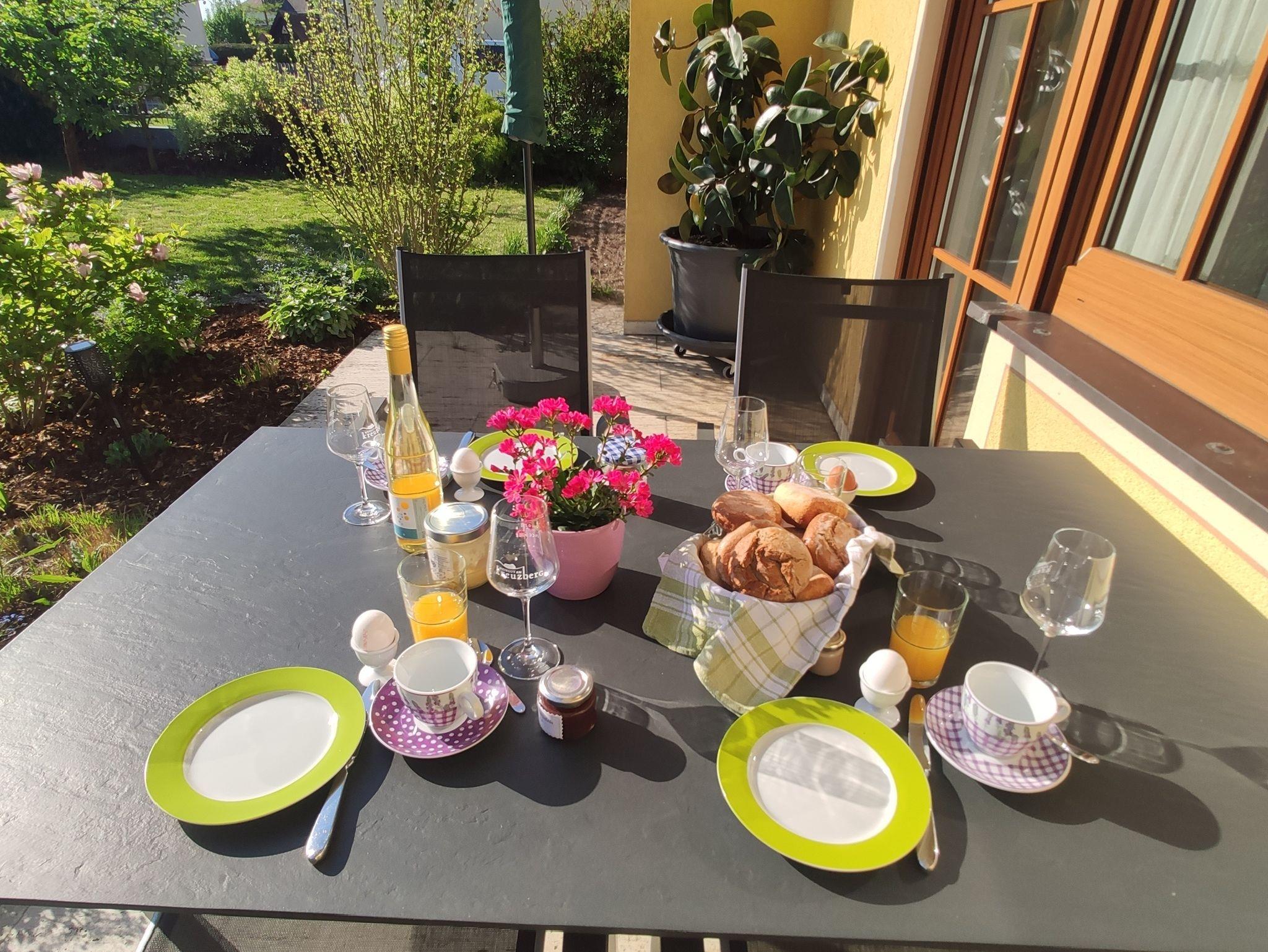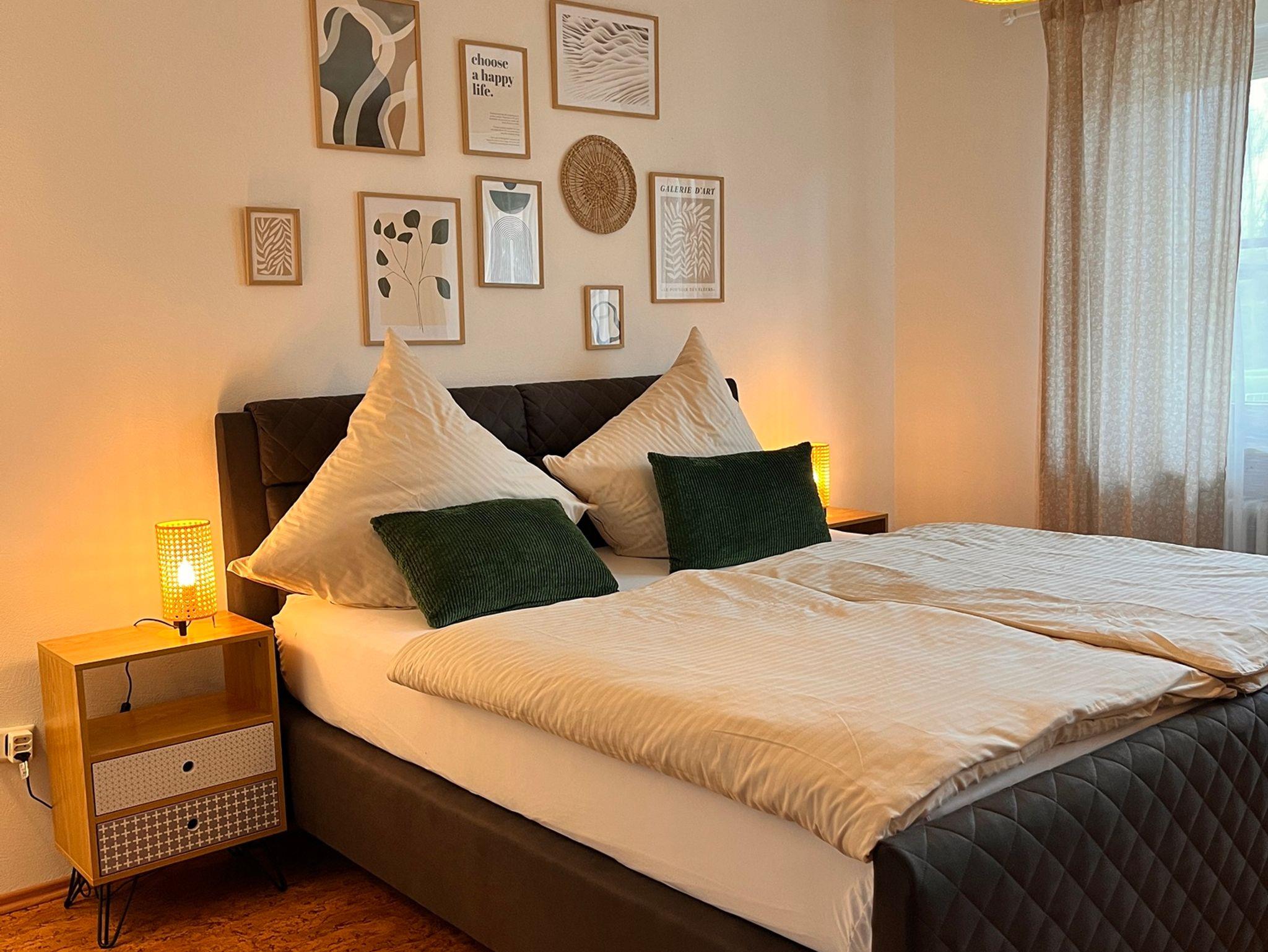 Die Wohnung im Erdgeschoss bietet Platz für bis zu 6 Personen und vereint modernen Komfort mit einem Hauch Landhausstil. Zwei separate Schlafzimmer mit jeweils einem Doppelbett sorgen für entspannte Nächte. Das großzügige Badezimmer verfügt über Dusche, 2 Waschbecken, Bidet, Badewanne und Föhn, zusätzlich gibt es eine separate Toilette. Die voll ausgestattete Küche ( großer Kühlschrank, 4-Plattenherd, Backofen, Mikrowelle, Spülmaschine, Kaffeemaschine und Wasserkocher) lädt zum gemeinsamen Kochen und Genießen ein. Zum Verweilen im Freien steht Ihnen eine private Terrasse zur Verfügung – der perfekte Ort für ein Glas Wein am Abend oder ein Frühstück in der Morgensonne. Parkmöglichkeiten sind vorhanden, und auch Fahrräder können sicher untergestellt werden – ideal für Radfahrer, die die schöne Mainschleife erkunden möchten. Zentral, ruhig und mit allem ausgestattet, was man für einen erholsamen Urlaub braucht – herzlich willkommen in Ihrer Ferienwohnung in Volkach!