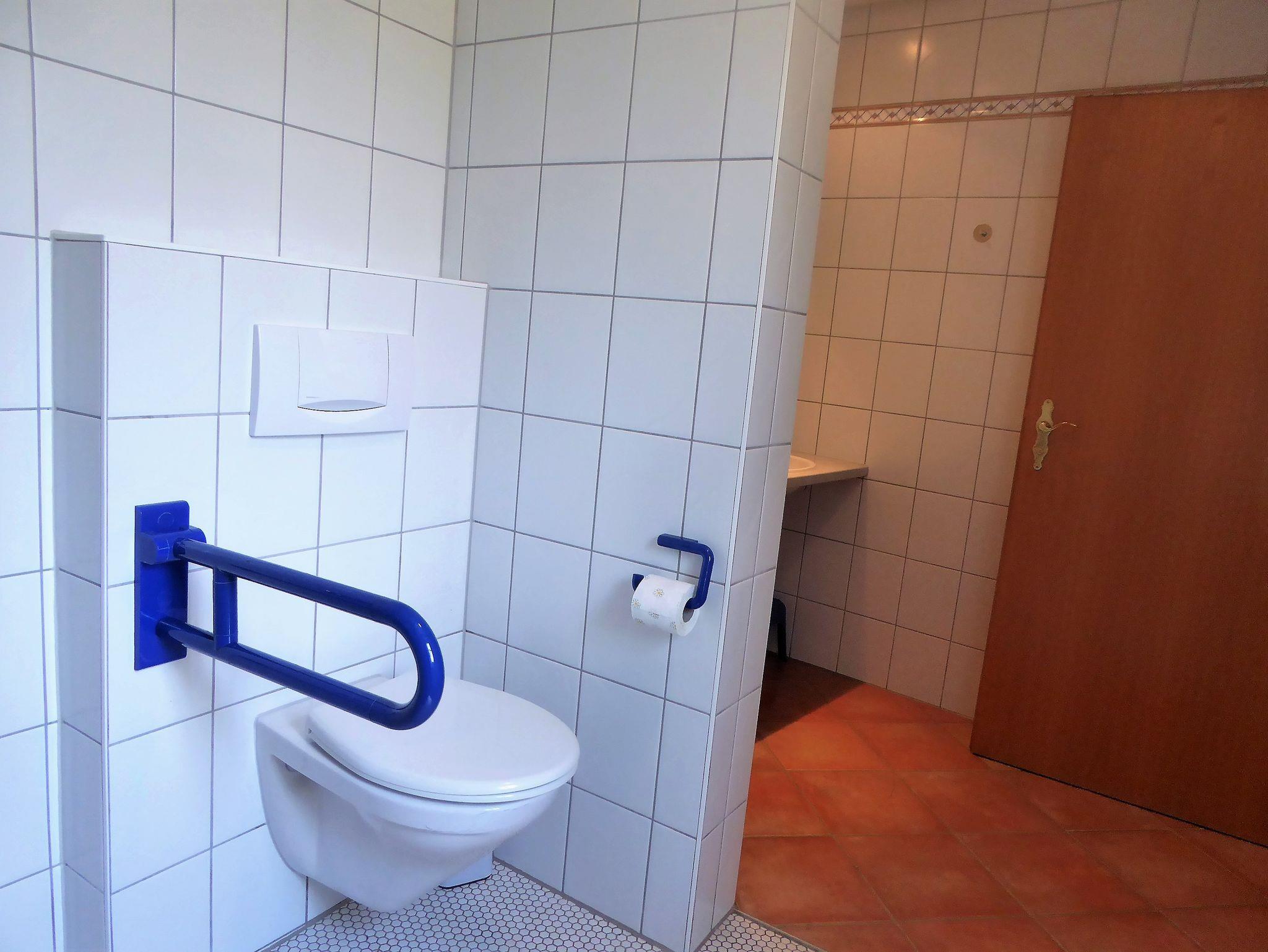 Rollstuhlgerecht, Komfortabel und gemütlich eingerichtete Ferienwohnung, komplett aus- gestattete Küche mit Geschirrspüler, Bad mit Dusche und WC, Radio-/TV-Anschluss.