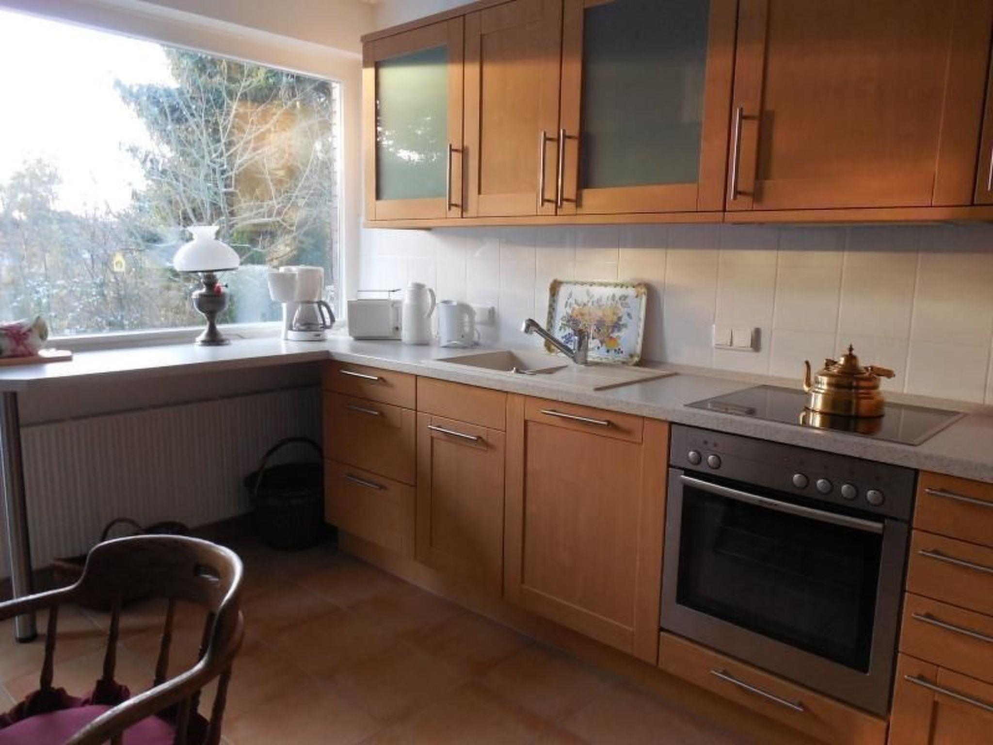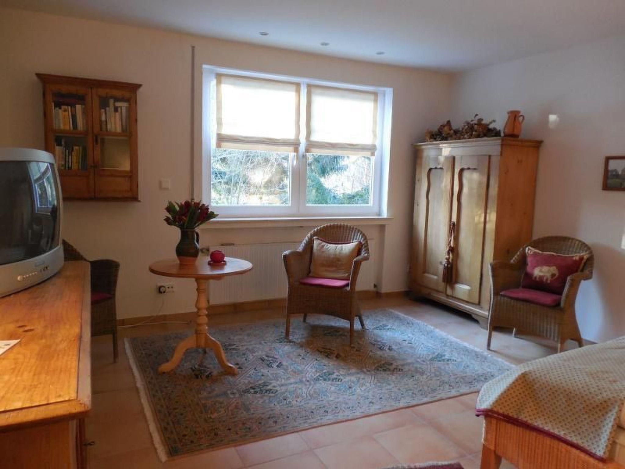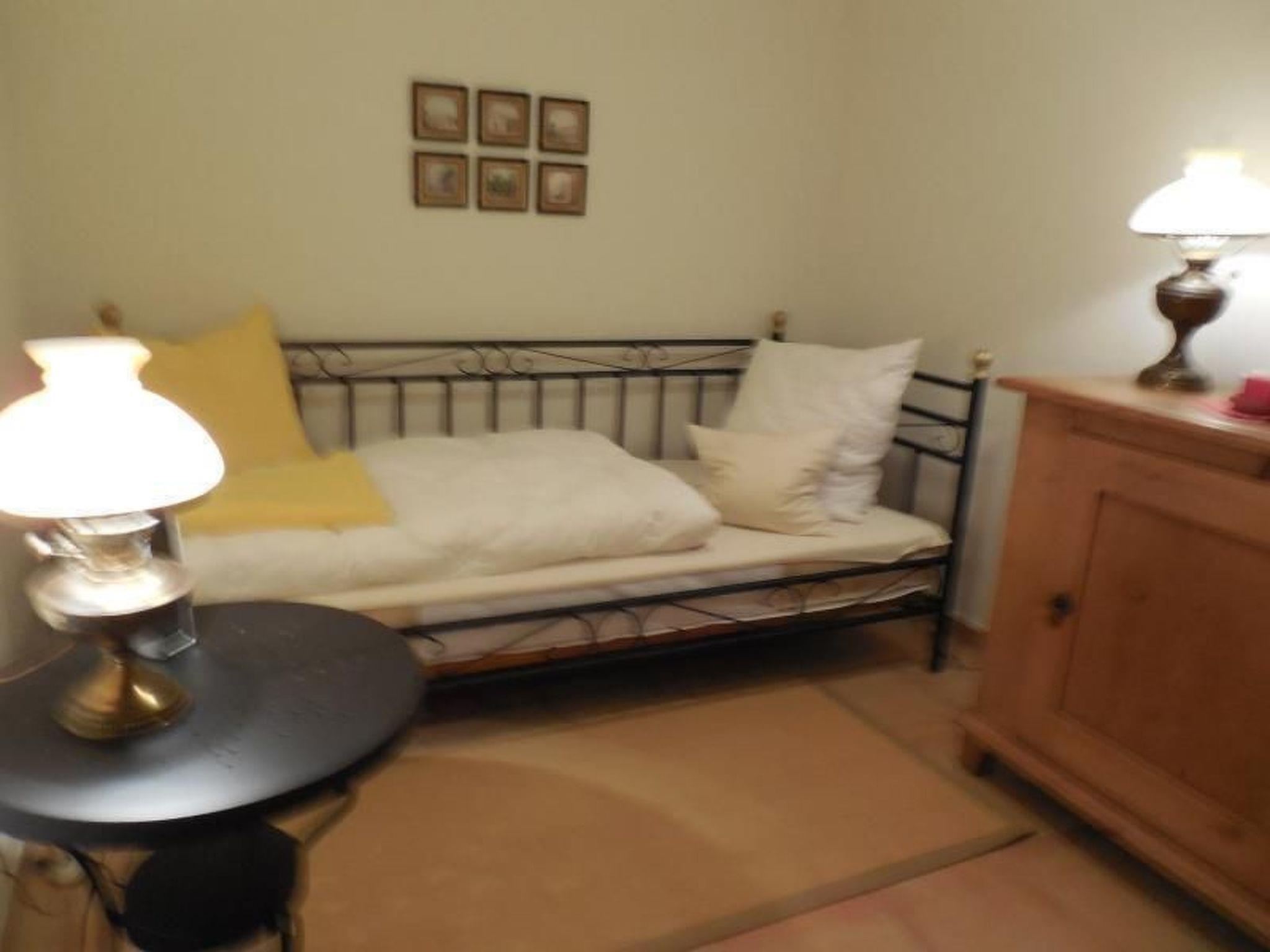 This inviting, comfortable, friendly holiday flat has 60 m² of living space and offers you TV (cable) and stereo system. Fully equipped eat-in kitchen with dishwasher, oven and fridge with freezer compartment. Bed-sitting room furnished with antique softwood furniture and French bed. Double bed (1.40 m wide). There is an additional one-person bedroom also with antique softwood furniture and a radio. There is a bidet in the bathroom. We charge a heating surcharge during the heating period from October to April.