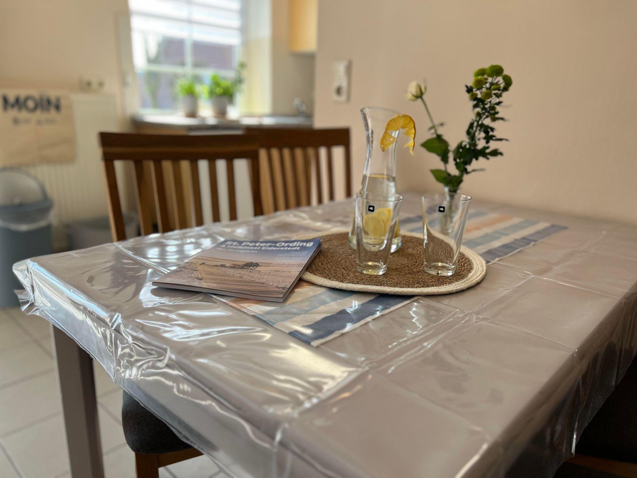 Der Essbereich umfasst Tisch und Stühle, damit auch alle Platz finden. Ausgestattet mit einer Einbauküche inkl. Geschirrspüler,