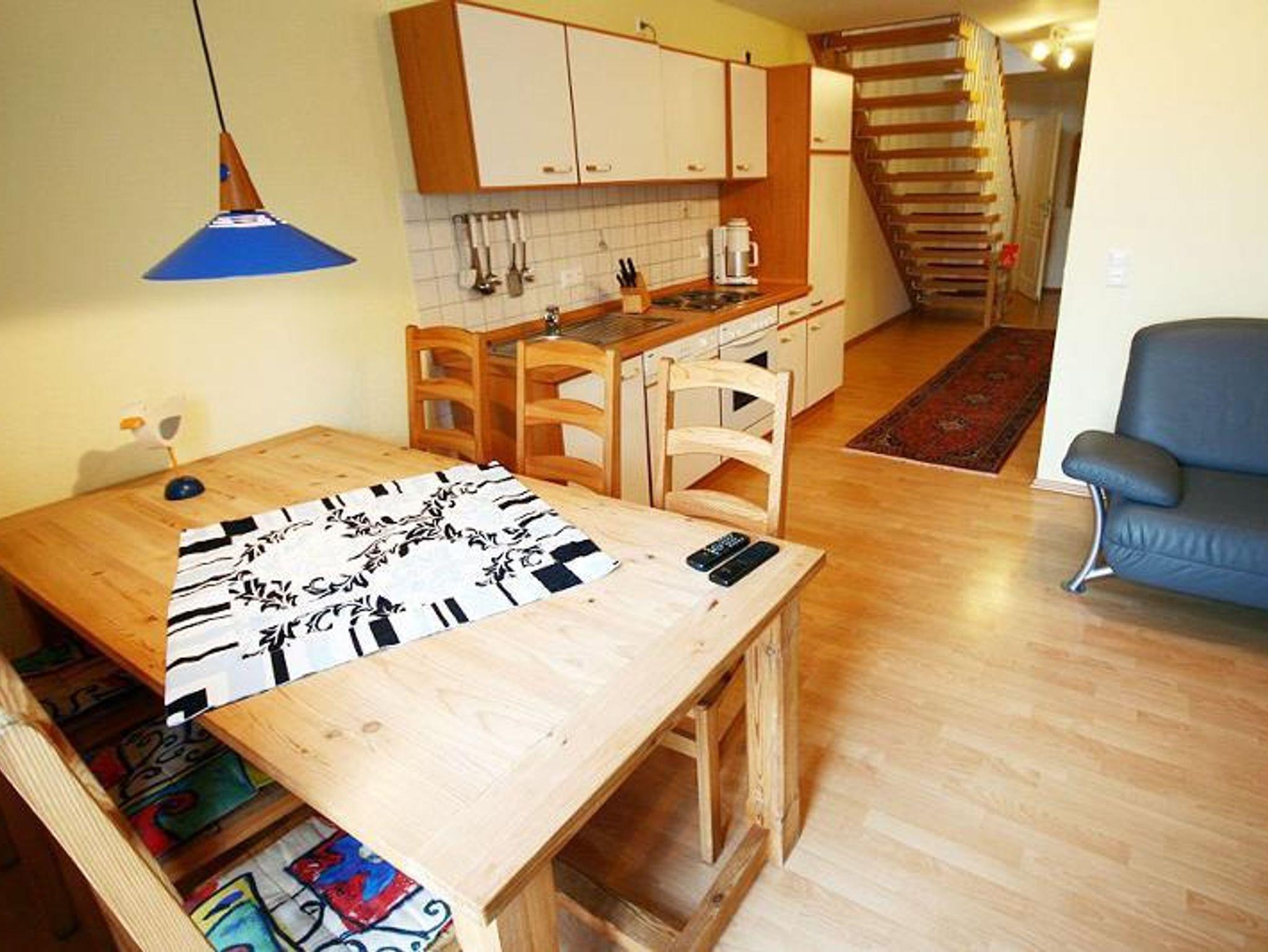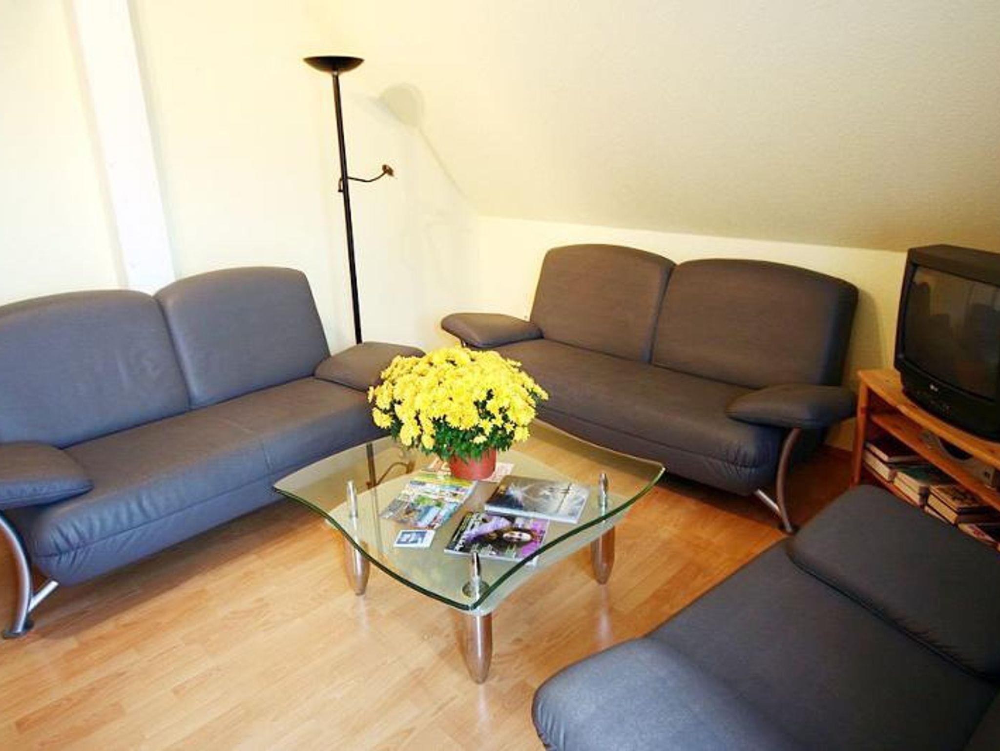 Die komplett eingerichtete Einbauküche mit Spülmaschine und gemütlicher Essecke ermöglicht komfortable Selbstverpflegung. Im Wohnbereich sorgen eine bequeme Couchgarnitur, LED-Fernseher, SAT-TV und kostenfreies WLAN für entspannte Stunden. Ein Duschbad komplettiert die Ausstattung.