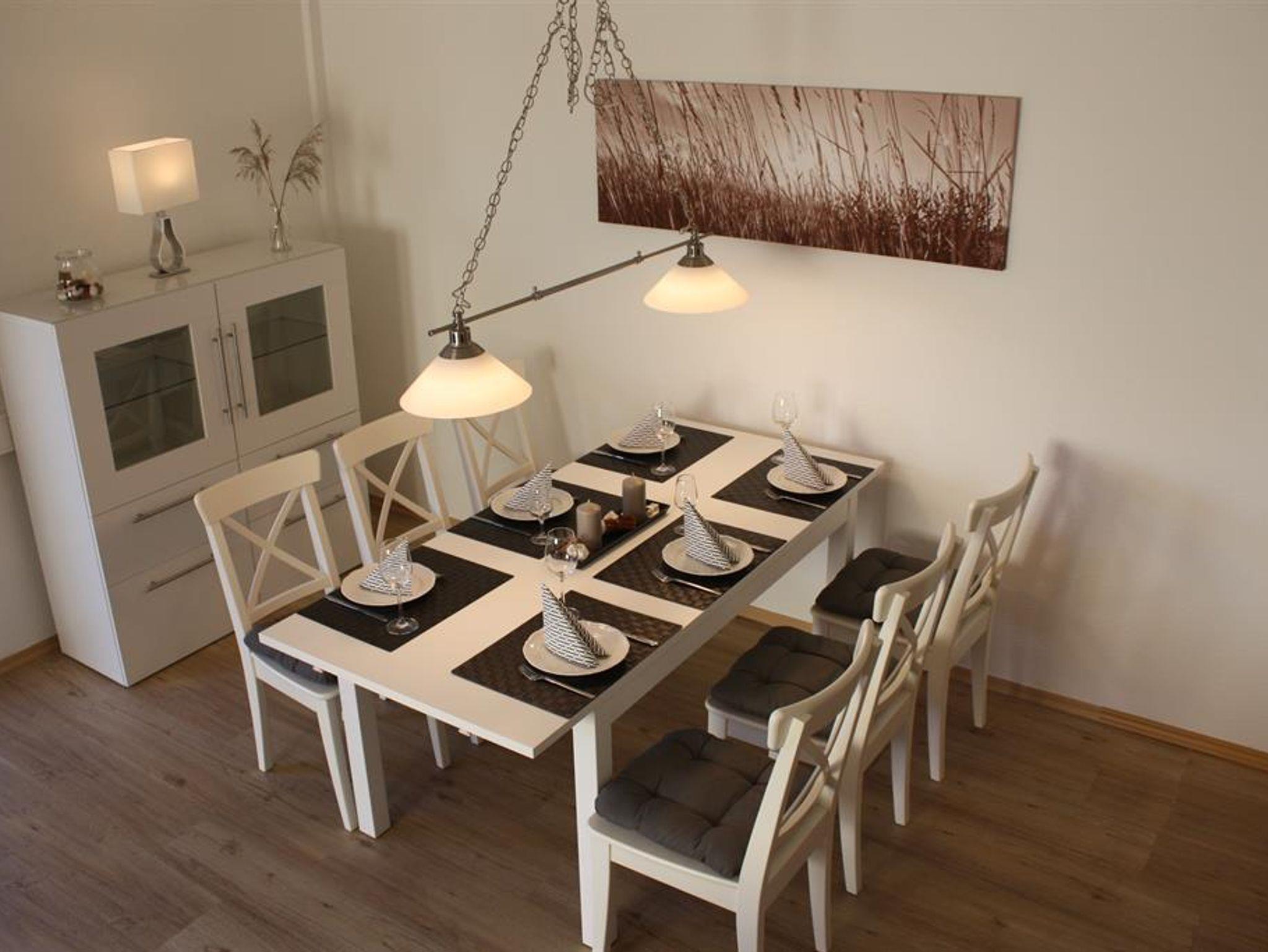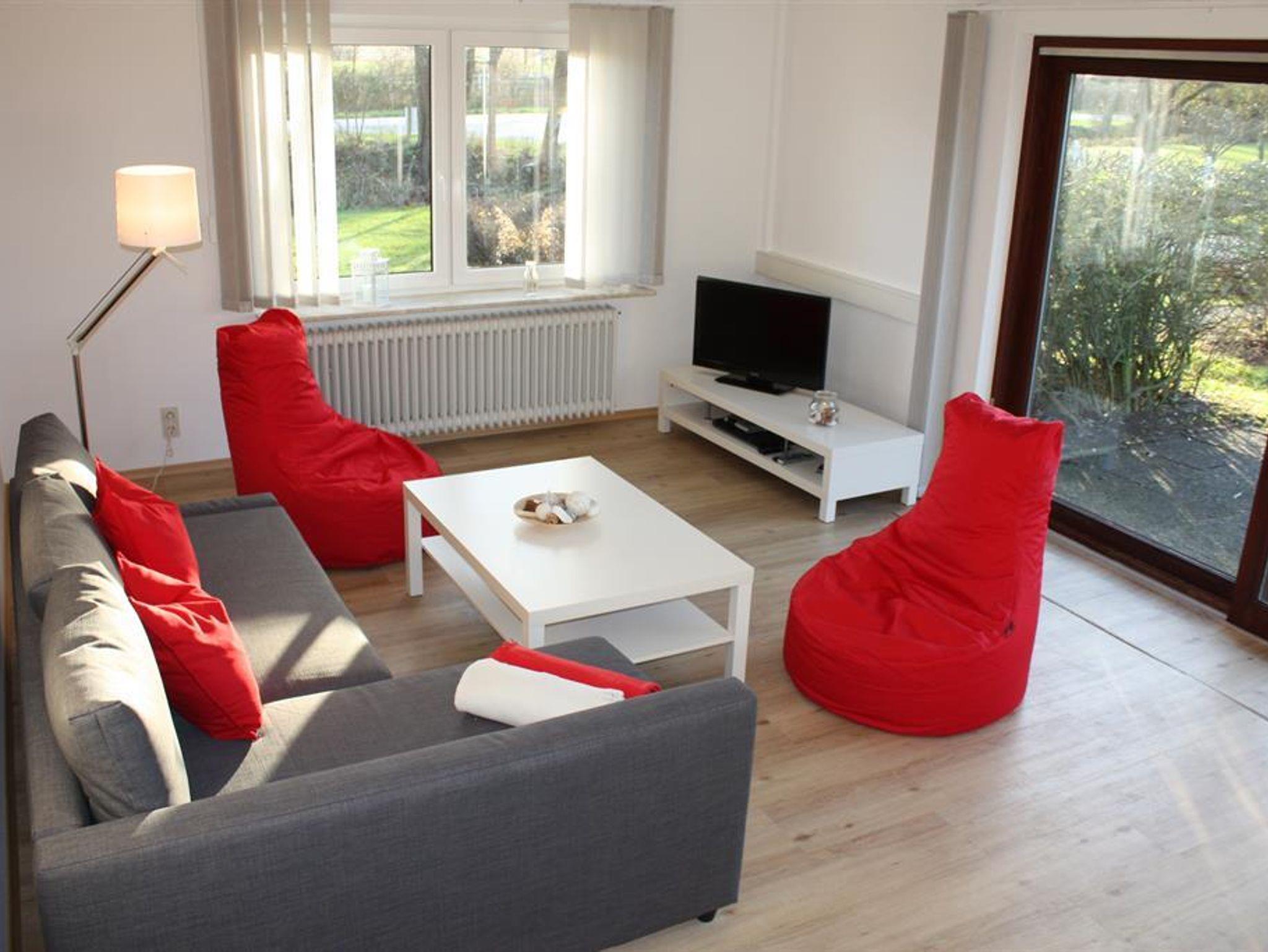 Das große, komfortabel eingerichtete Wohnzimmer verfügt zudem über eine Schlafcouch (140x200 cm), einen SAT-Flachbild-Fernseher und einen Esstisch für bis zu 6 Personen.